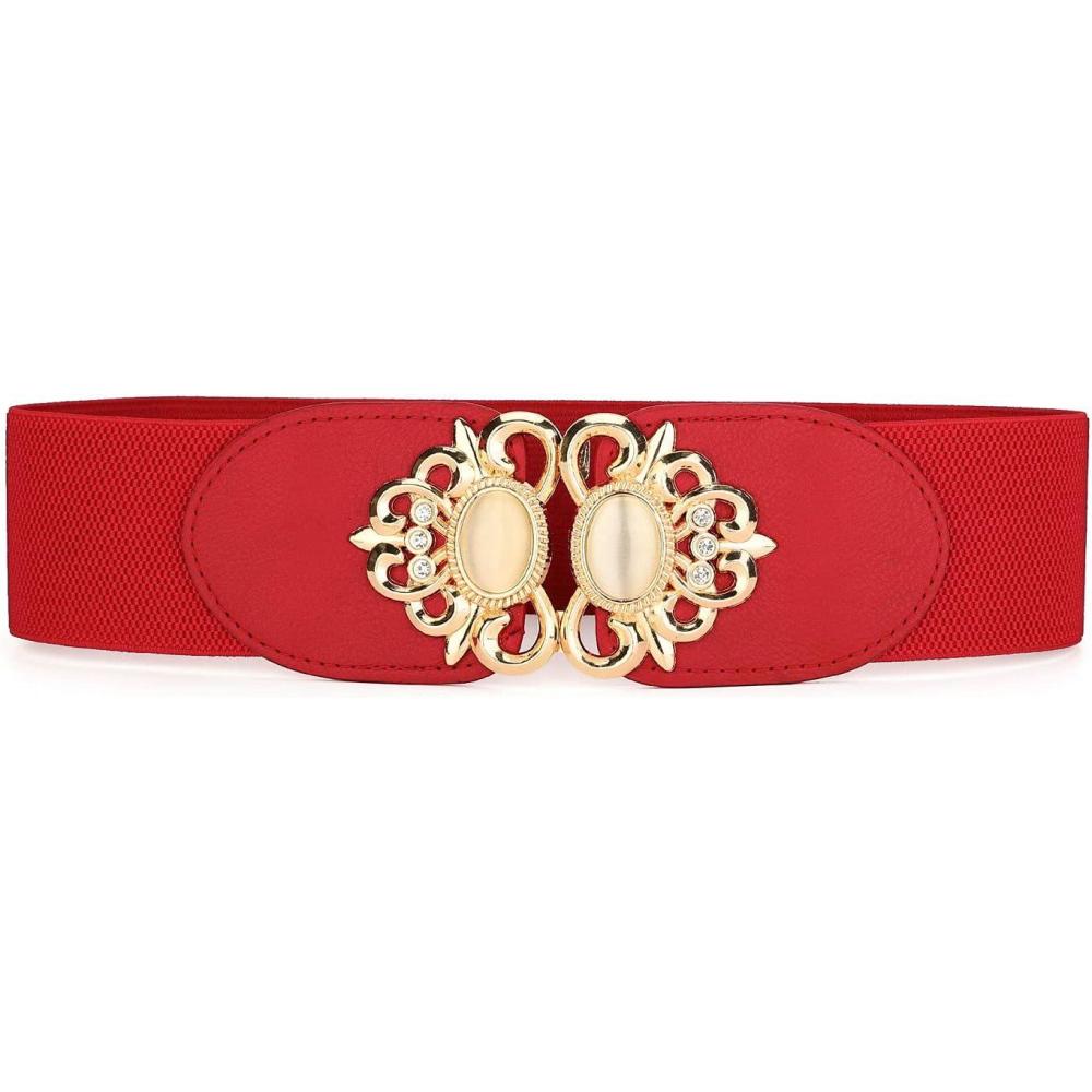 Allegra K Lady 2.36″ Width Elastic Belts, Faux Leather Opal Beaded Rhinestone Inlaid Stretchy Cinch Waistband for Dress(Red)