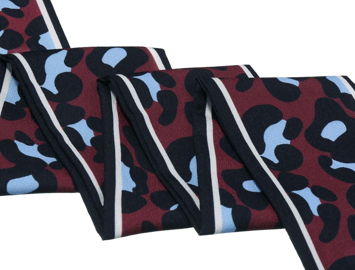 Allegra K Leopard Ribbon Long Narrow Skinny Scarf for Women Hairband Waistband Belt Bag Handle Accessory(Wine Red)