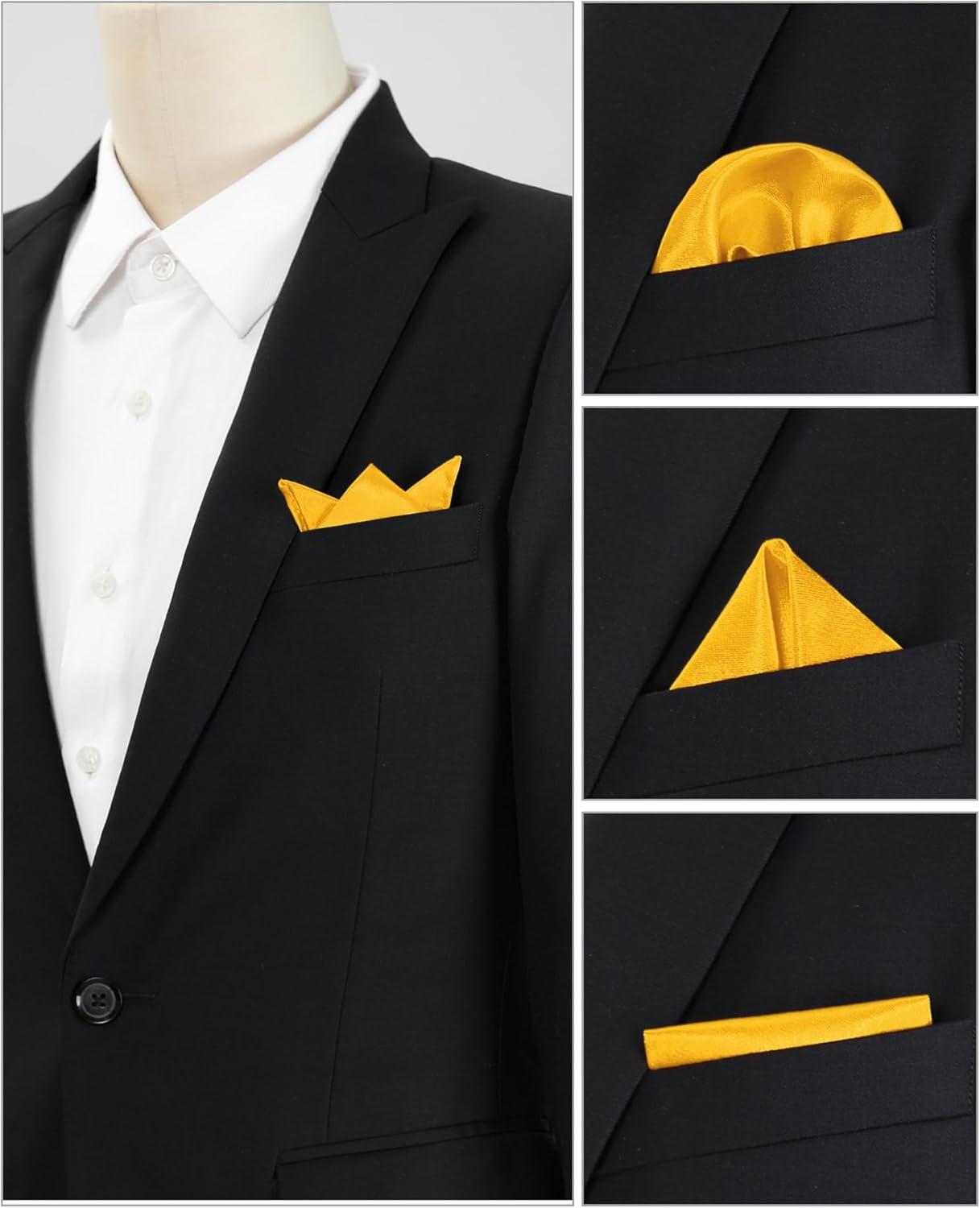 Allegra K Men’s Pocket Squares Handkerchiefs Solid Color for Wedding Party(Yellow)