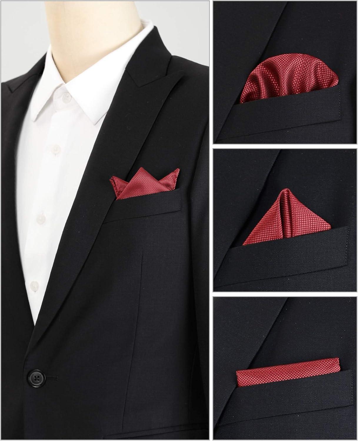 Allegra K Men's Pocket Squares Solid Color Classic Textured Handkerchiefs for Wedding Business(Wine Red)