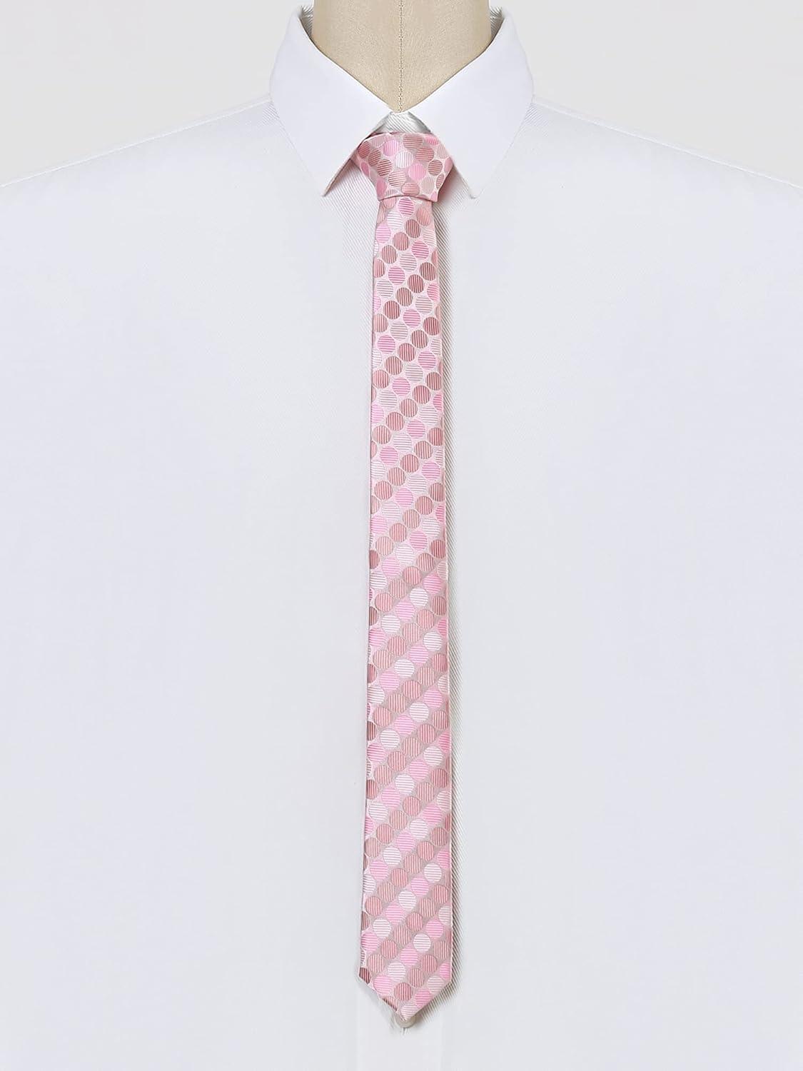 Allegra K Men's Polka Dots Patterned Self-Tied Formal Casual Skinny Ties(Pink)