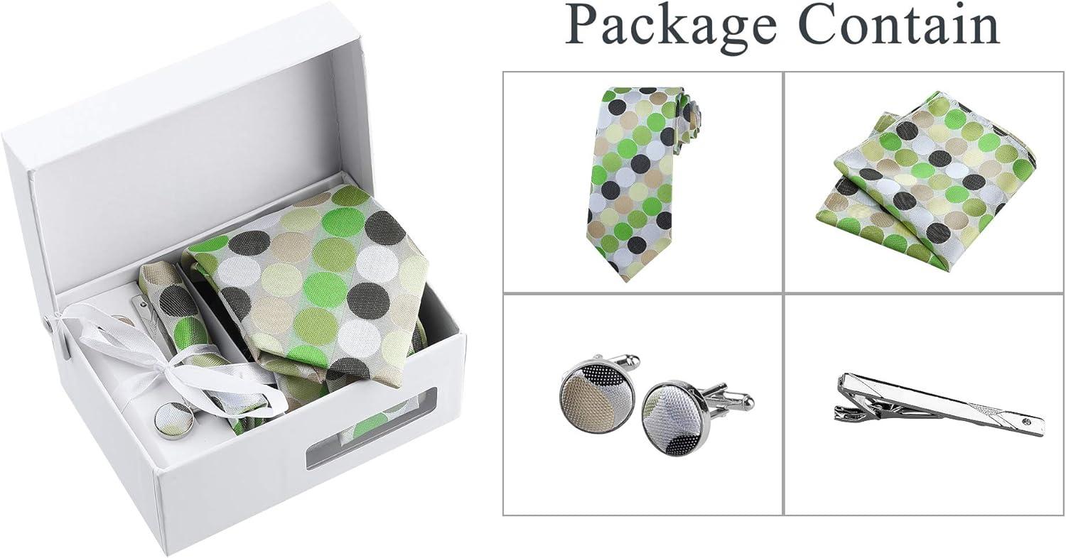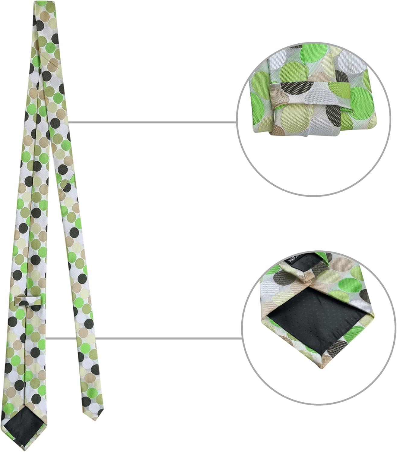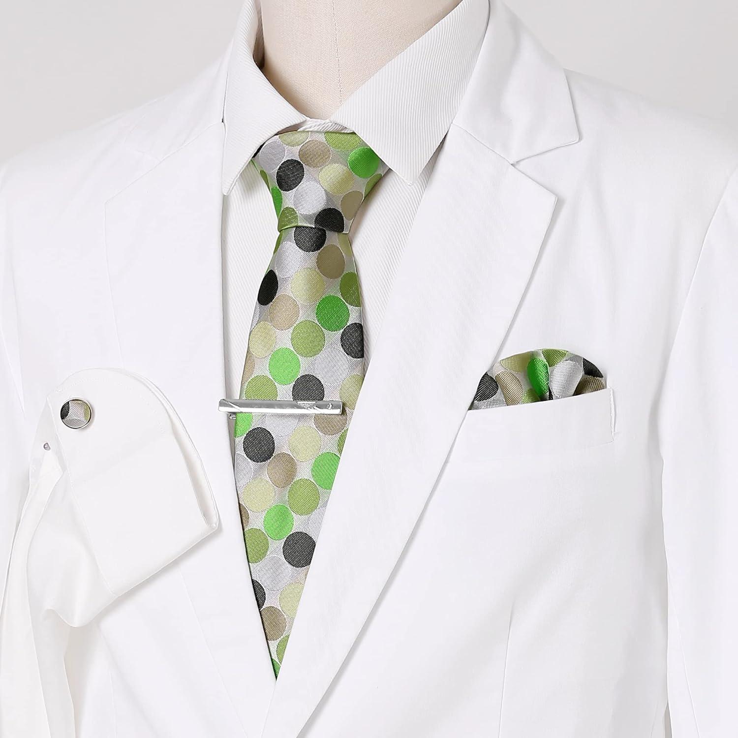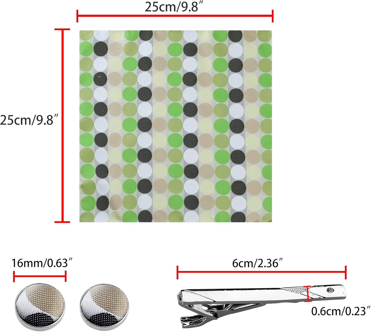 Allegra K Men’s Polka Dots Self-tied Tie Handkerchief Clip Cufflinks Wedding Business Necktie Sets(Green)