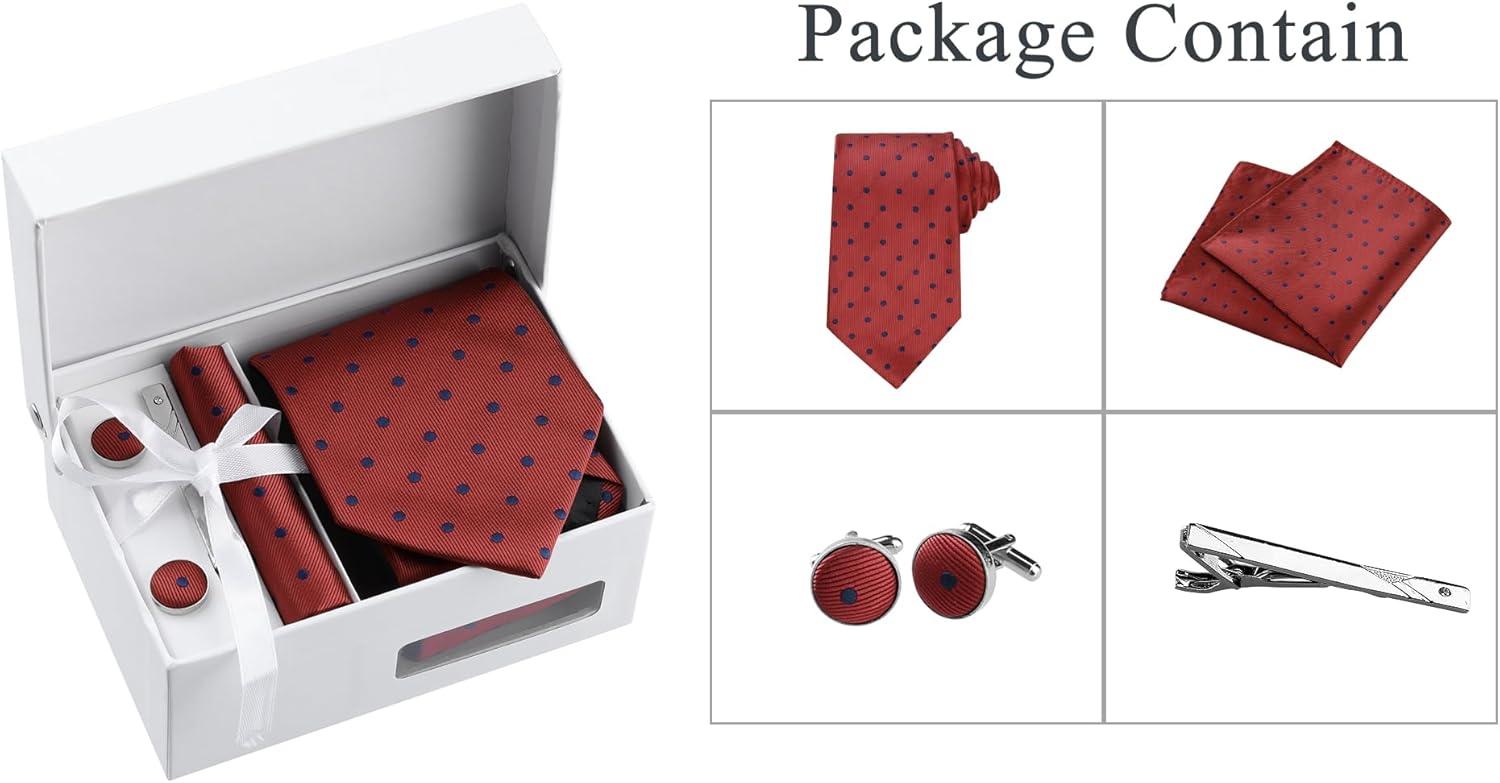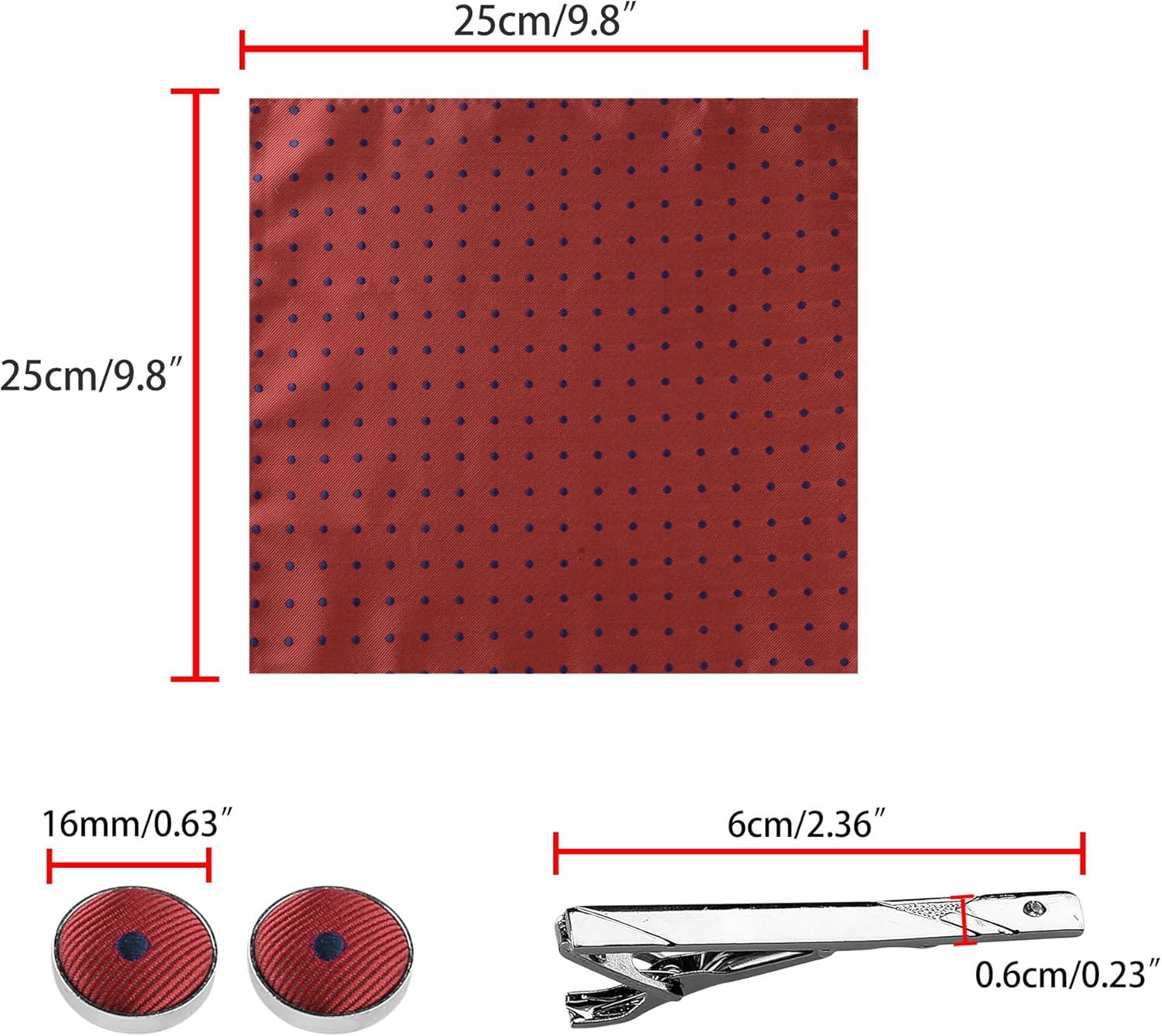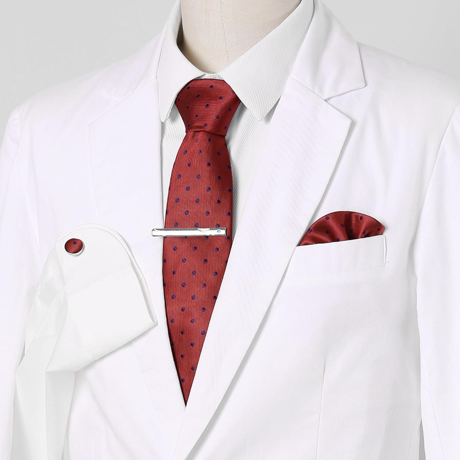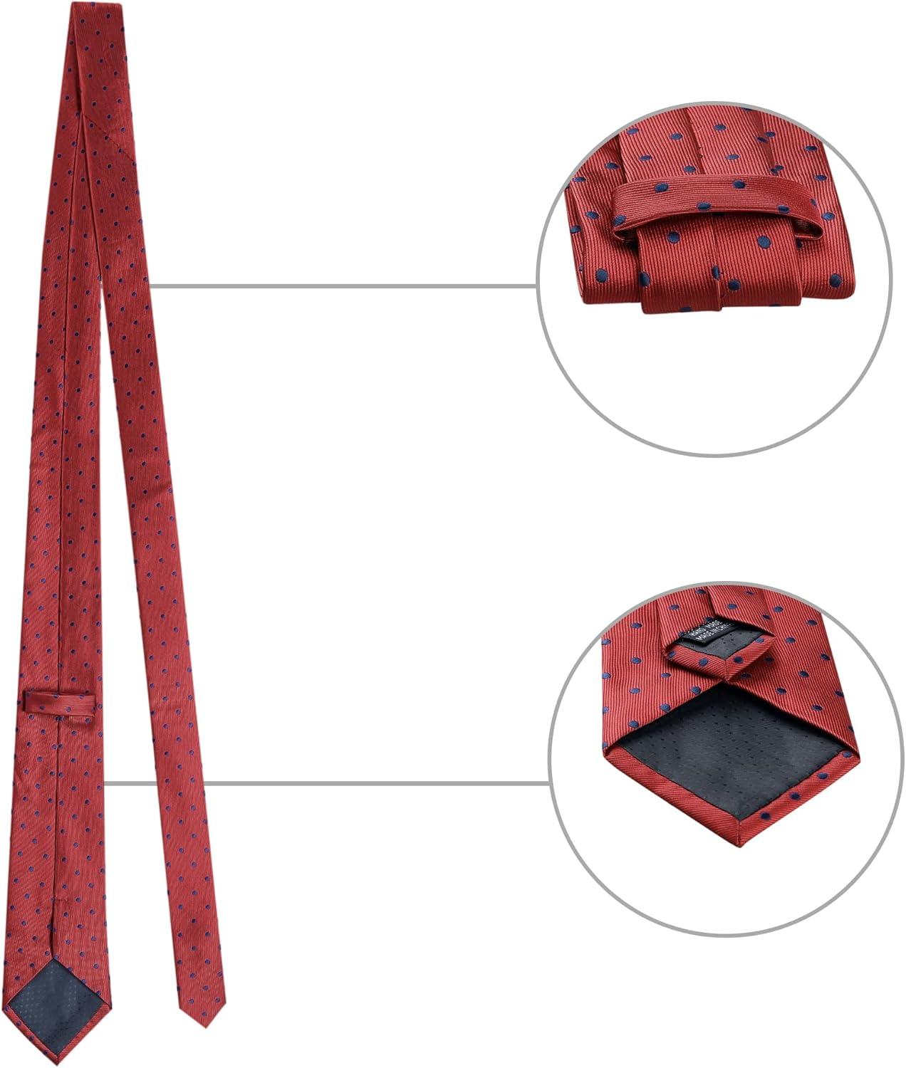 Allegra K Men’s Polka Dots Self-tied Tie Handkerchief Clip Cufflinks Wedding Business Necktie Sets(Red Navy Blue)
