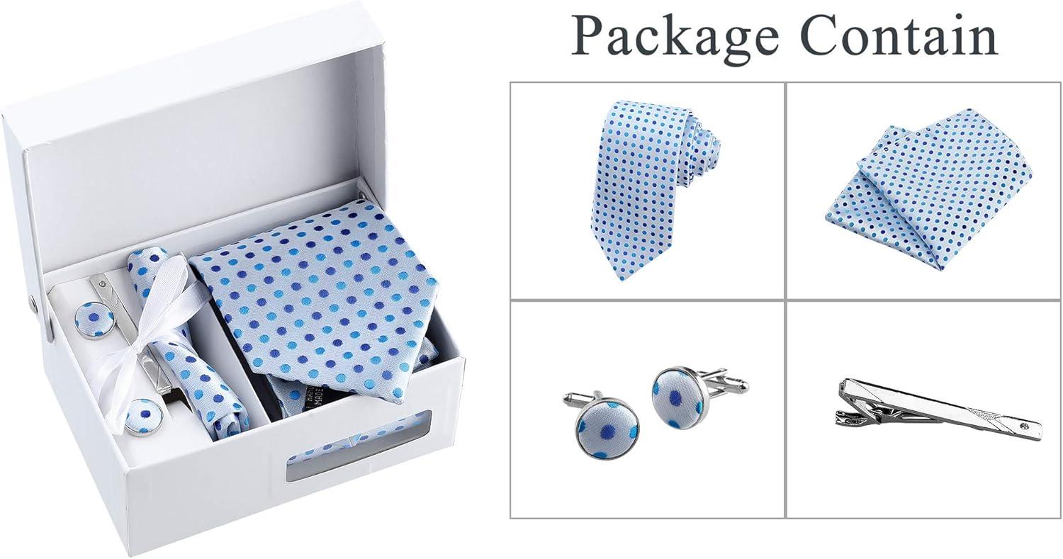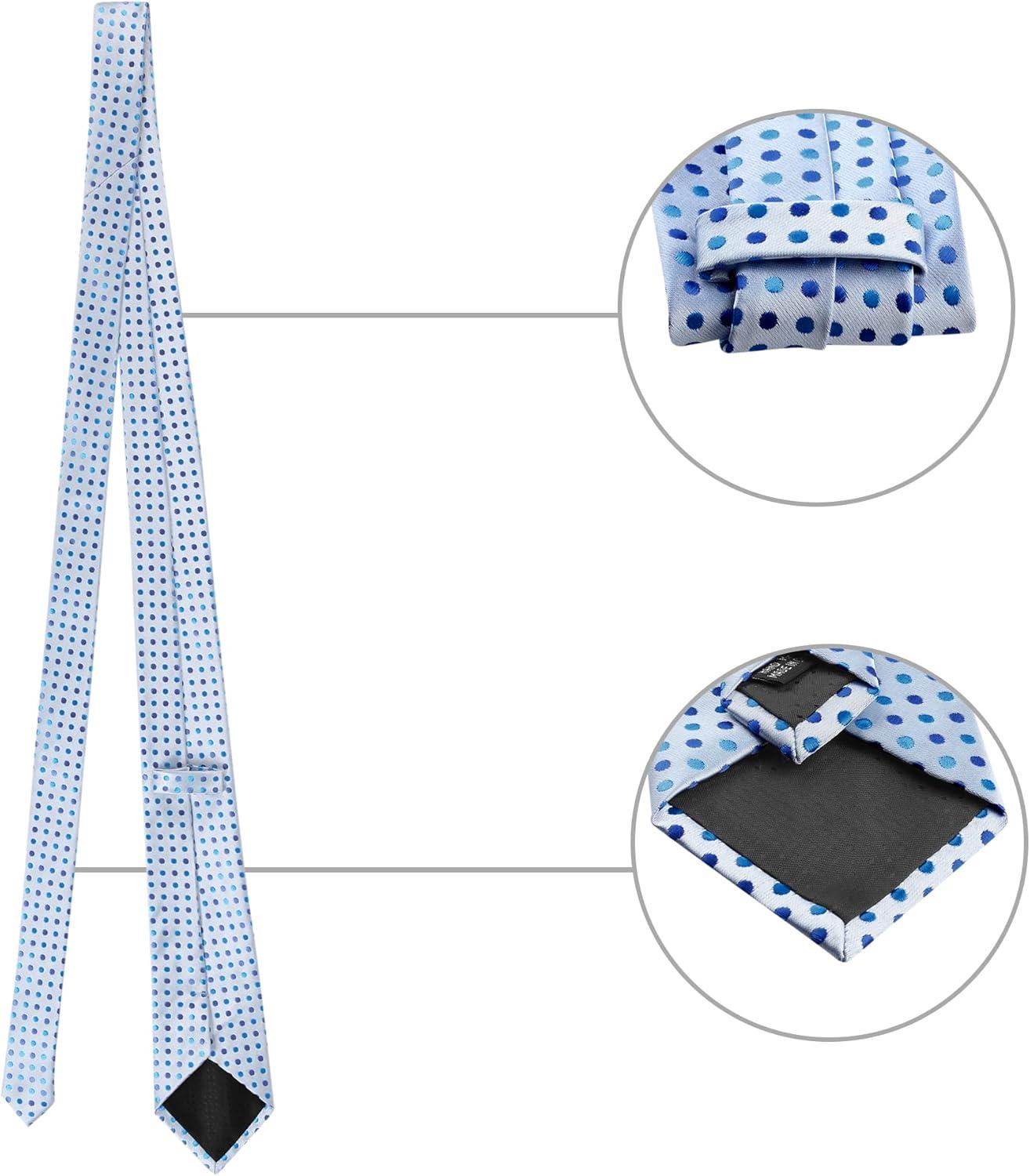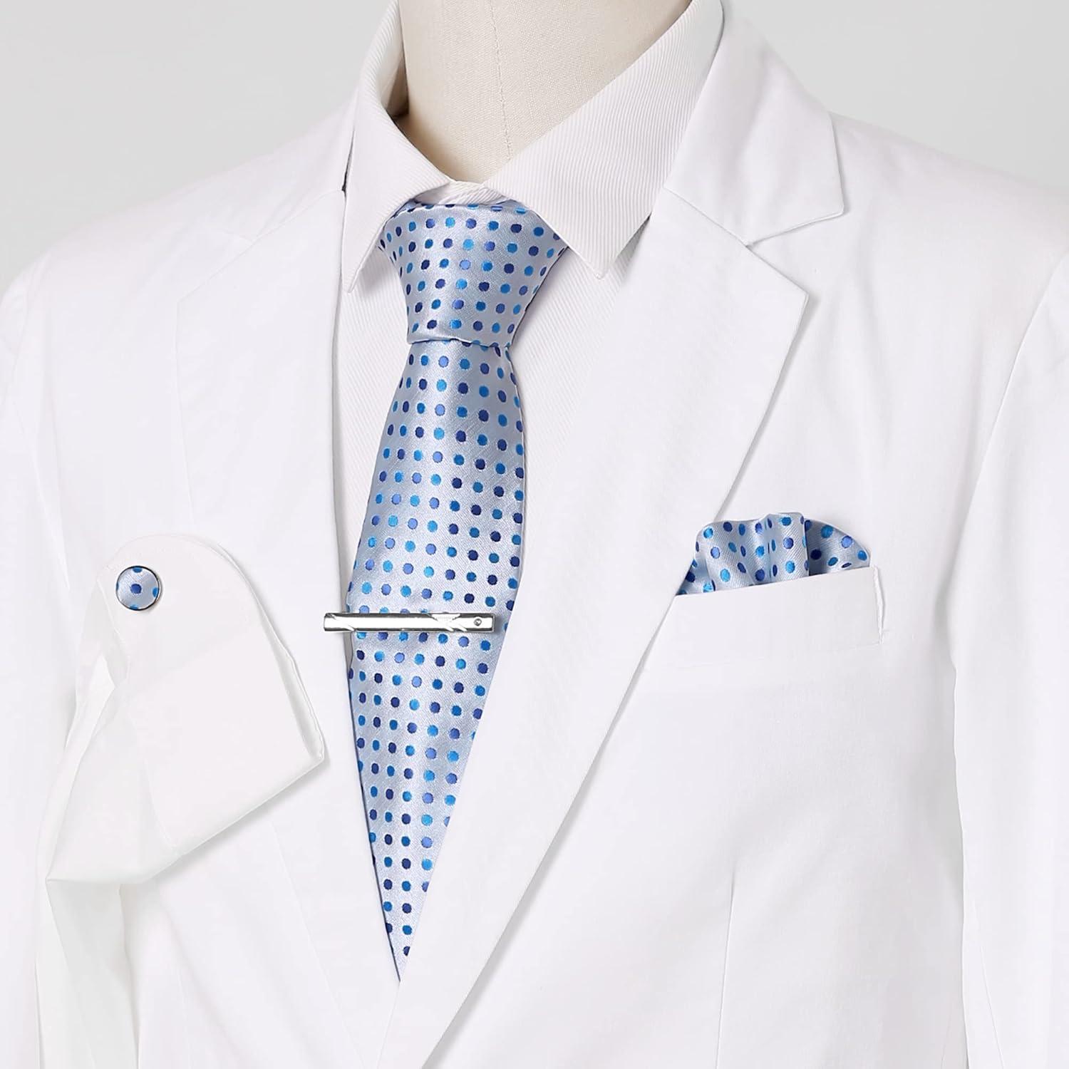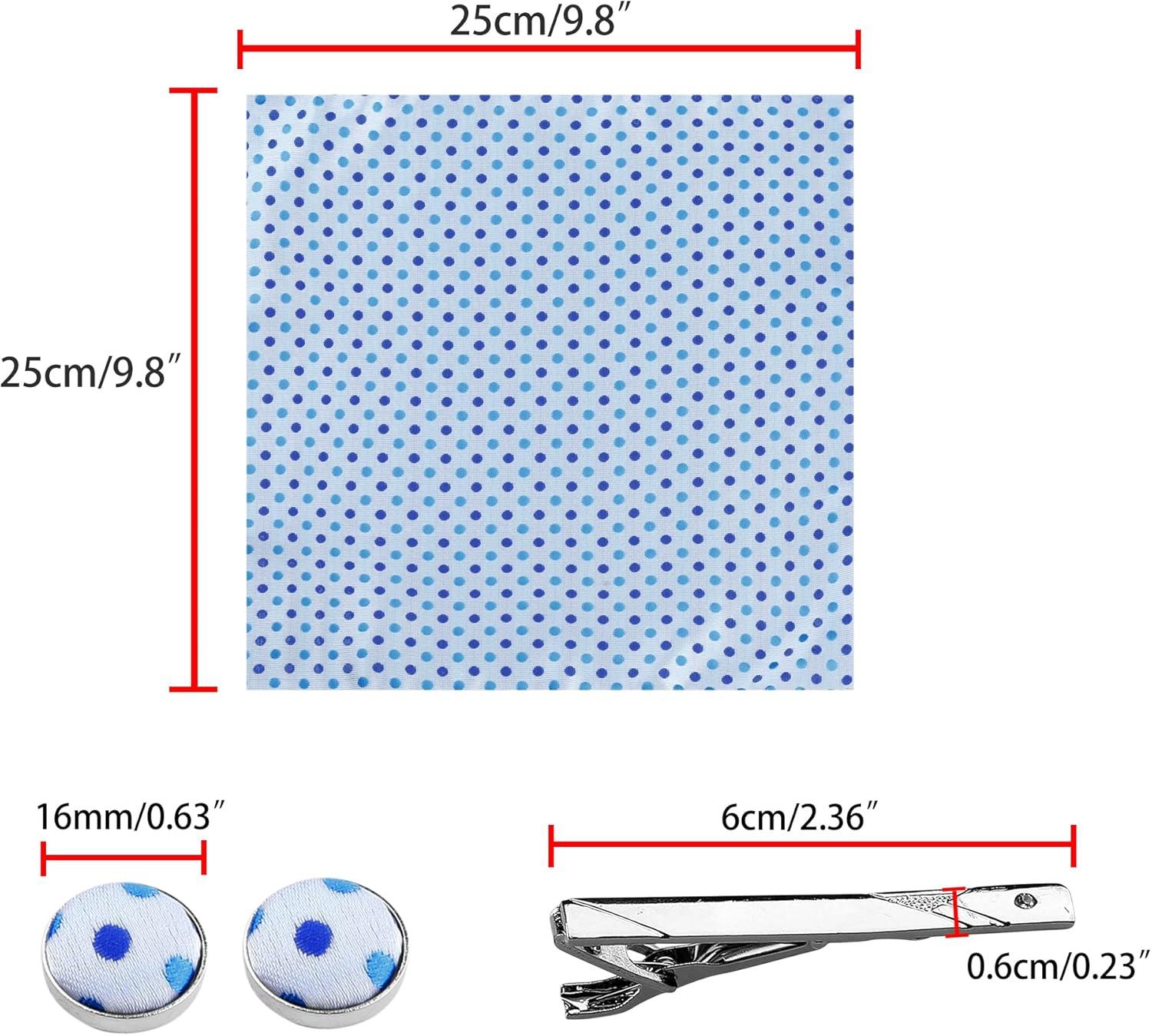 Allegra K Men’s Polka Dots Self-tied Tie Handkerchief Clip Cufflinks Wedding Business Necktie Sets(Sky Blue)