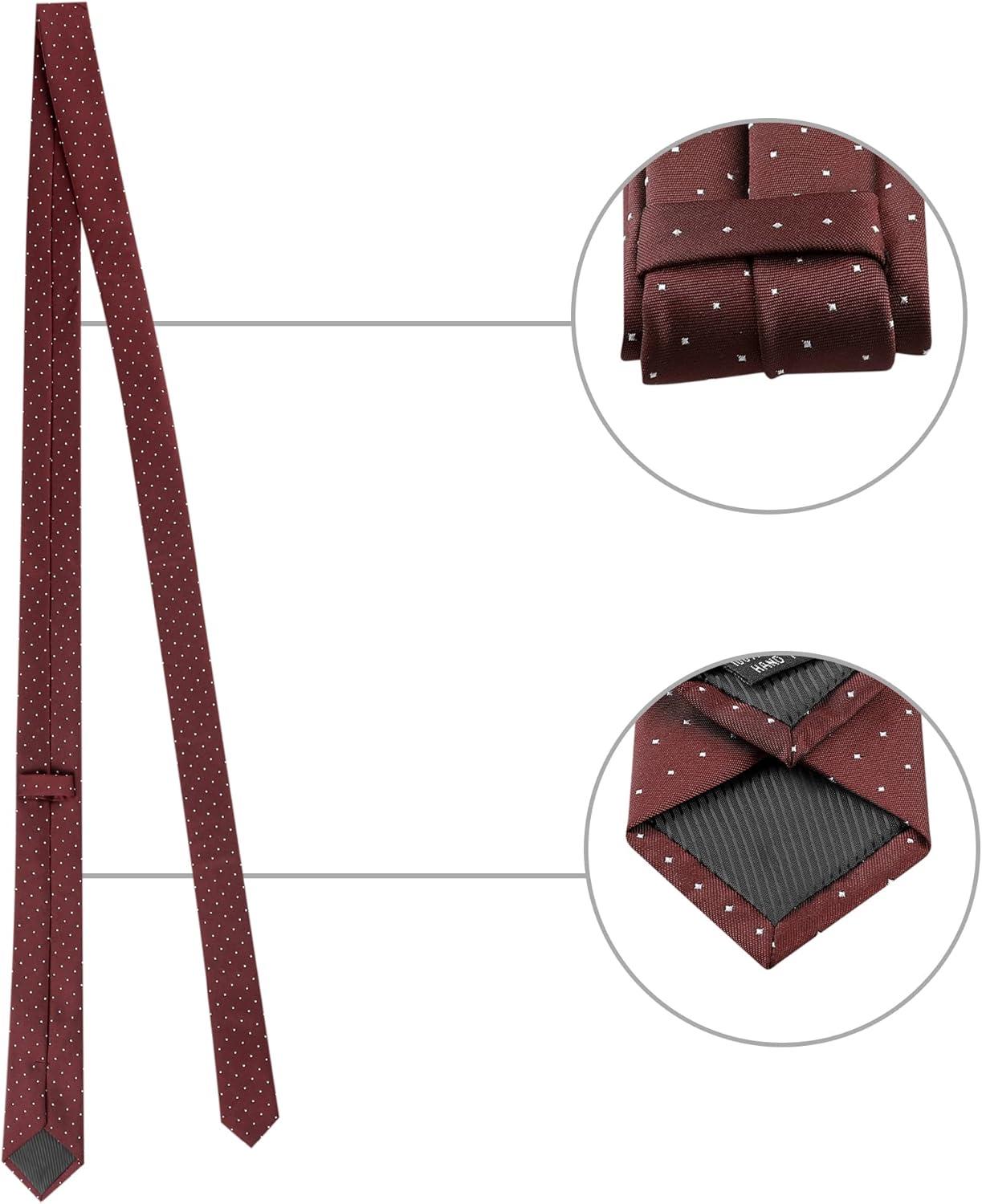 Allegra K Men’s Polka Dots Tie Set Skinny Necktie Pre-Tied Bow Tie with Adjustable Neck Strap Pocket Square(Wine Red)