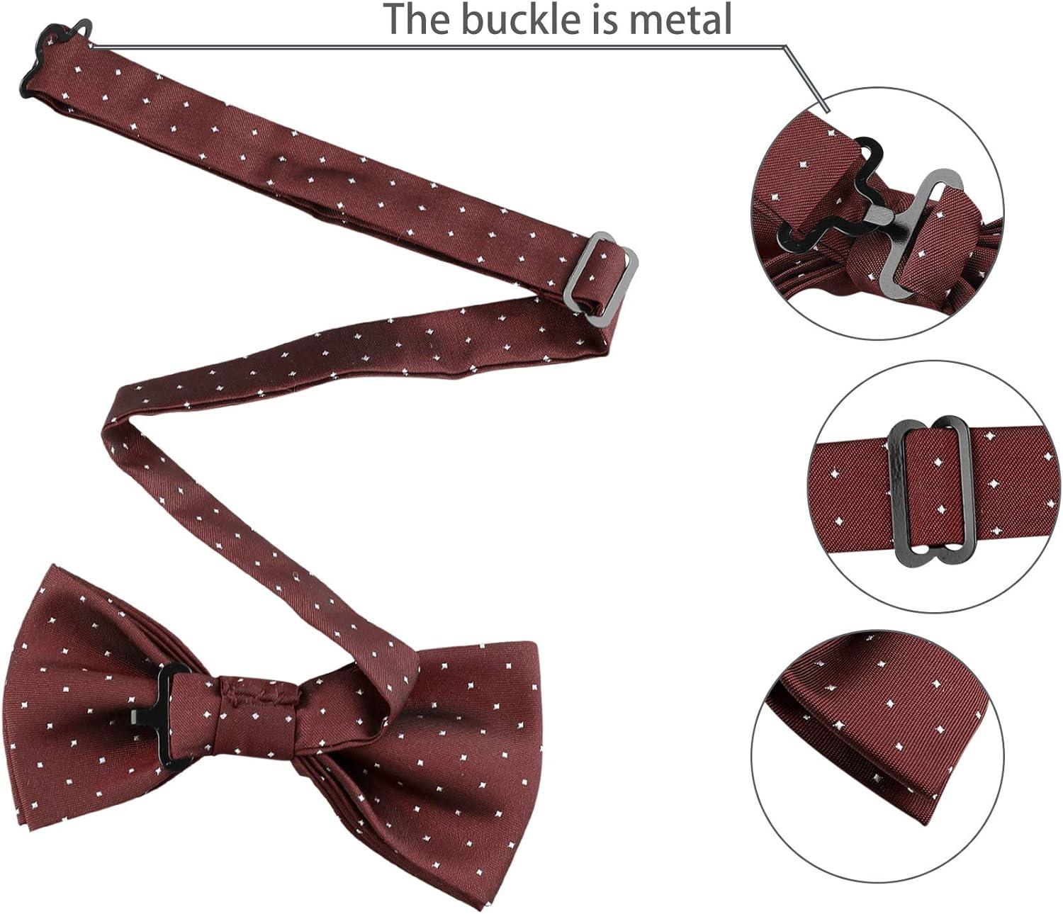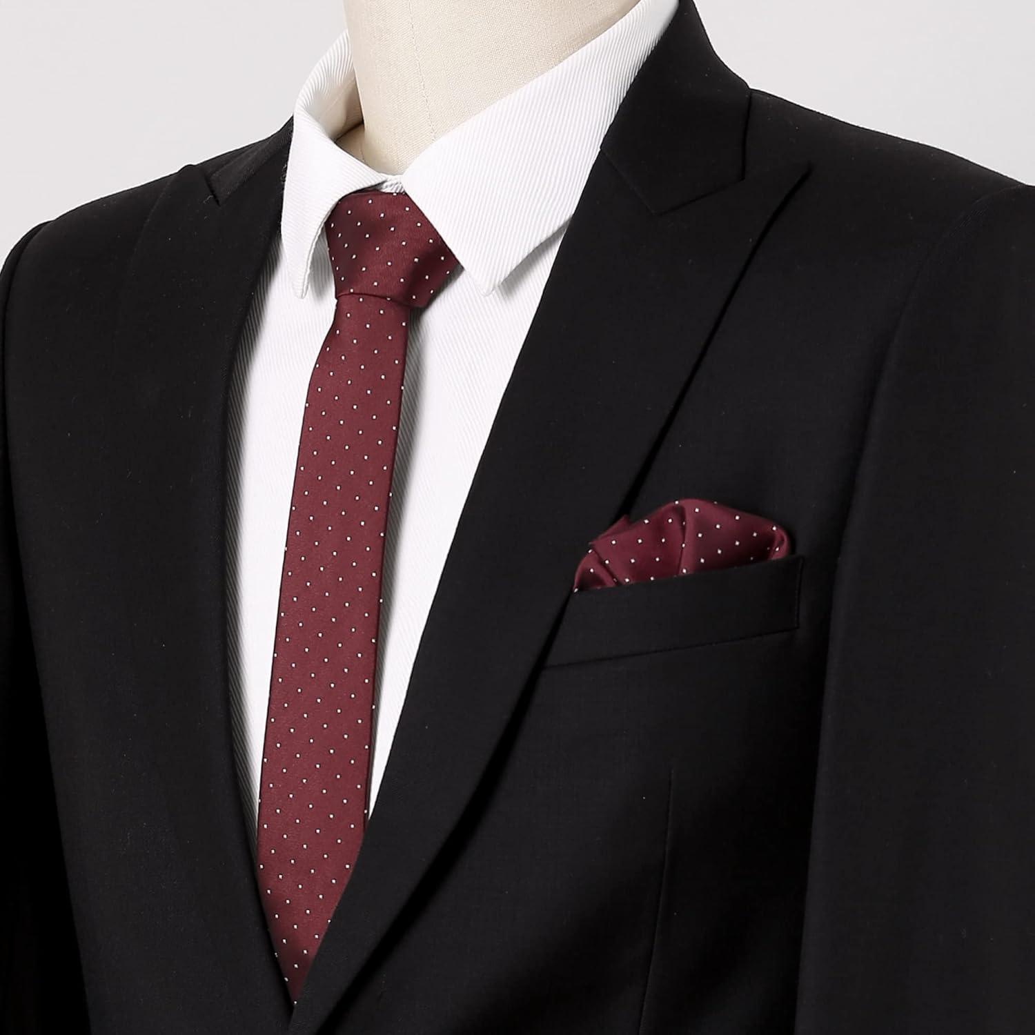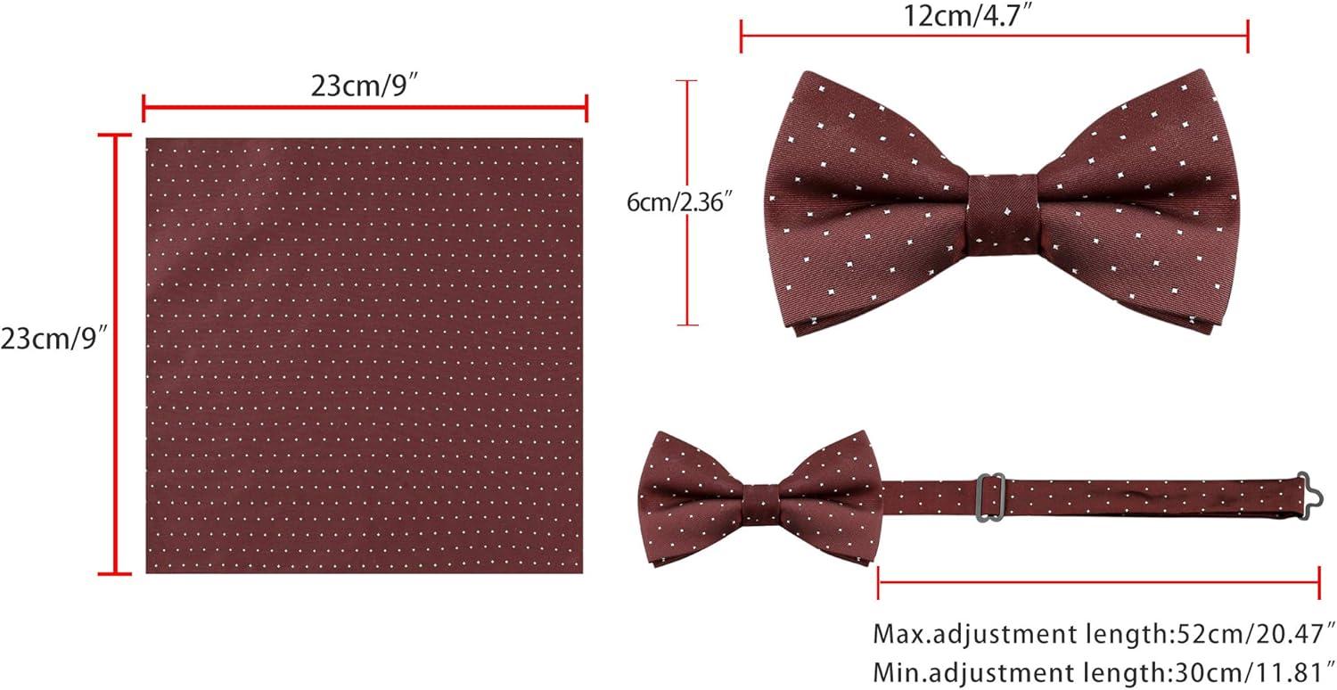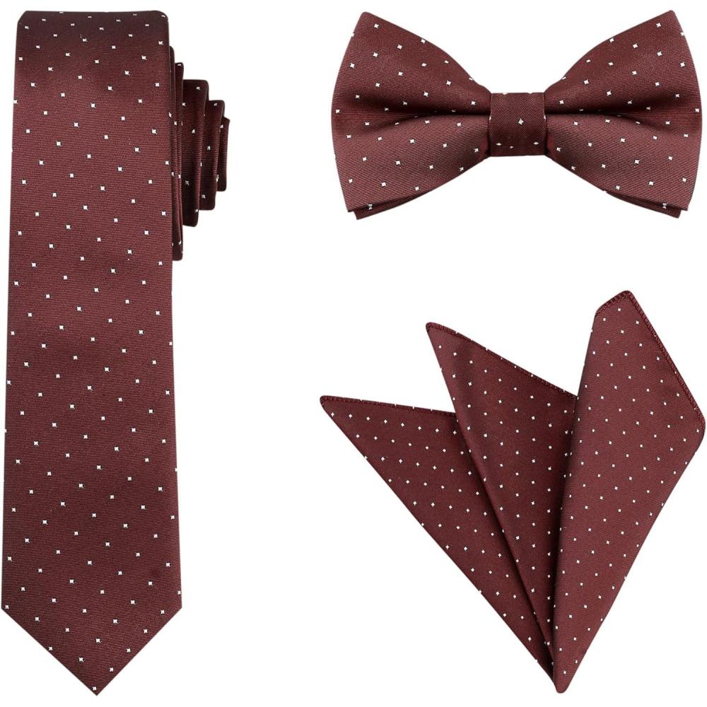 Allegra K Men's Polka Dots Tie Set Skinny Necktie Pre-Tied Bow Tie with Adjustable Neck Strap Pocket Square(Wine Red)
