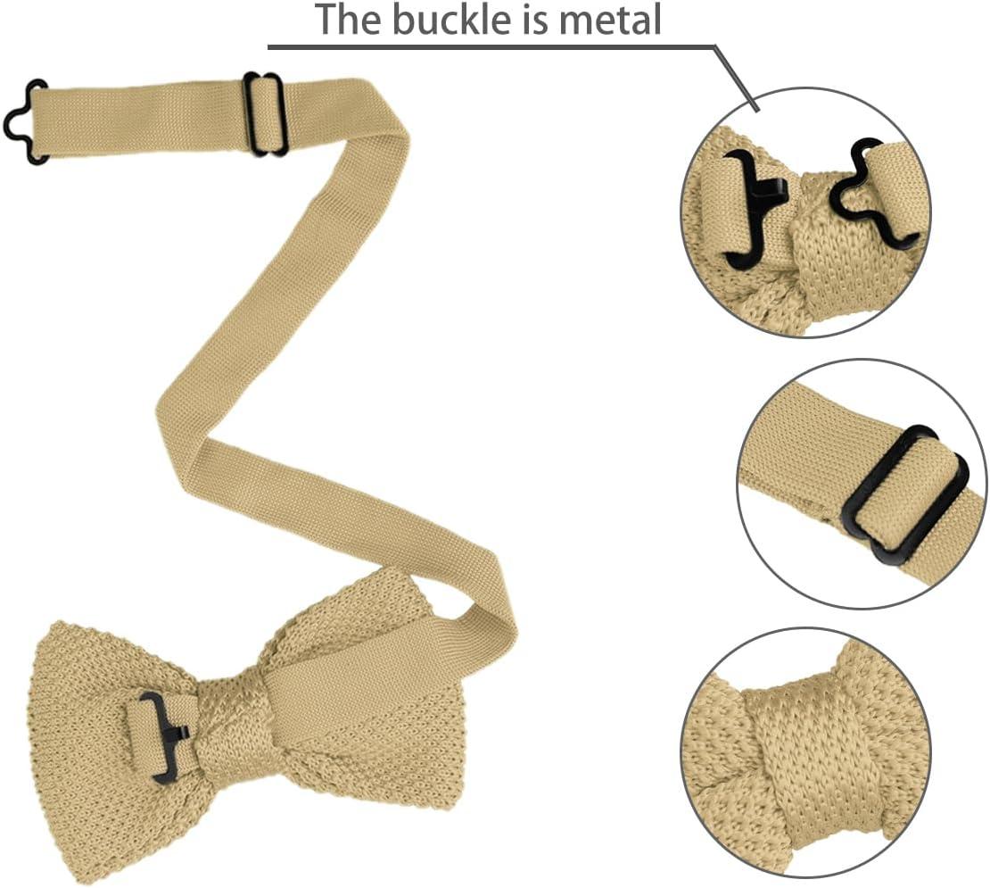 Allegra K Men’s Pre-tied Bowtie Adjustable Neck Solid Color Knitted Bow Ties(Champagne)