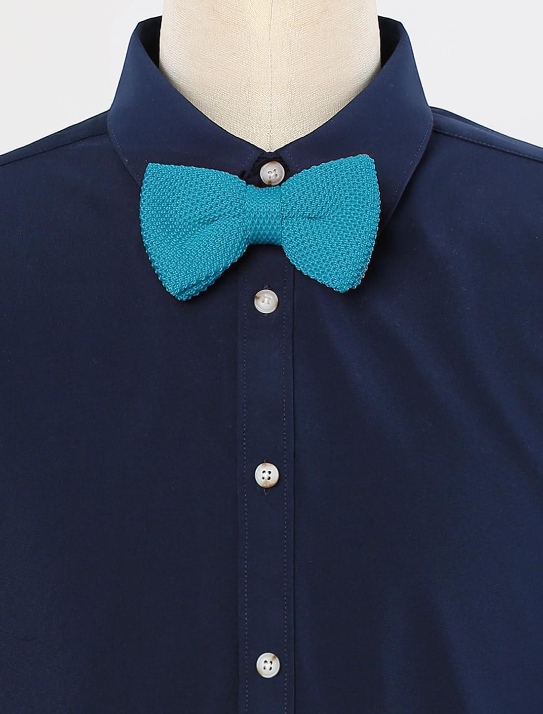 Allegra K Men's Pre-tied Bowtie Adjustable Neck Solid Color Knitted Bow Ties(Teal Blue)
