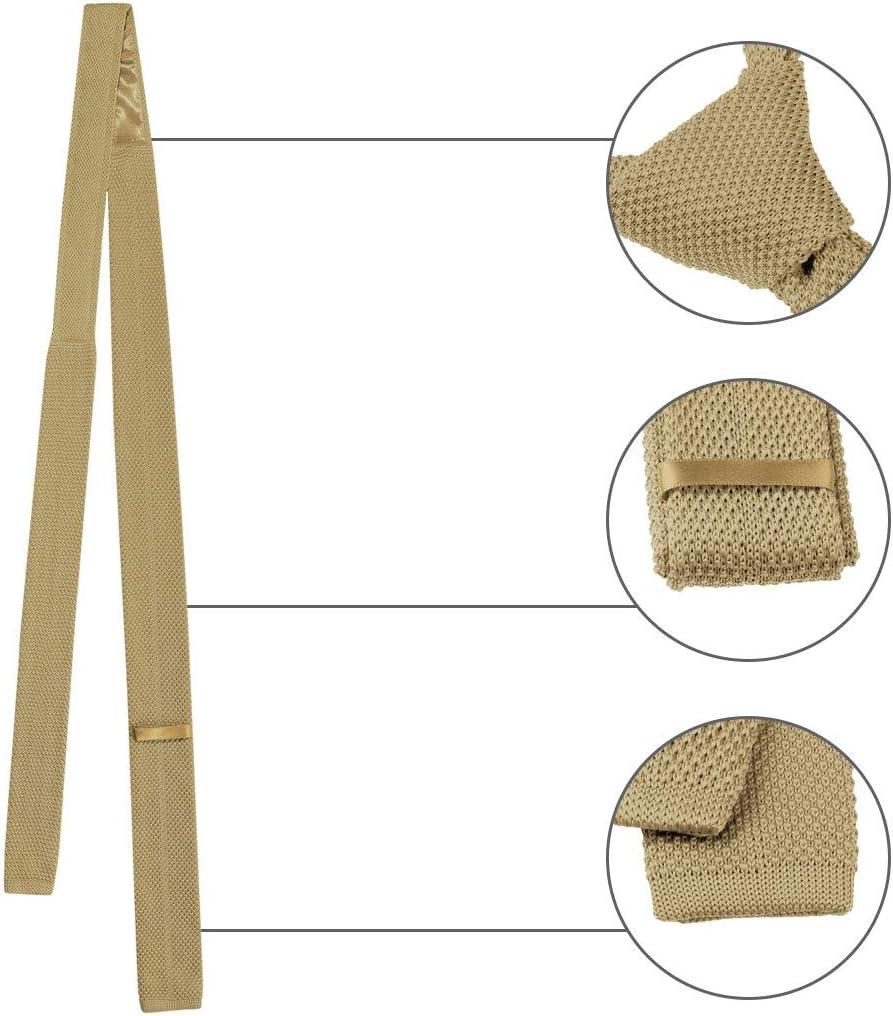 Allegra K Men’s Self-Tied Solid Color Skinny Flat Tips Designed Knit Ties(Khaki)