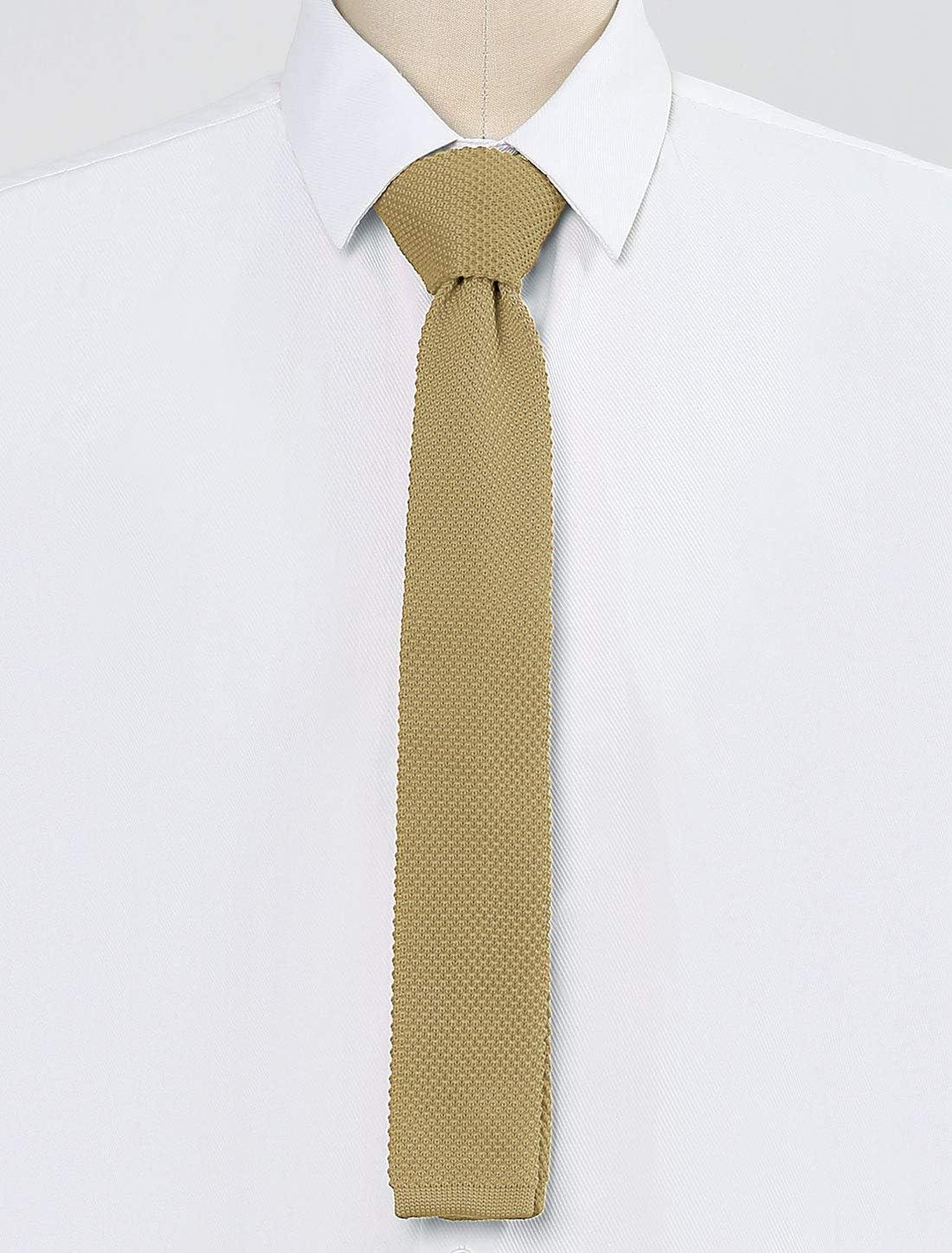 Allegra K Men's Self-Tied Solid Color Skinny Flat Tips Designed Knit Ties(Khaki)