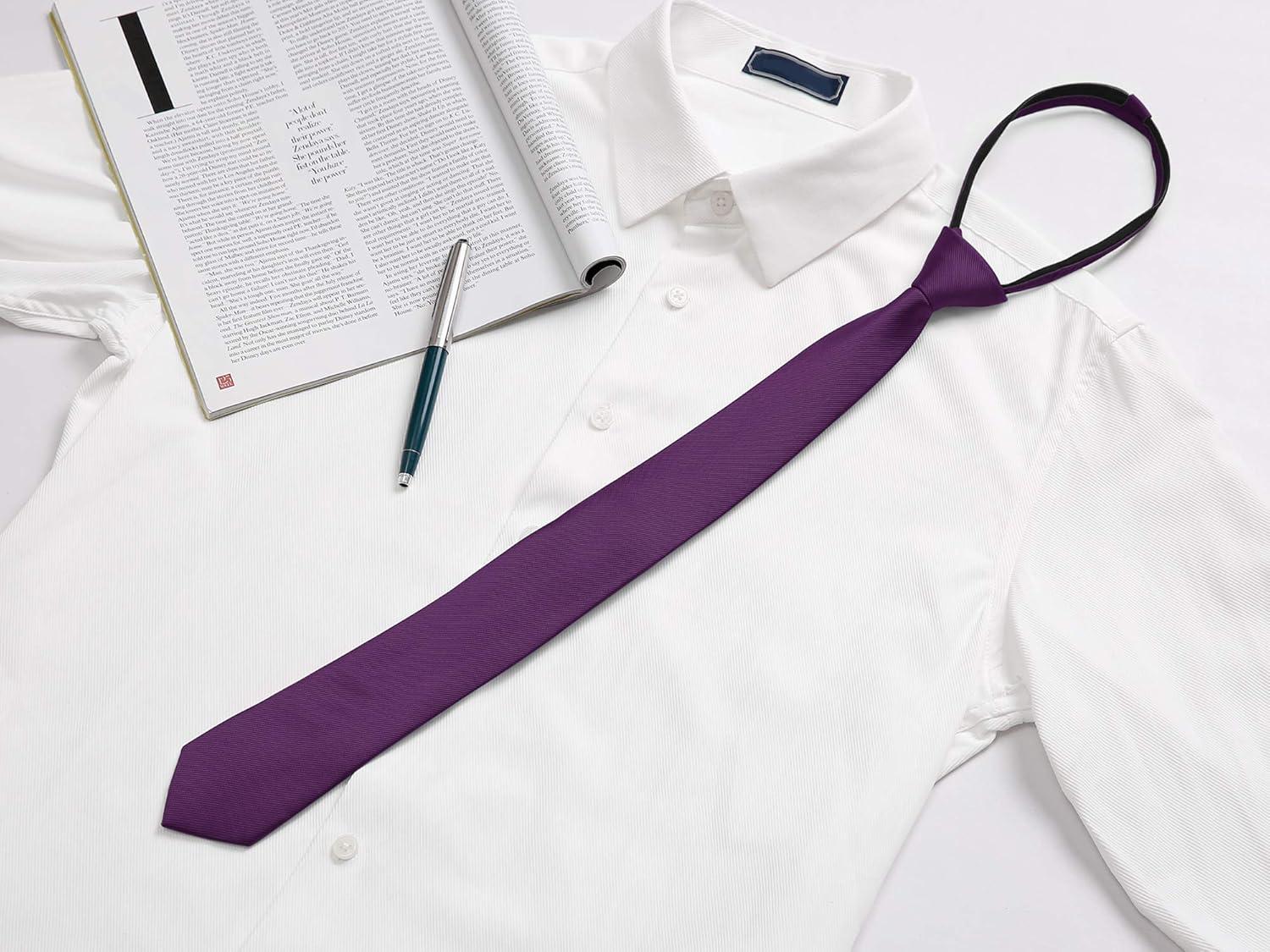 Allegra K Men's Skinny Pretied Solid Color Zipper Ties Neck Adjustable Strap Wedding Groom Tie(Deep Purple)