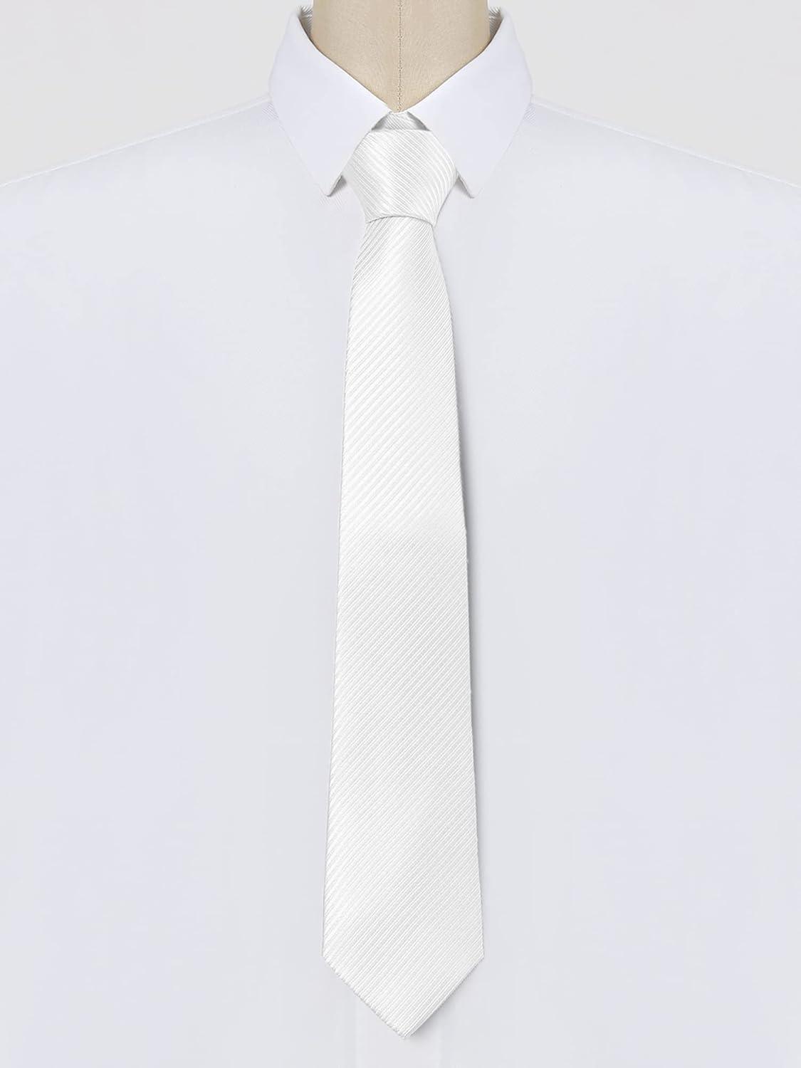 Allegra K Men’s Solid Color Self-tied Stripes Textured Wide Tie Neck Wedding Formal Ties(White)