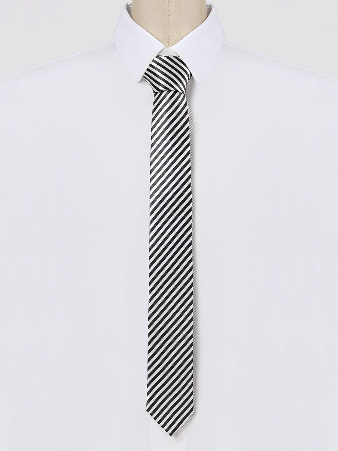 Allegra K Men’s Stripe Classic Self-Tied Necktie Skinny Tie Slim Ties for Business Casual(Black White)