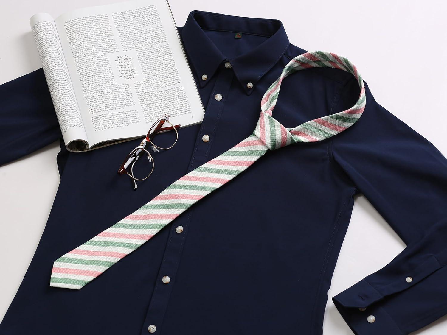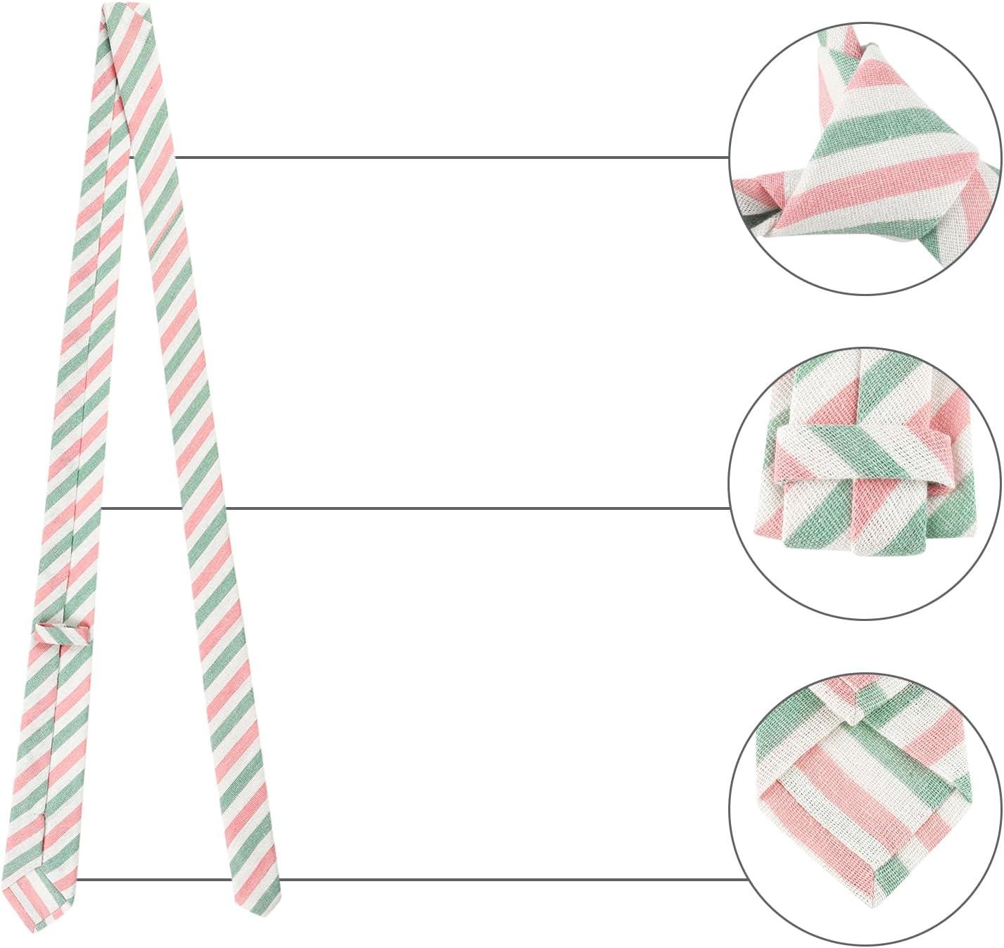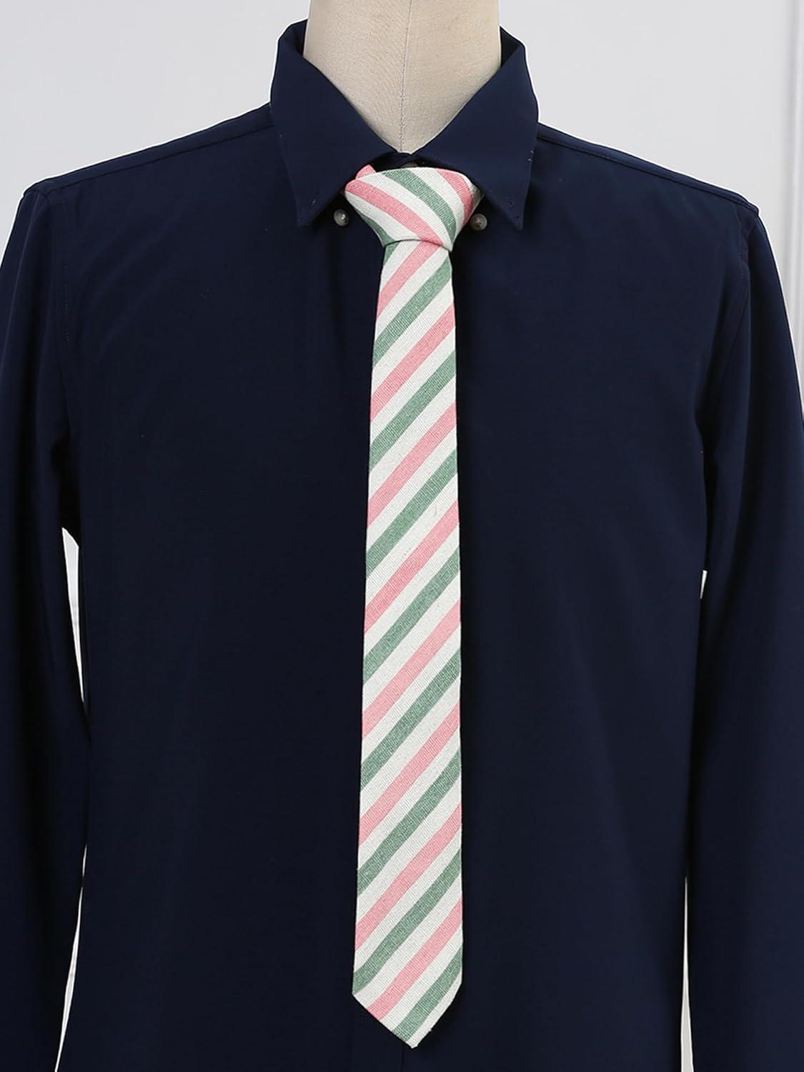 Allegra K Men’s Stripe Necktie Self-Tied Linen Slim Ties for Business Casual(Green Pink)