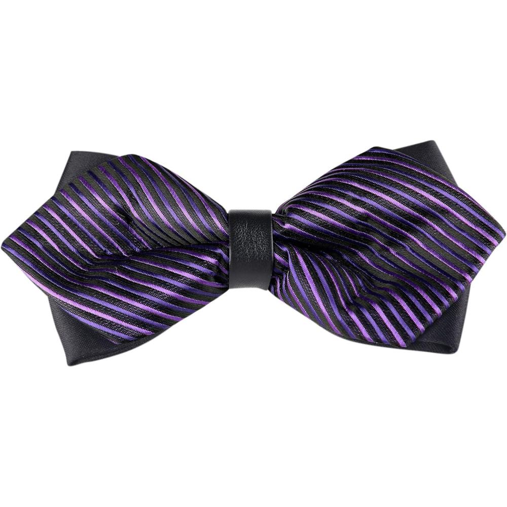 Allegra K Men's Striped Pre-Tied Bow Tie Adjustable Neck Bowties Wedding Formal Ties(Purple)