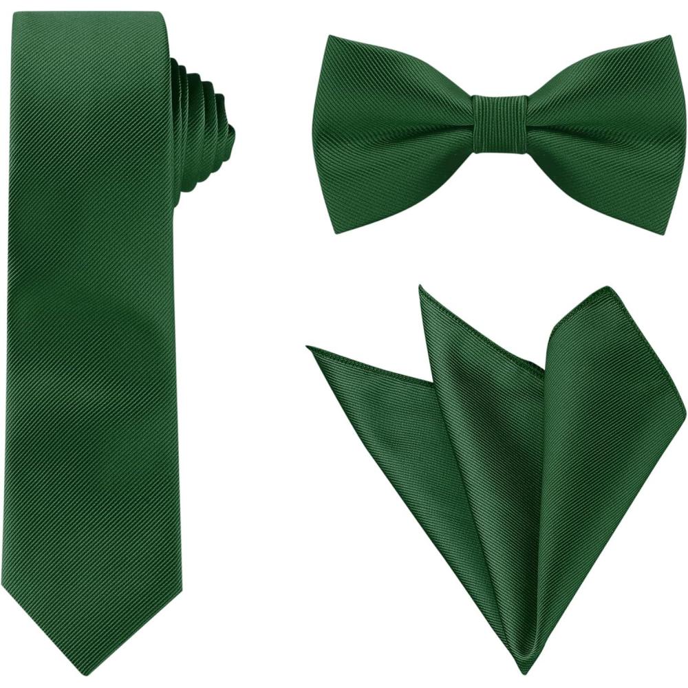 Allegra K Necktie, Pre-Tied Bowtie, and Pocket Square Set Ties for Wedding Business(Dark Green)