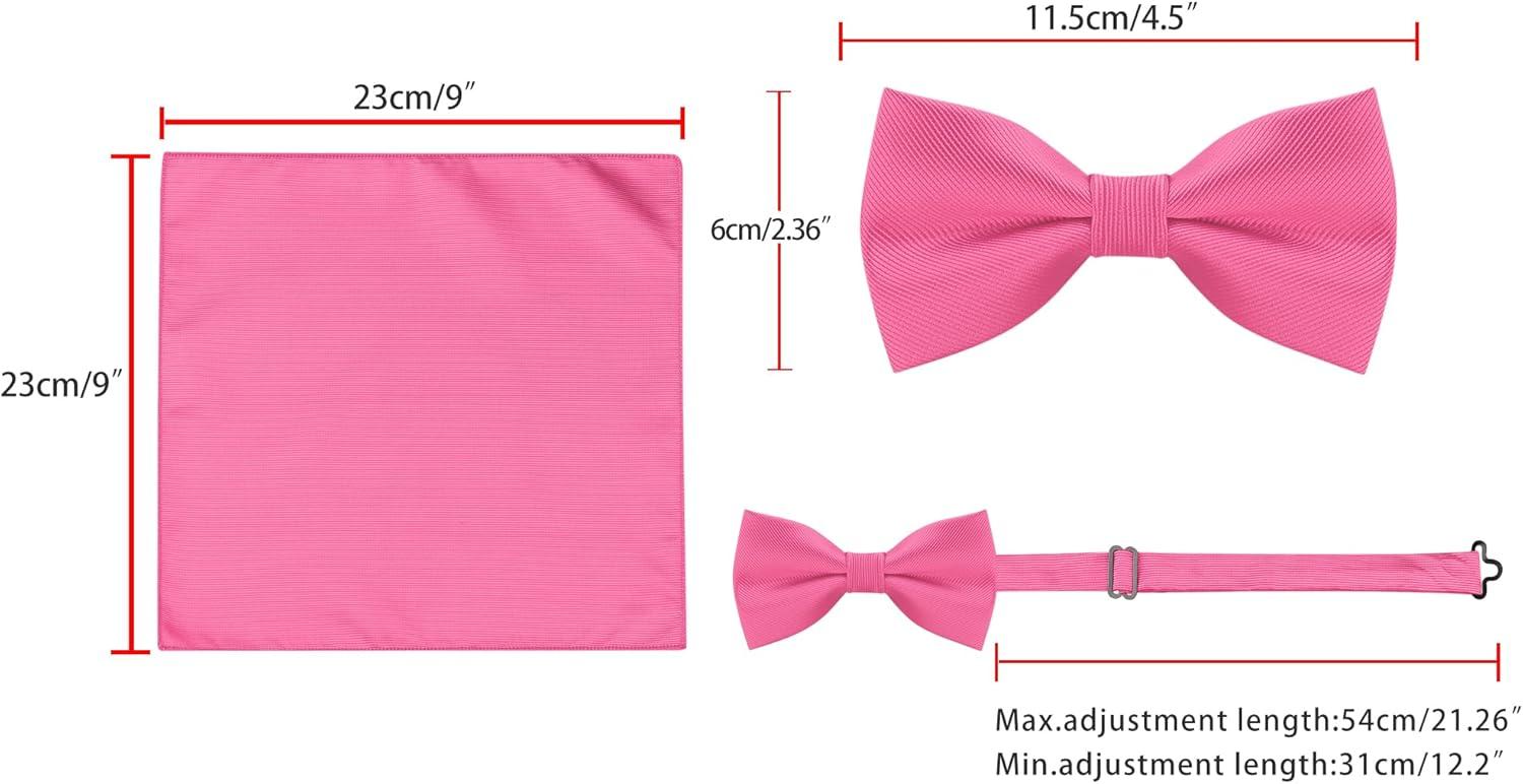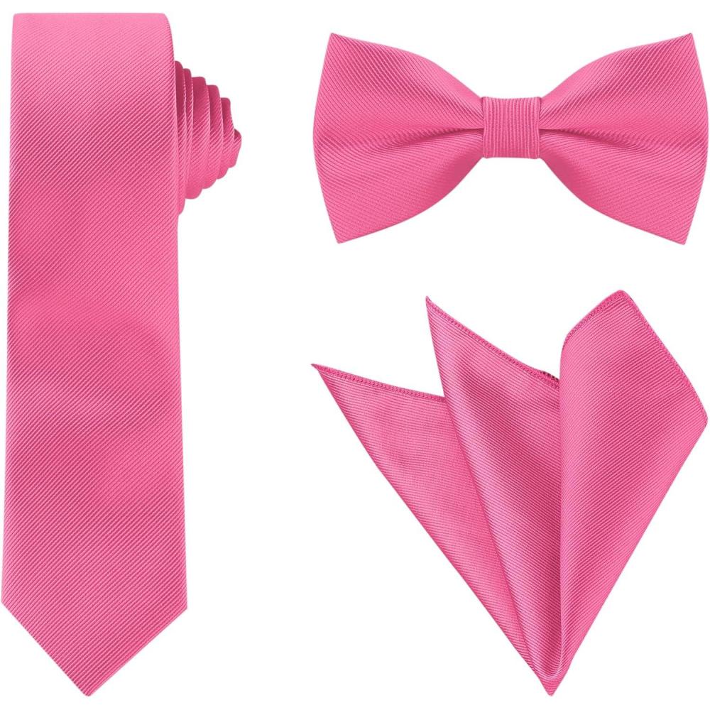 Allegra K Necktie, Pre-Tied Bowtie, and Pocket Square Set Ties for Wedding Business(Hot Pink)