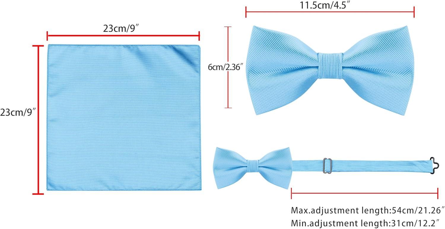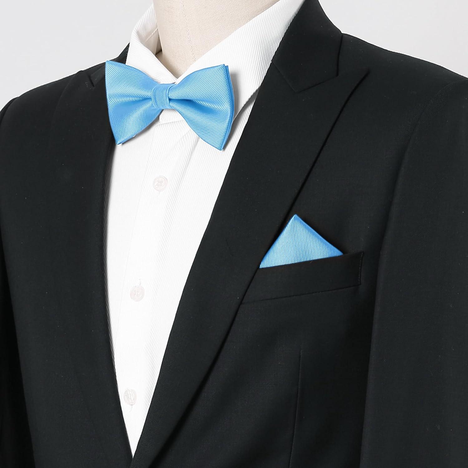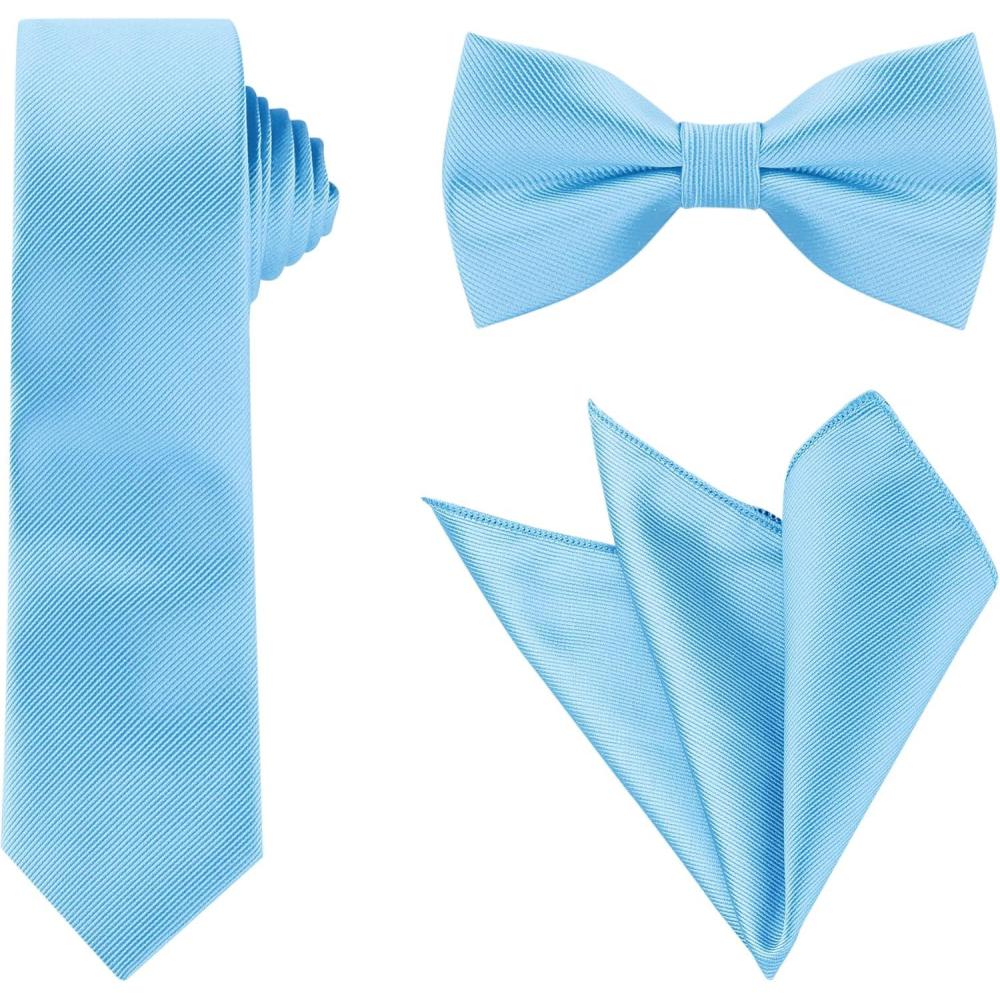 Allegra K Necktie, Pre-Tied Bowtie, and Pocket Square Set Ties for Wedding Business(Sky Blue)