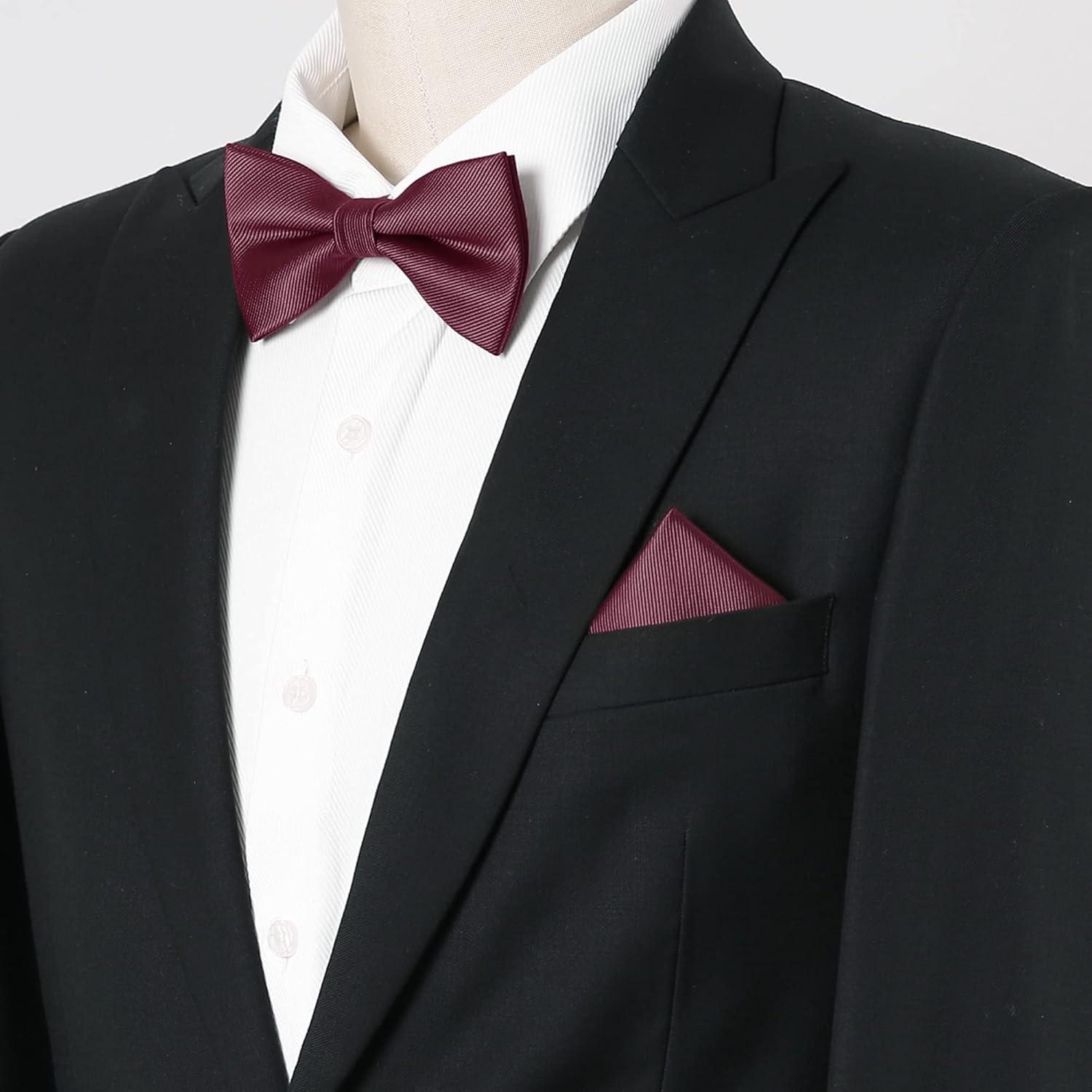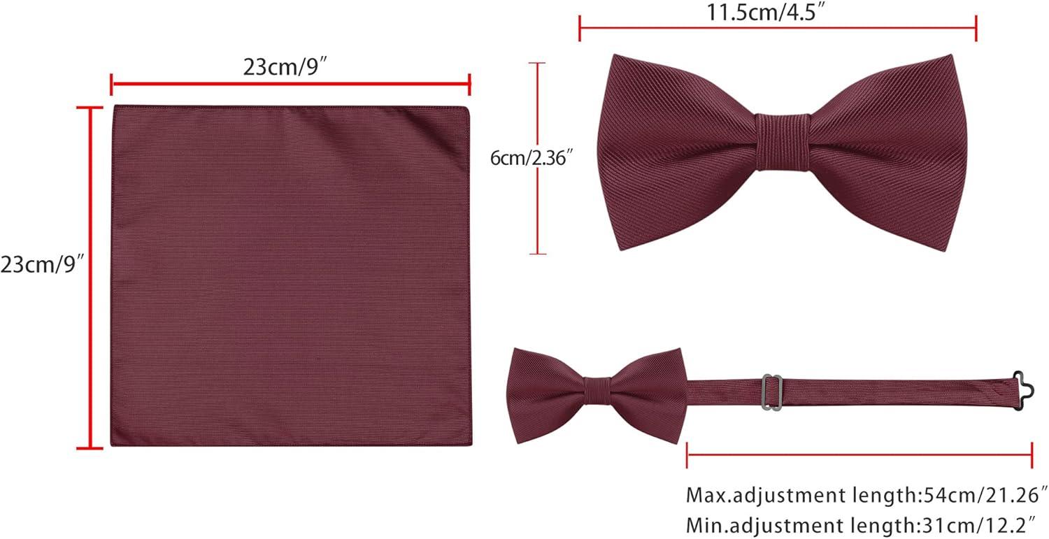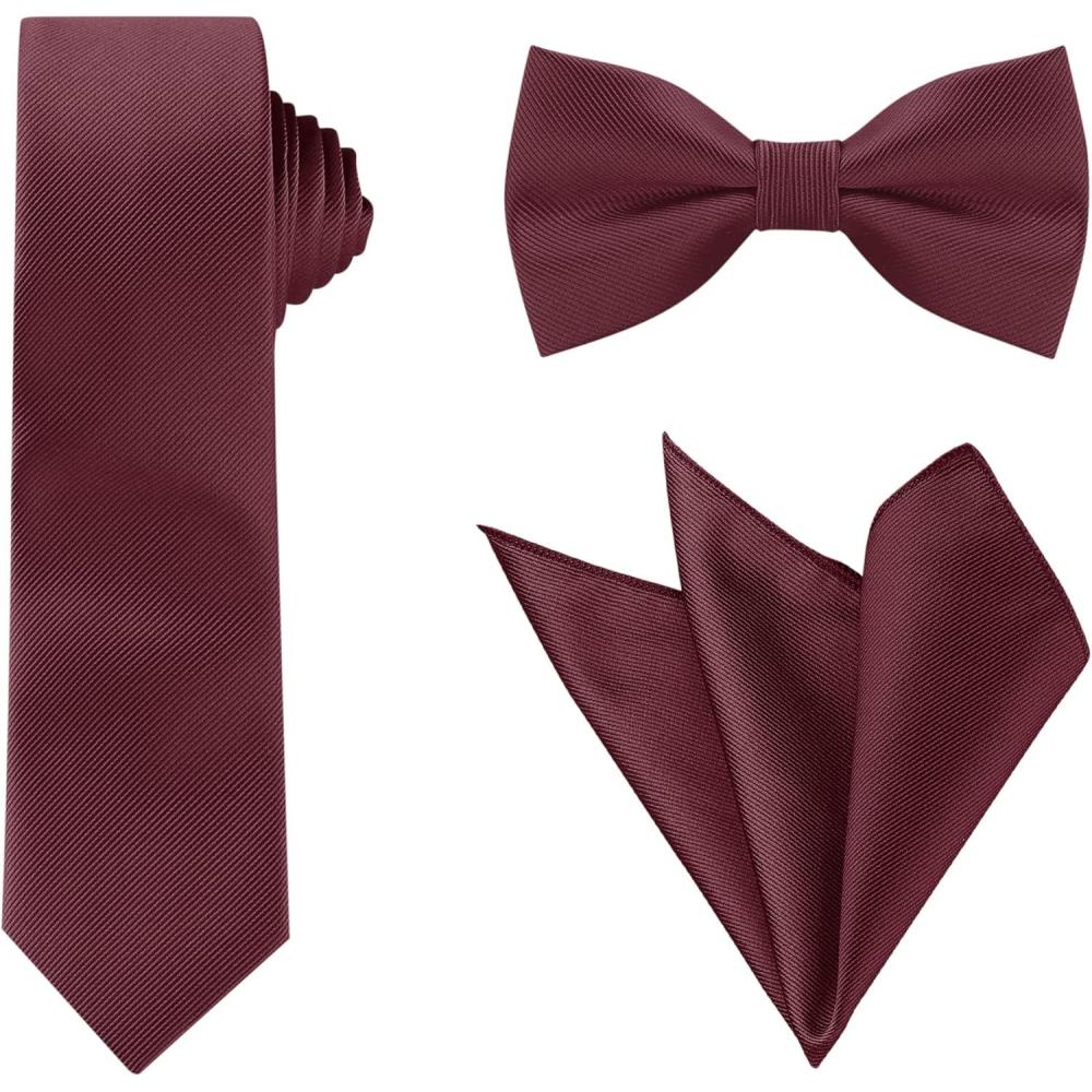 Allegra K Necktie, Pre-Tied Bowtie, and Pocket Square Set Ties for Wedding Business(Wine Red)