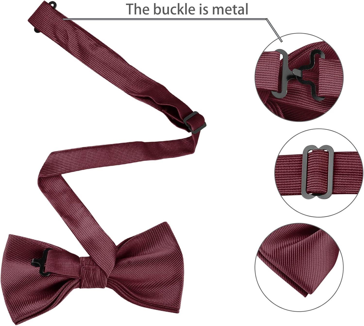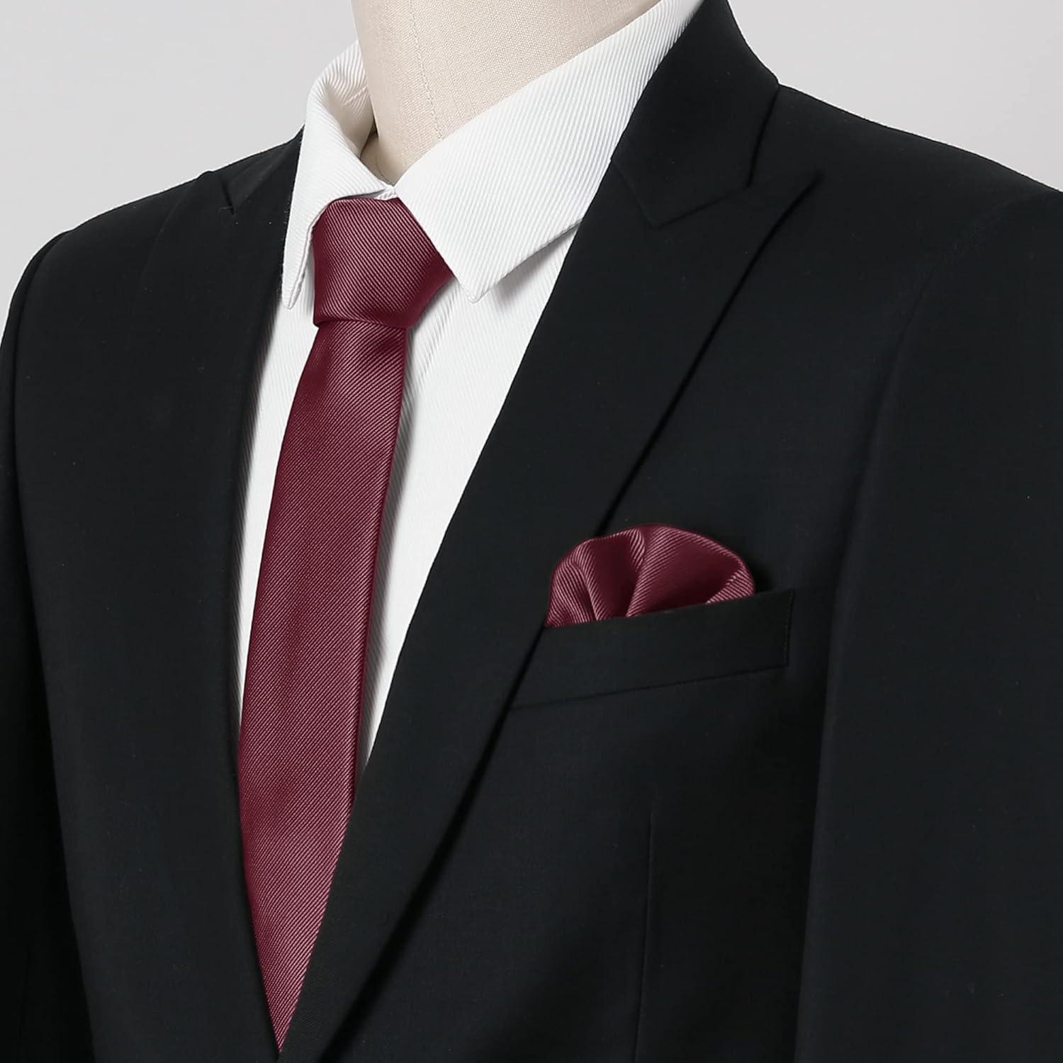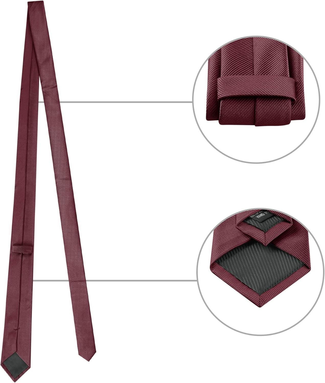Allegra K Necktie, Pre-Tied Bowtie, and Pocket Square Set Ties for Wedding Business(Wine Red)