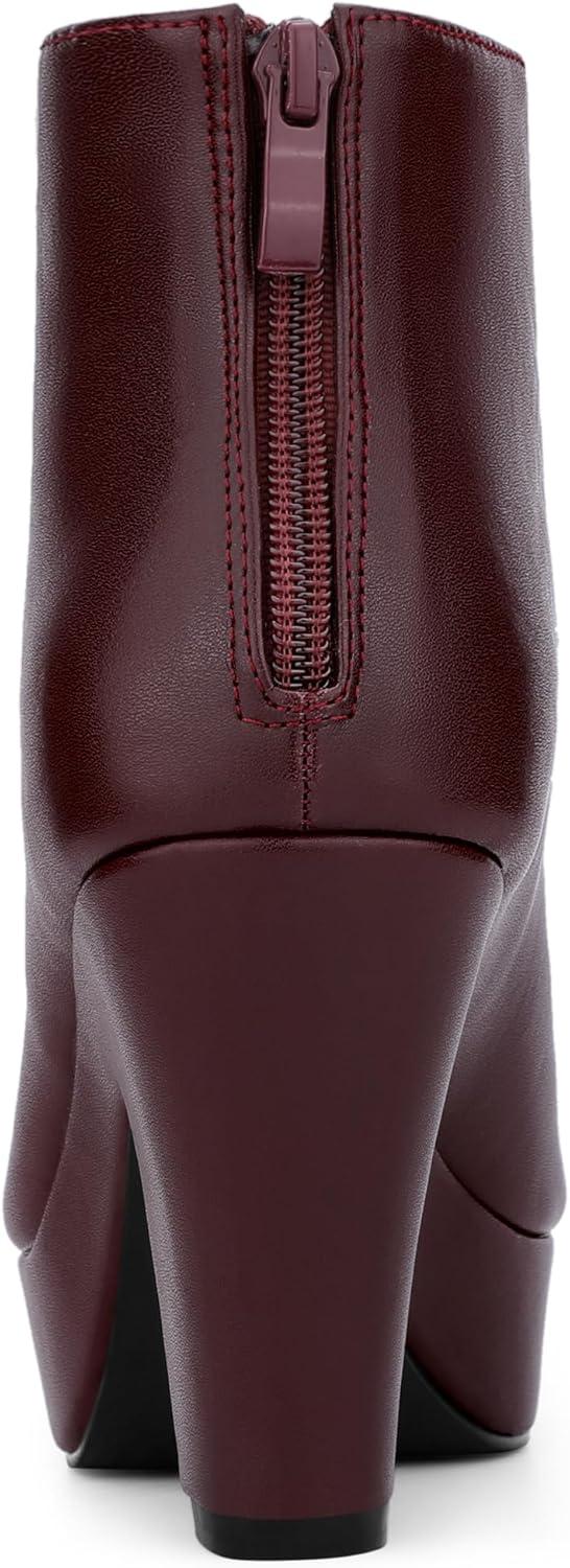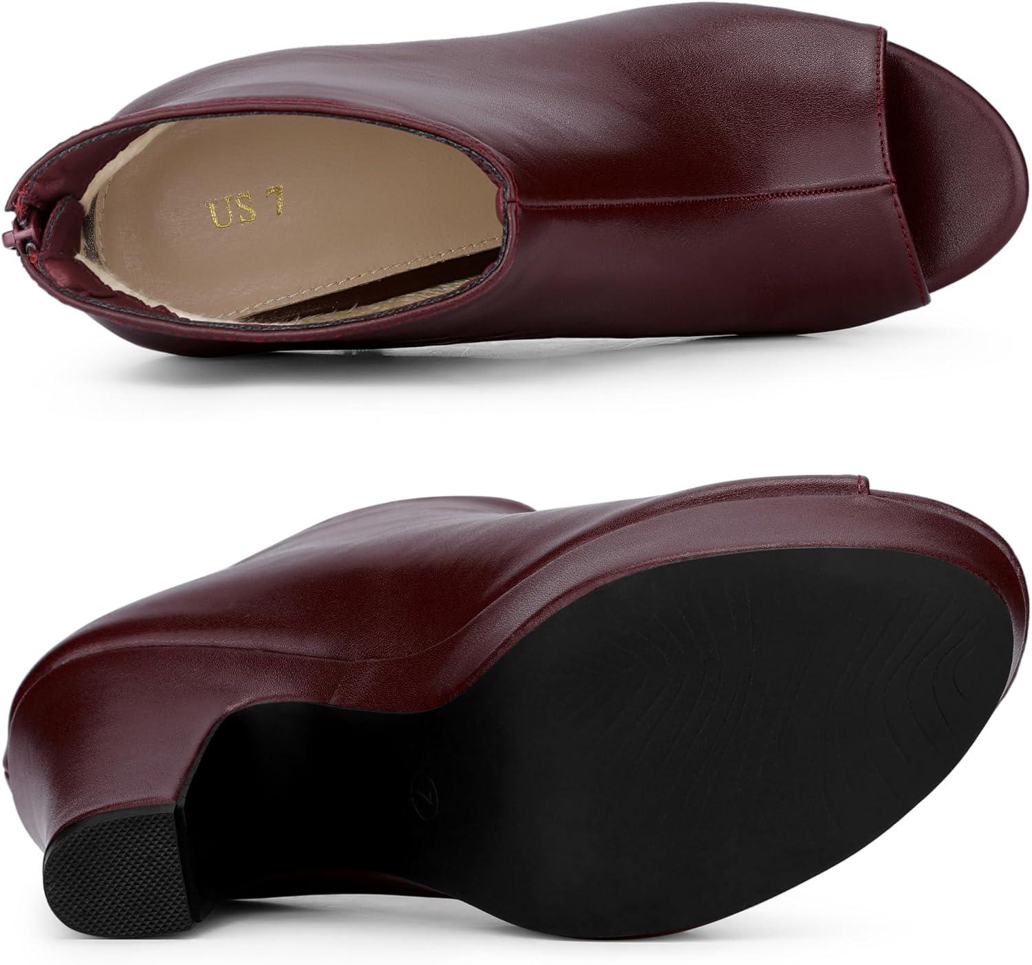 Allegra K Peep Toe Ankle Boots for Women Back Zip Chunky Heel Platform Boots(Burgundy)