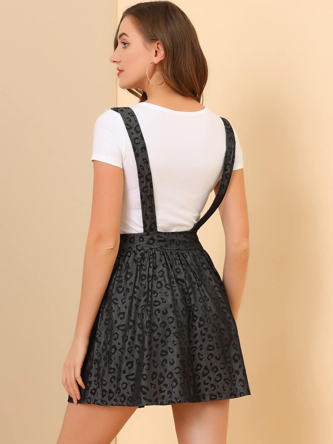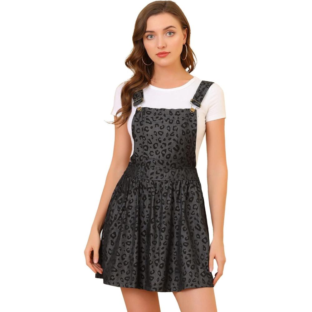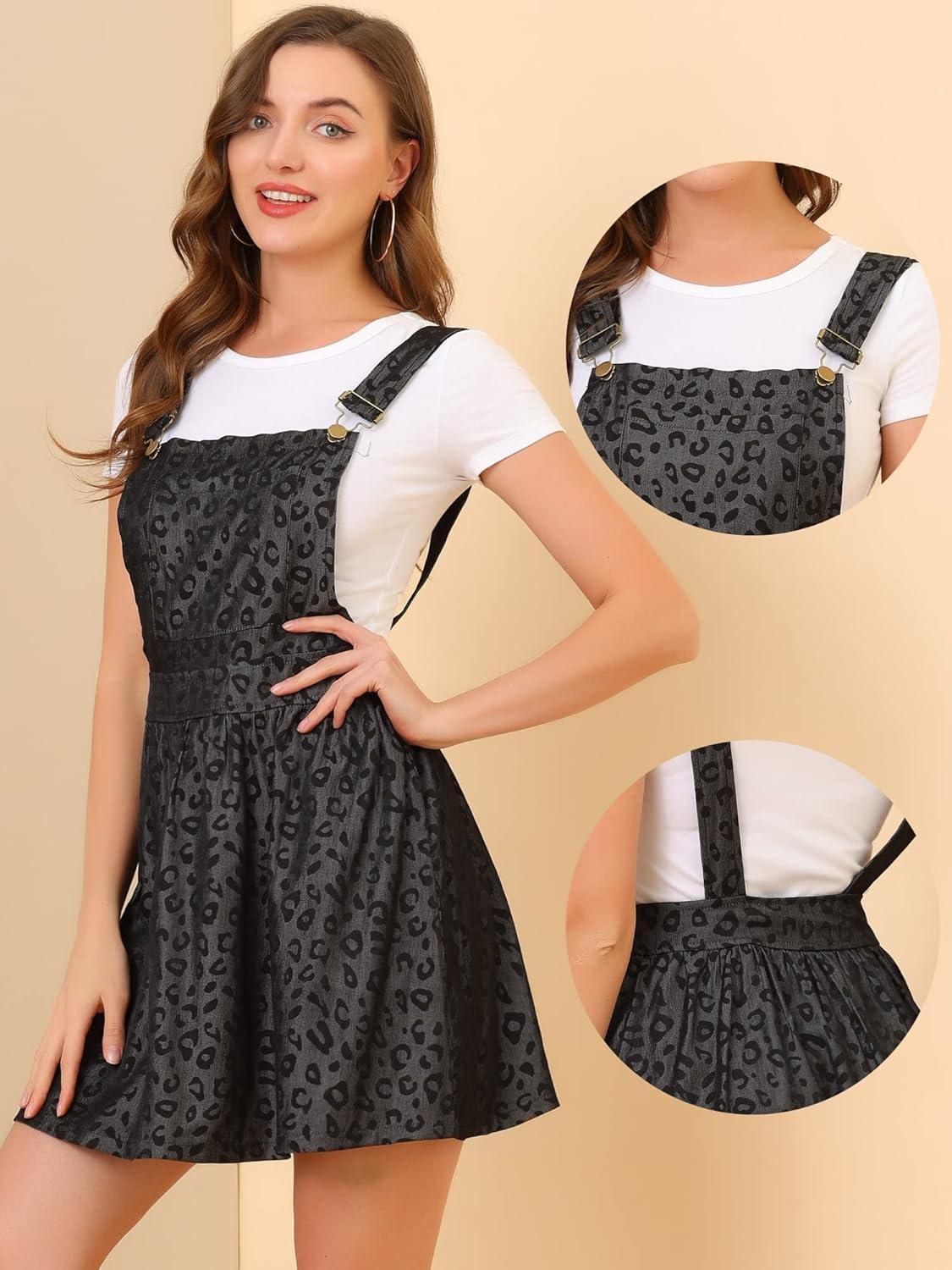 Allegra K Pinafore Dress for Women’s Adjustable Straps Printed Mini Chambray Bib Dress