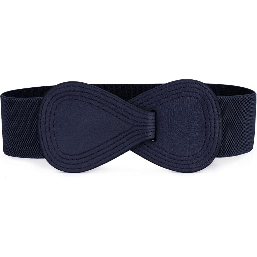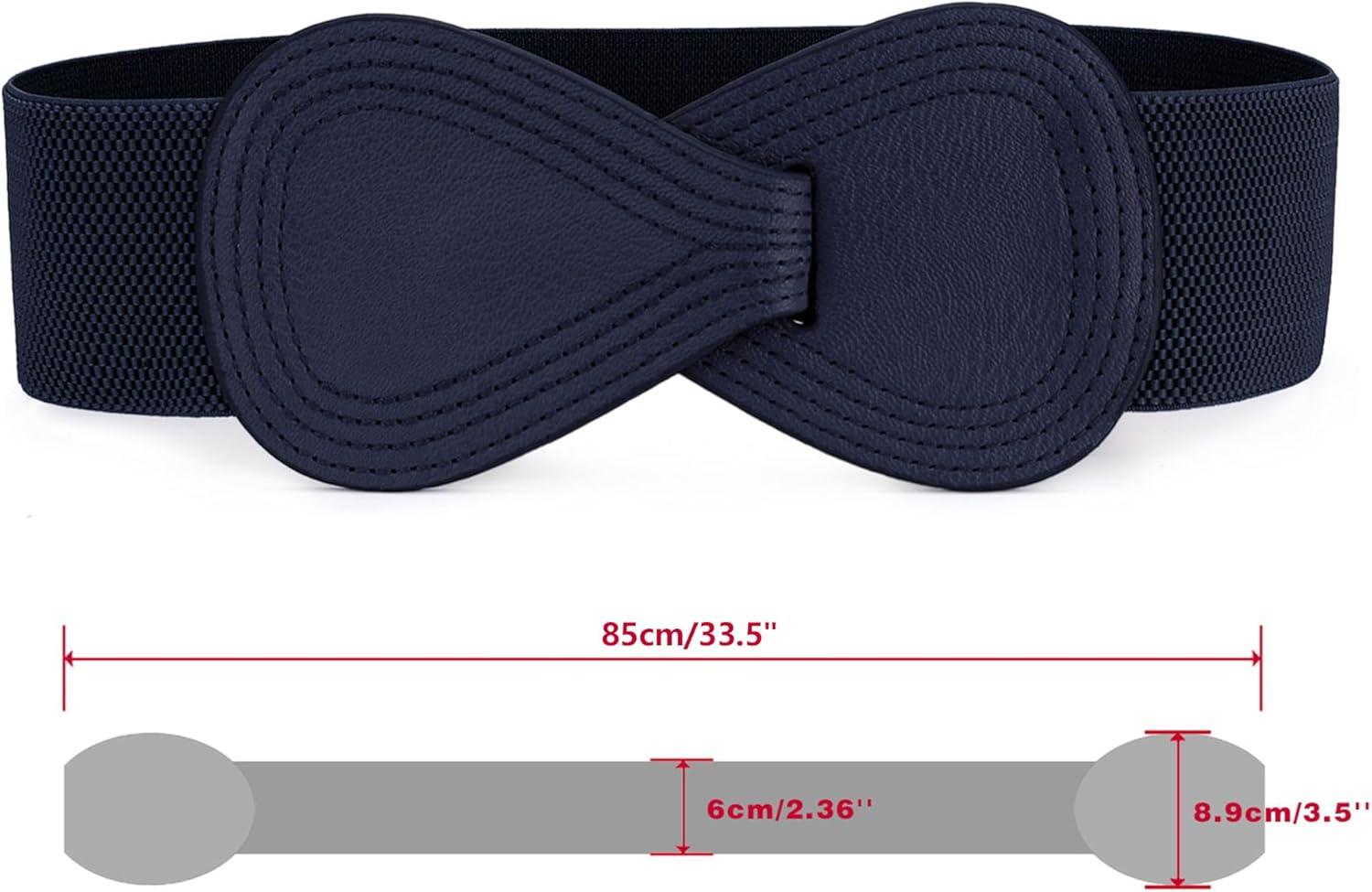 Allegra K Plus Size Interlock Buckle 8-shaped Faux Leather Elastic Belt Cinch Waistband for Lady(Dark Blue)