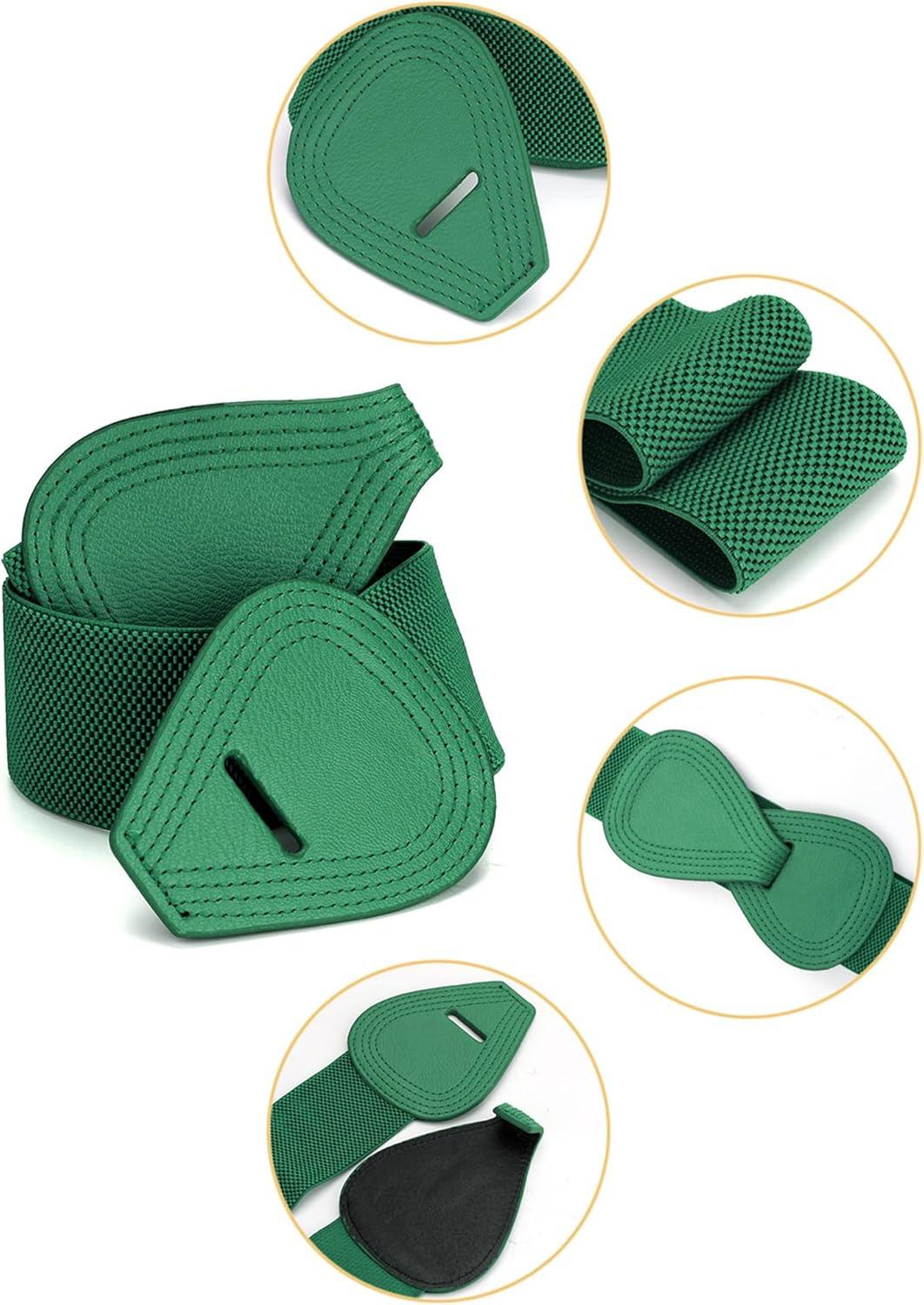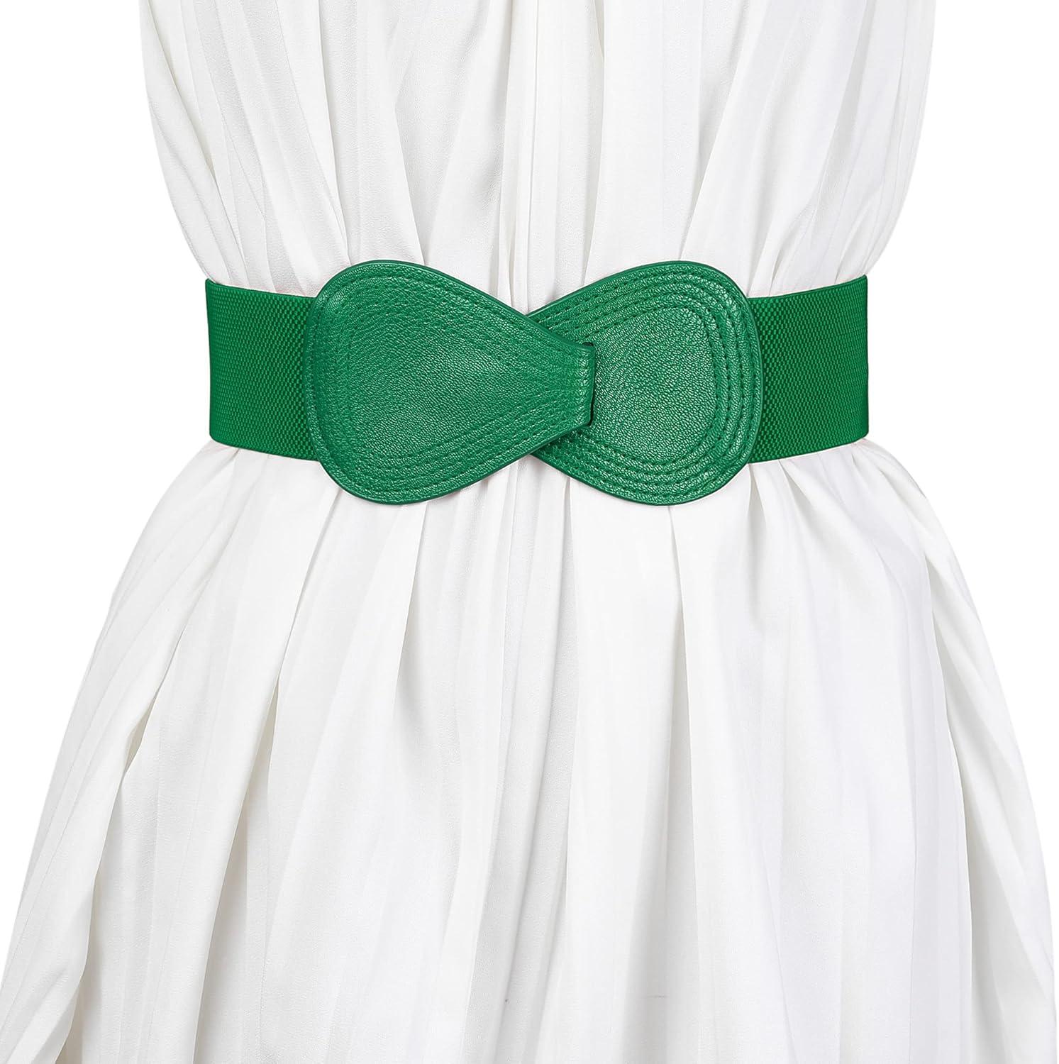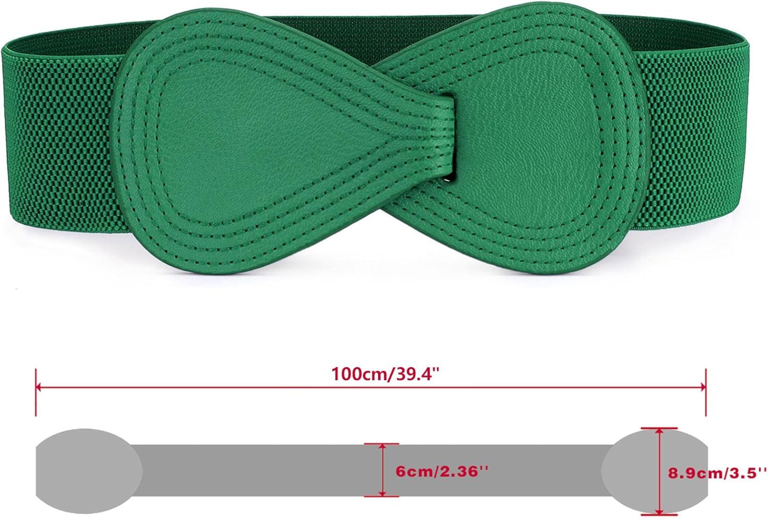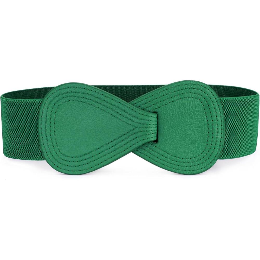 Allegra K Plus Size Interlock Buckle 8-shaped Faux Leather Elastic Belt Cinch Waistband for Lady(Green)