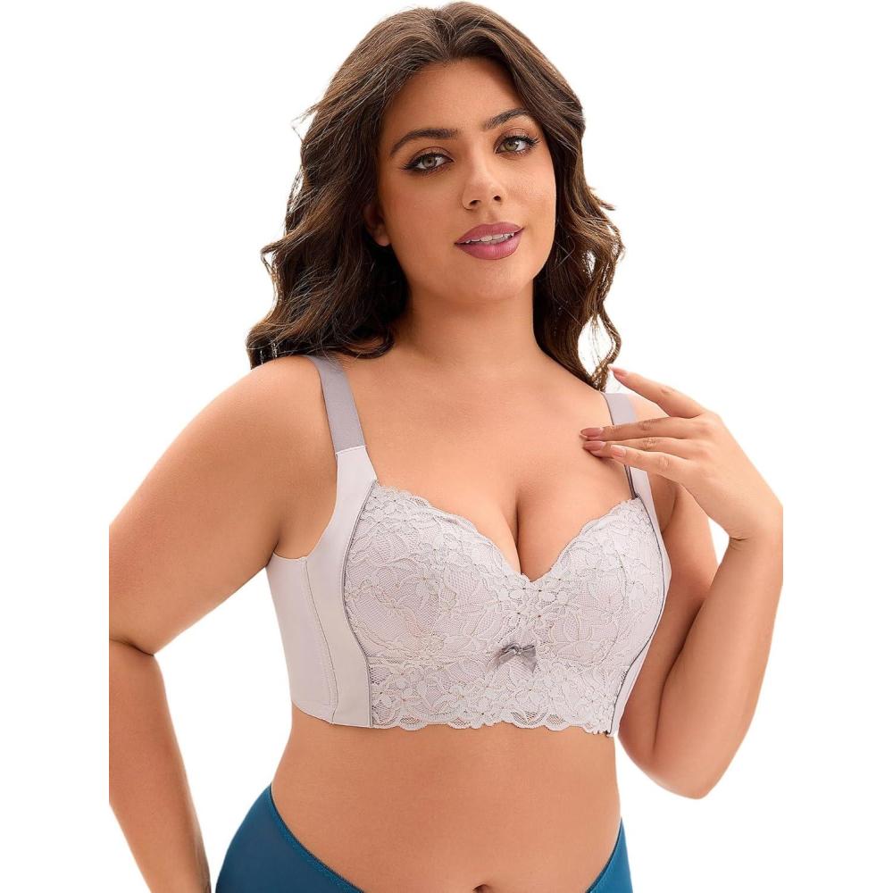 Lace cups add a touch of elegance, while the bow tie adds a touch of glamour. The V-neck and U-neckline back design adds a sense of fashion to the classic bralette style, while wide straps design effectively disperses shoulder pressure. With 5 hook-and-eye closures, it is easily adjustable straps to fit each individual body shape. Soft and breathable fabric keeps you comfort all day, providing ultimate cool and dry.