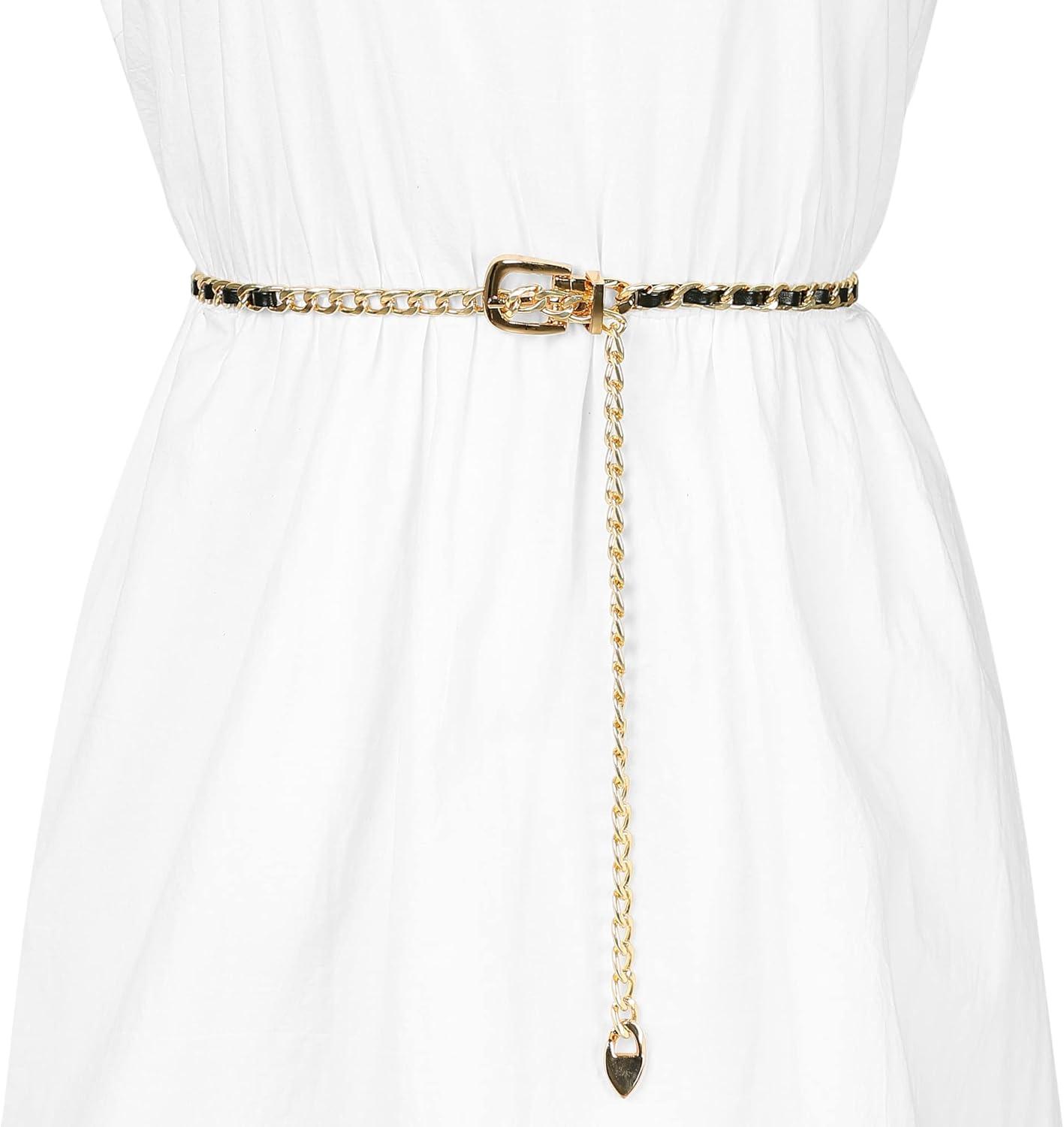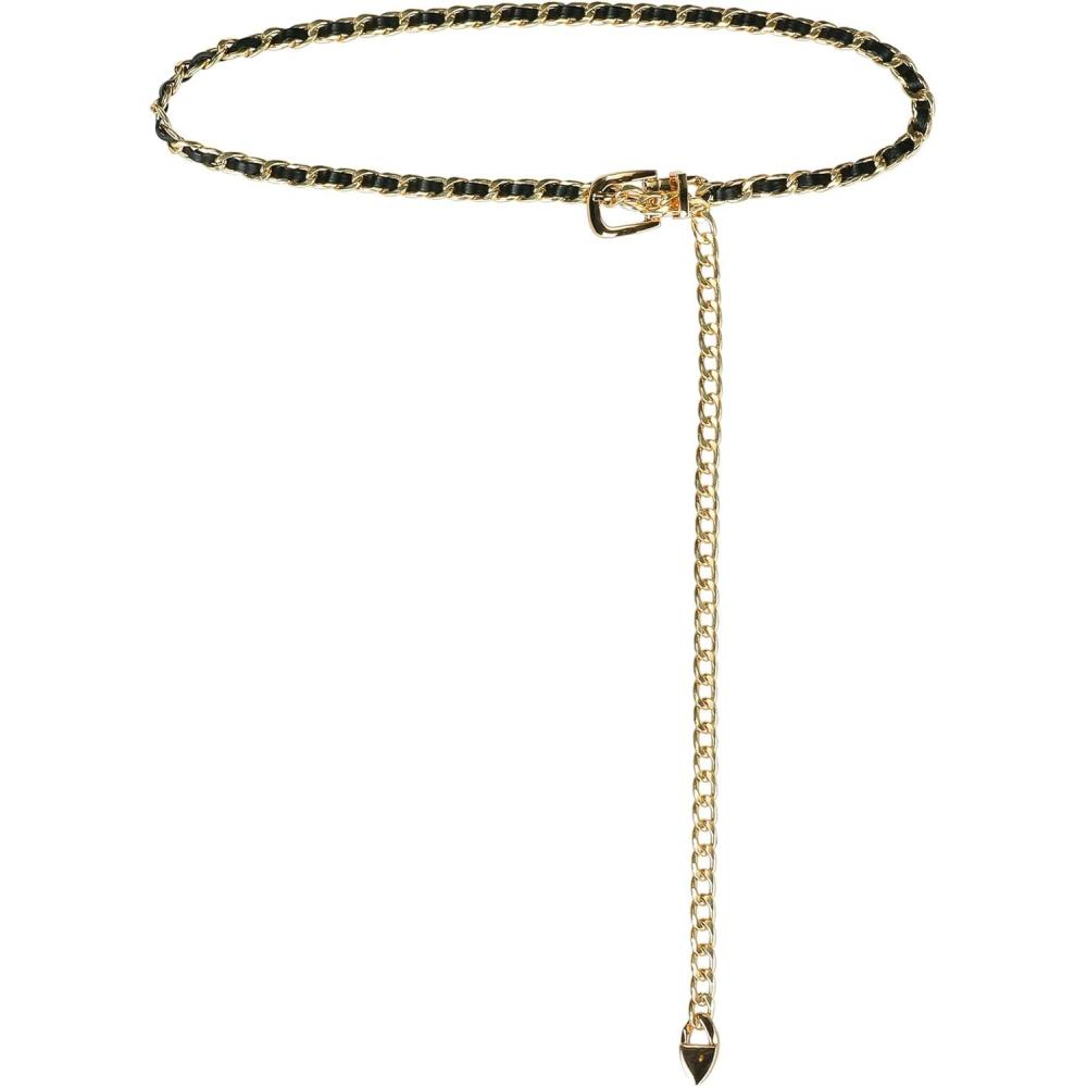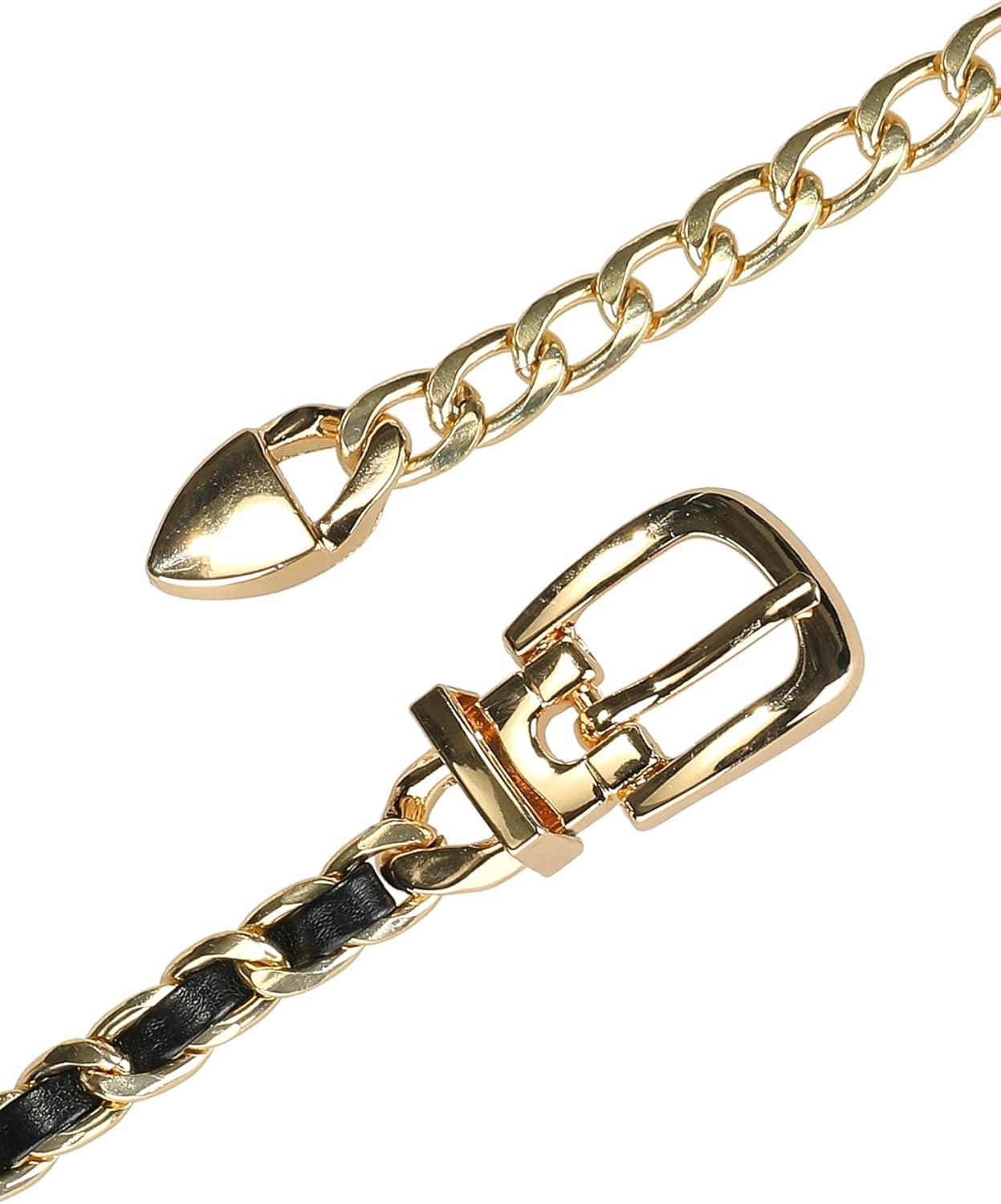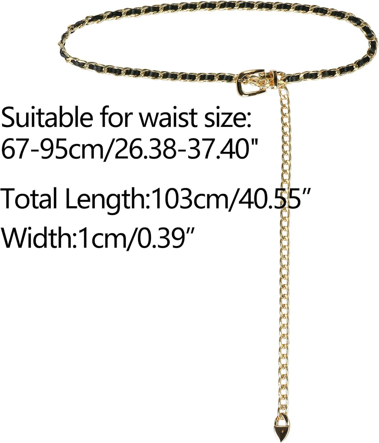 Allegra K Rhinestone Belt for Women Sparkle Chain Plus Size Waist Belt for Jeans Tunic Dresses(Black Gold)
