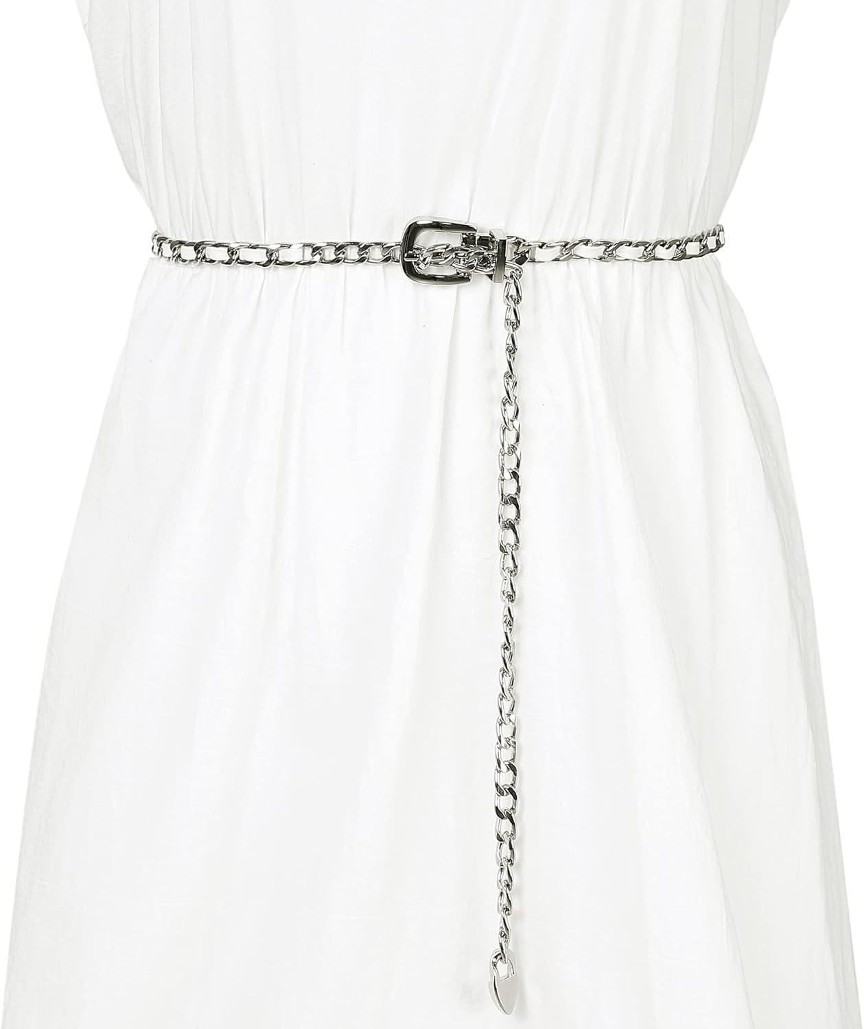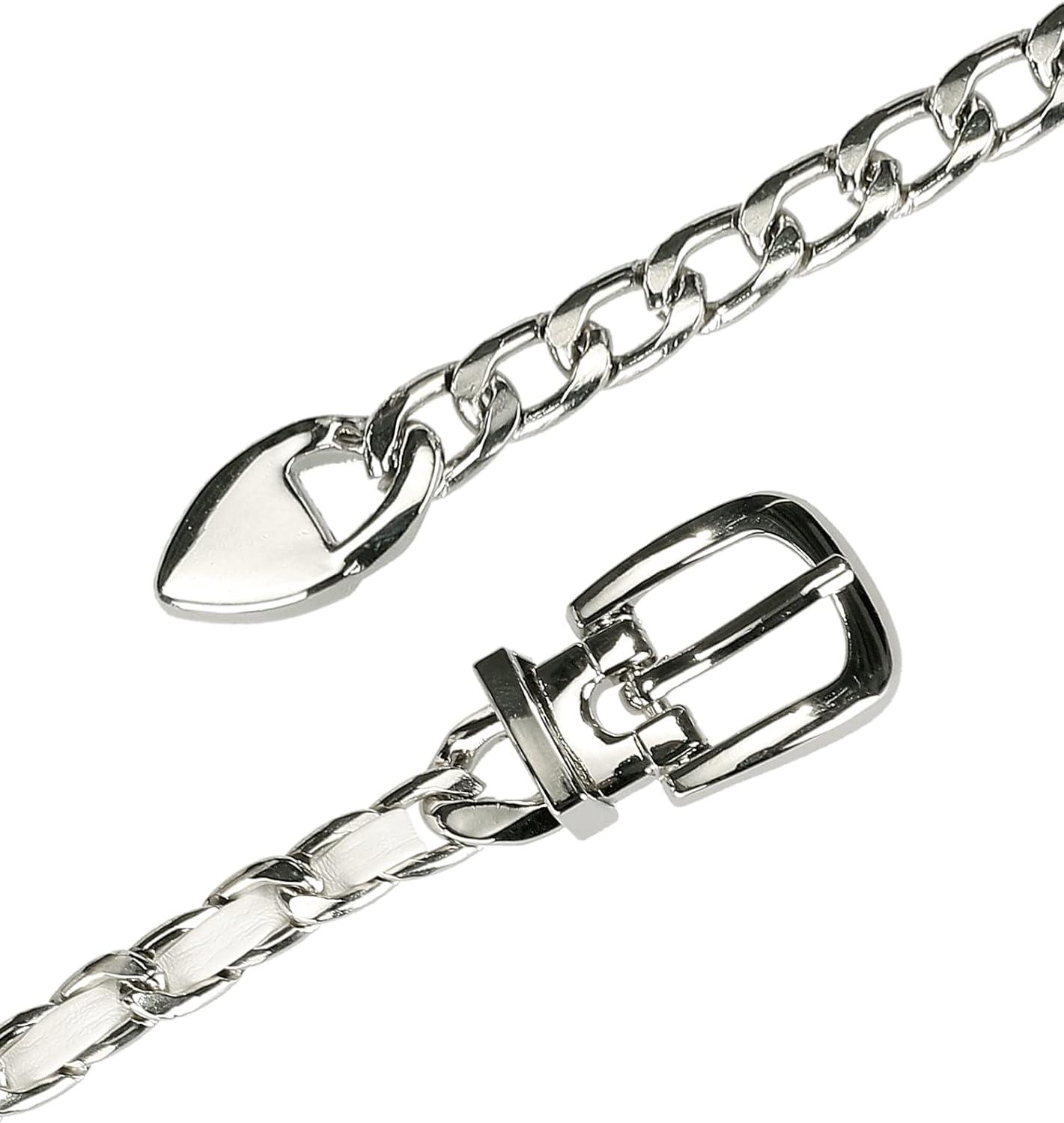 Allegra K Rhinestone Belt for Women Sparkle Chain Plus Size Waist Belt for Jeans Tunic Dresses(White Silver)