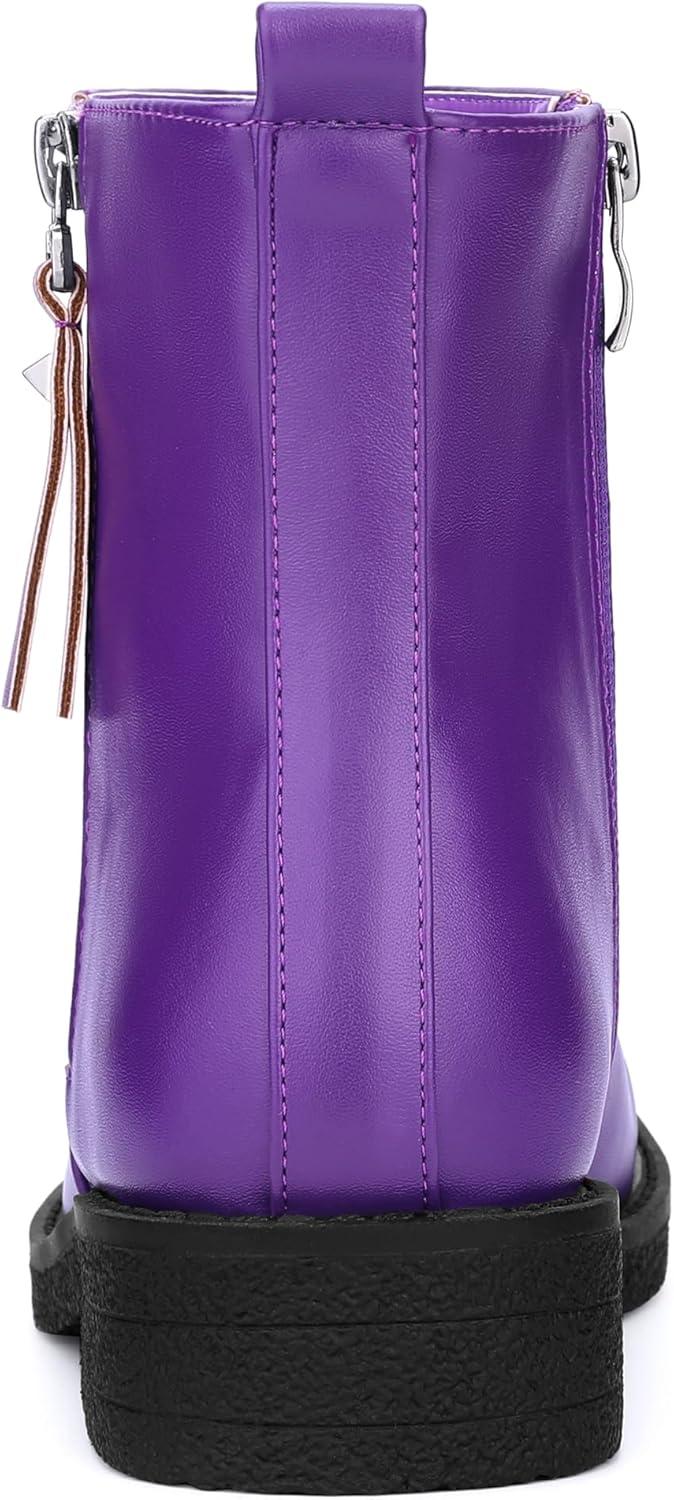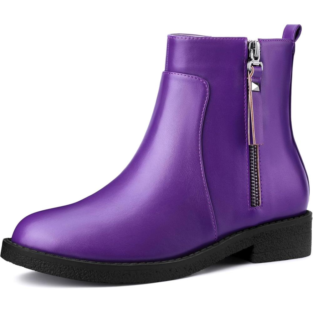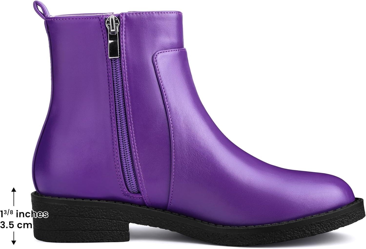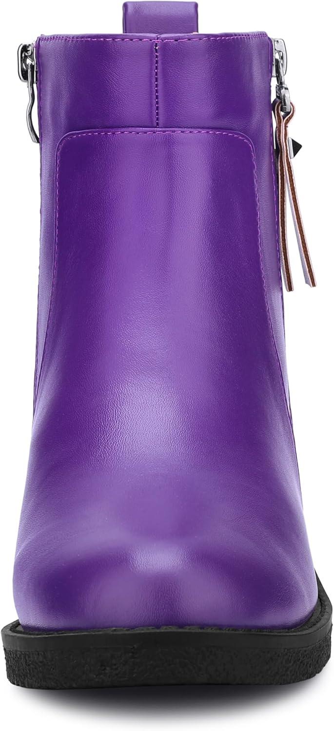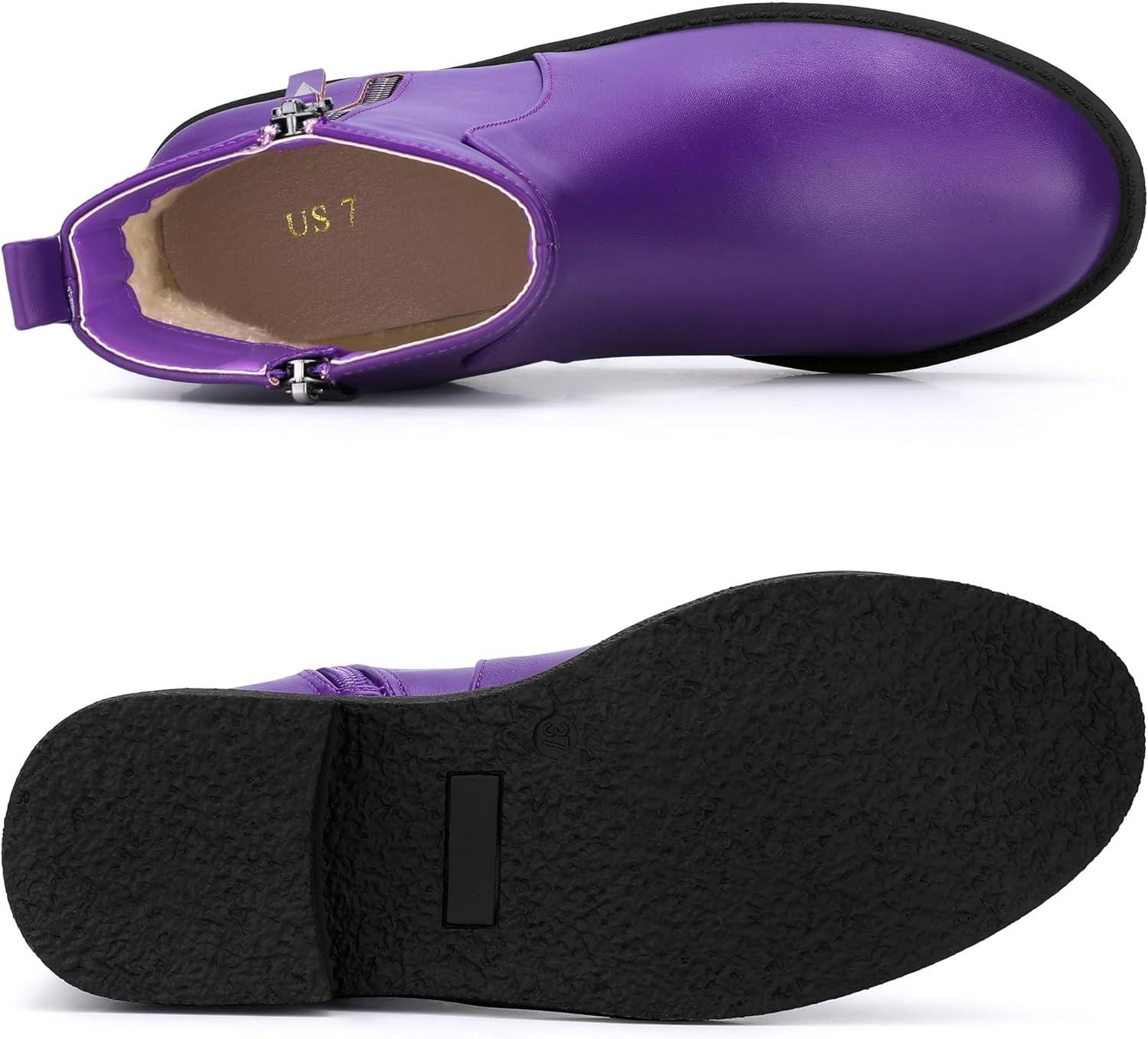 Allegra K Round Toe Zipper Chunky Low Heel Ankle Boots for Women(Purple)