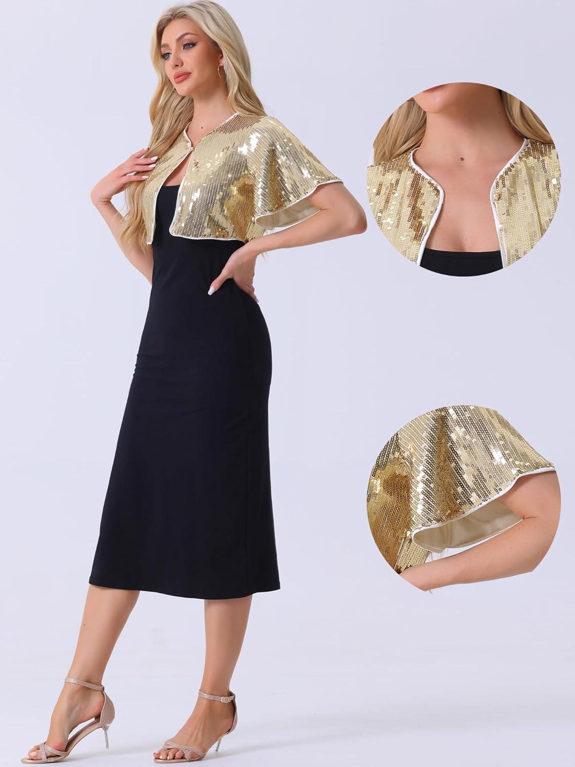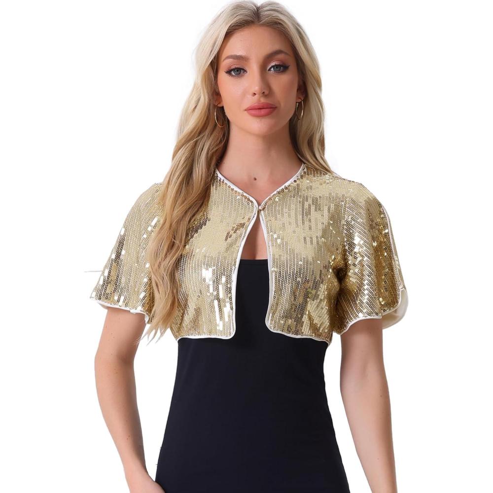 imageAllegra K Sequin Bolero for Womens Halloween Sparkly Crop Glitter Formal Shrug for Evening DressesLight Gold