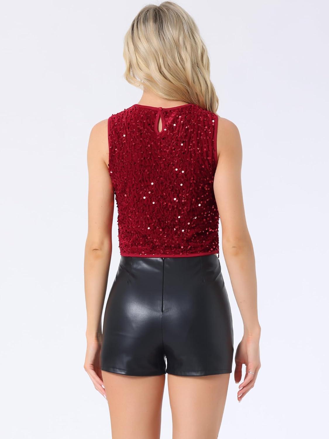 imageAllegra K Sequin Tops for Womens Sparkle Glitter Sleeveless Club Party Nightout Crop Tank TopRose Red