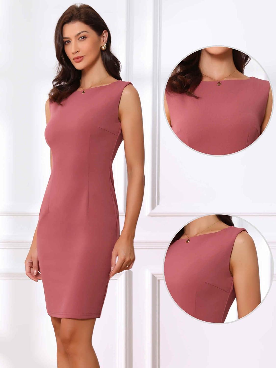 Allegra K Sheath Dress for Women’s Business Teacher Sleeveless Boat Neck Professional Office Dresses(Dark Red)