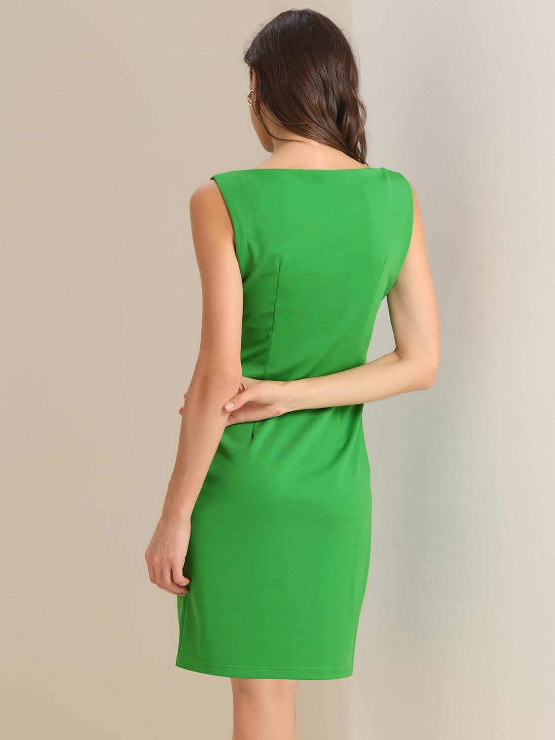 Allegra K Sheath Dress for Women’s Business Teacher Sleeveless Boat Neck Professional Office Dresses(Grass Green)