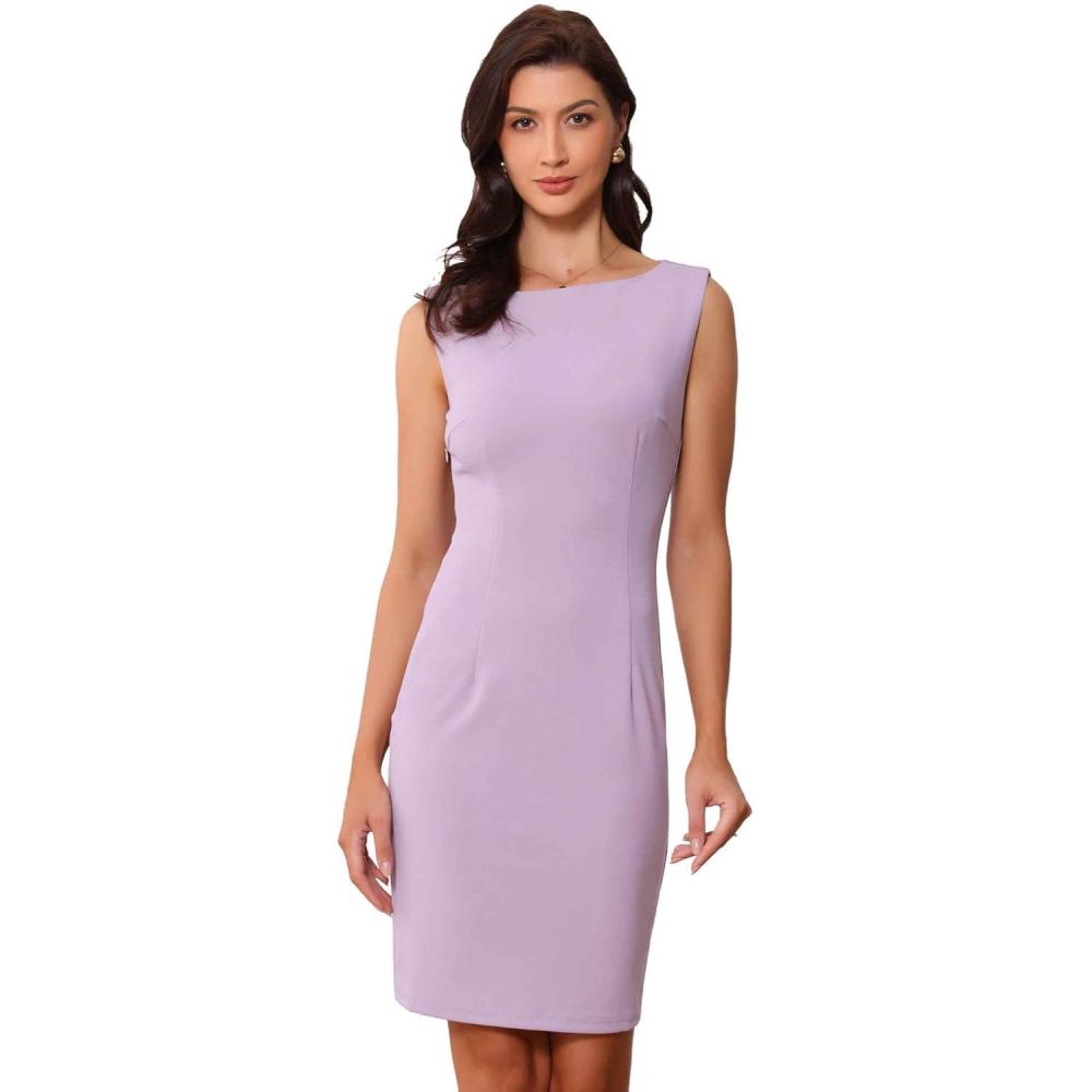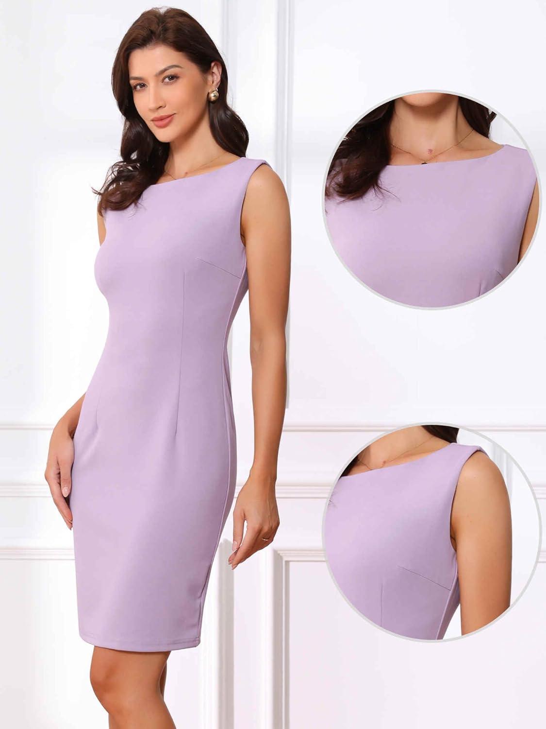 Allegra K Sheath Dress for Women’s Business Teacher Sleeveless Boat Neck Professional Office Dresses(Light Purple)