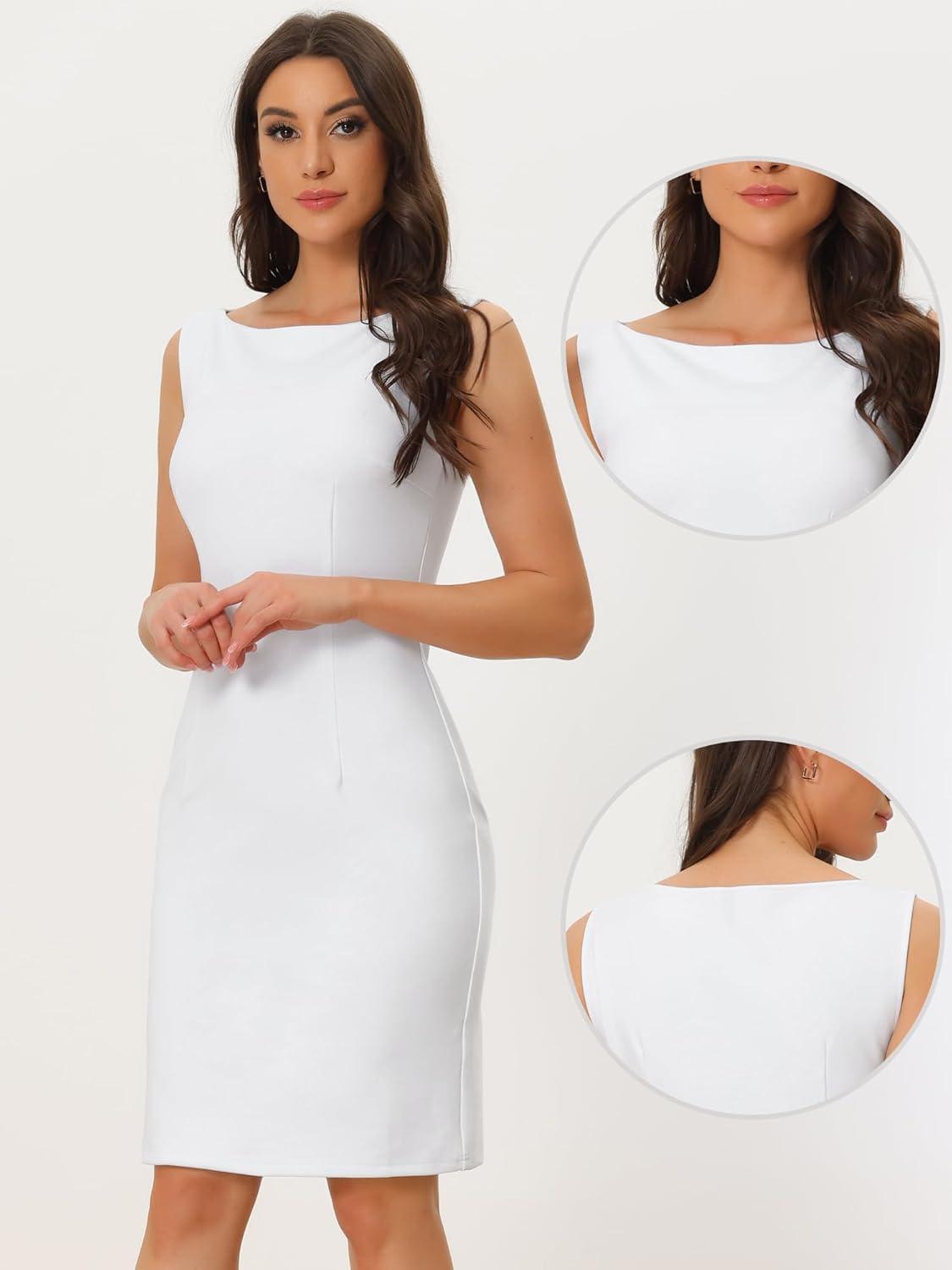 imageAllegra K Sheath Dress for Womens Business Teacher Sleeveless Boat Neck Professional Office DressesWhite