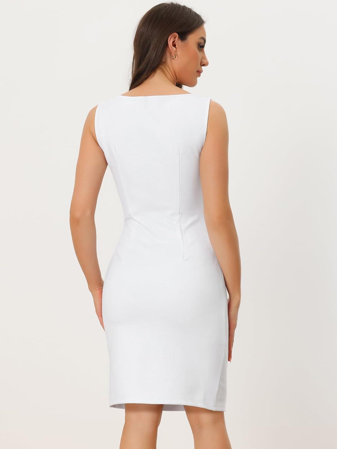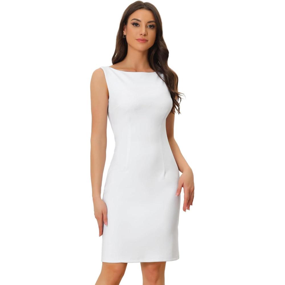 Allegra K Sheath Dress for Women’s Business Teacher Sleeveless Boat Neck Professional Office Dresses(White)