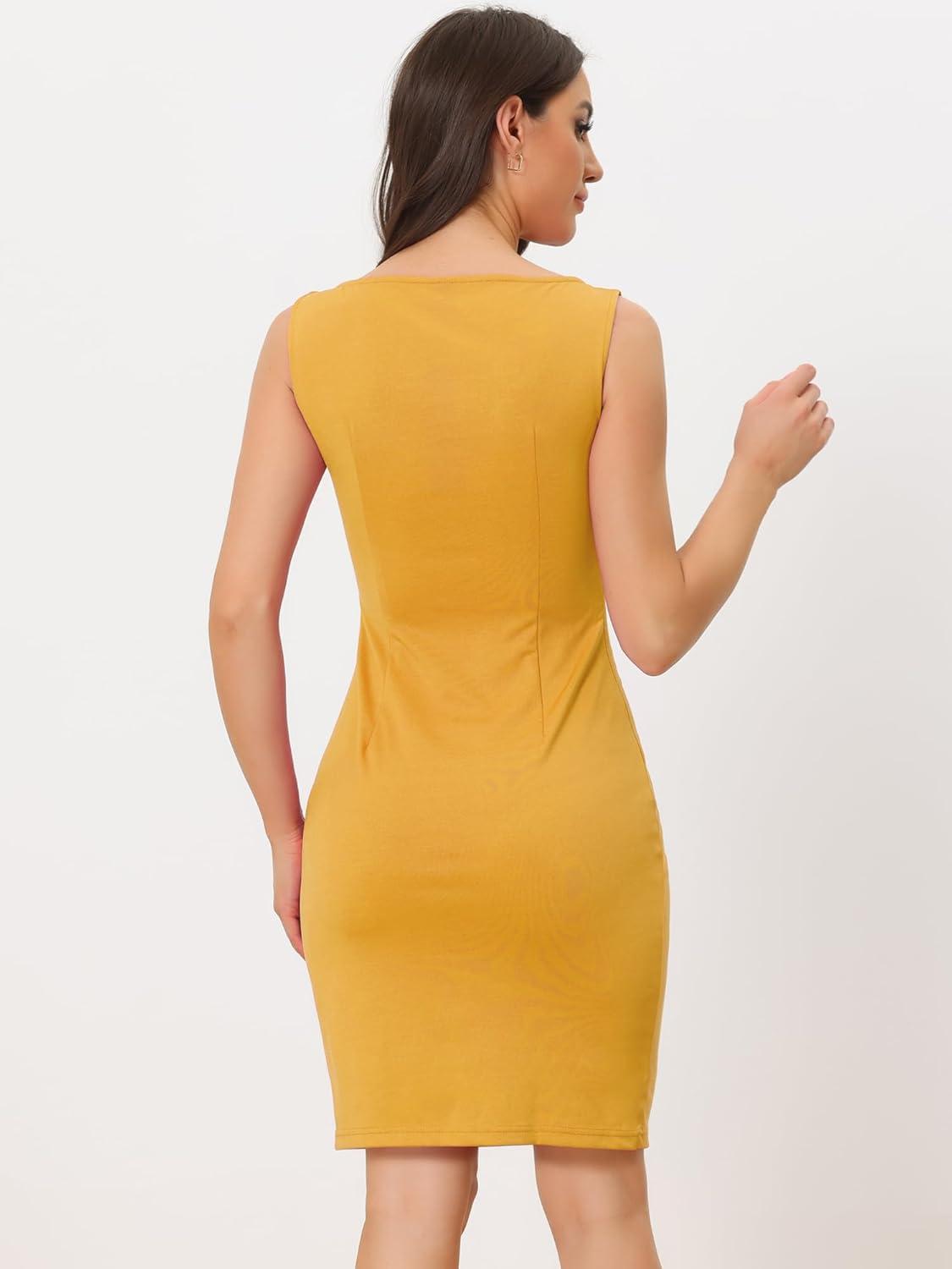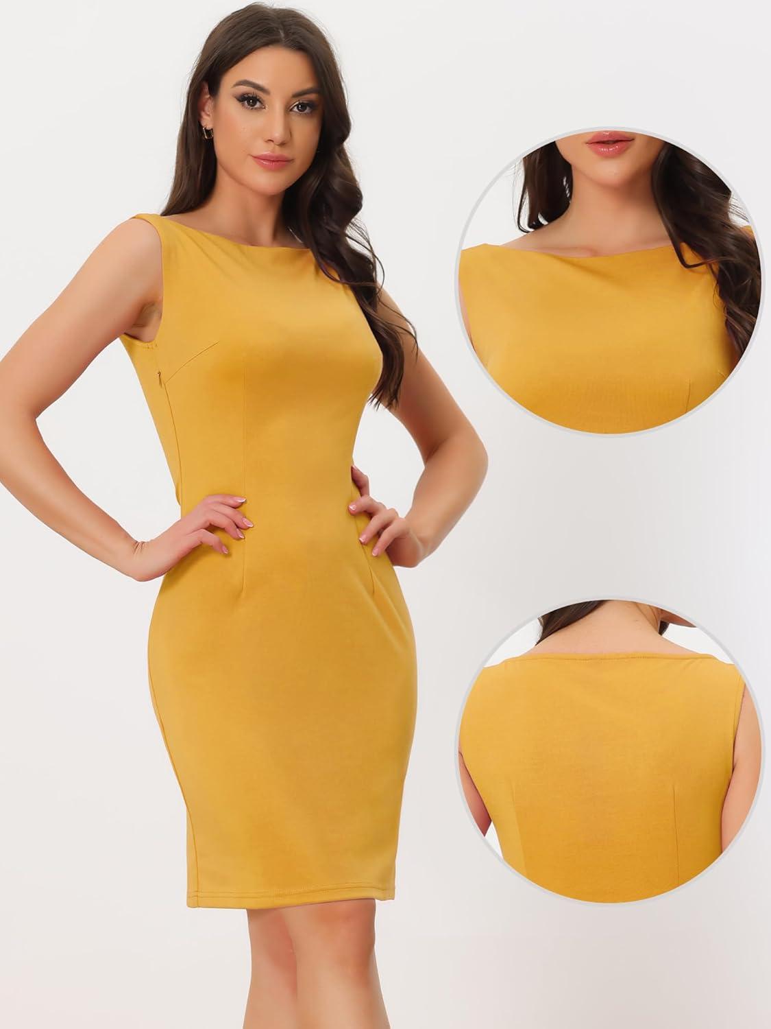 imageAllegra K Sheath Dress for Womens Business Teacher Sleeveless Boat Neck Professional Office DressesYellow