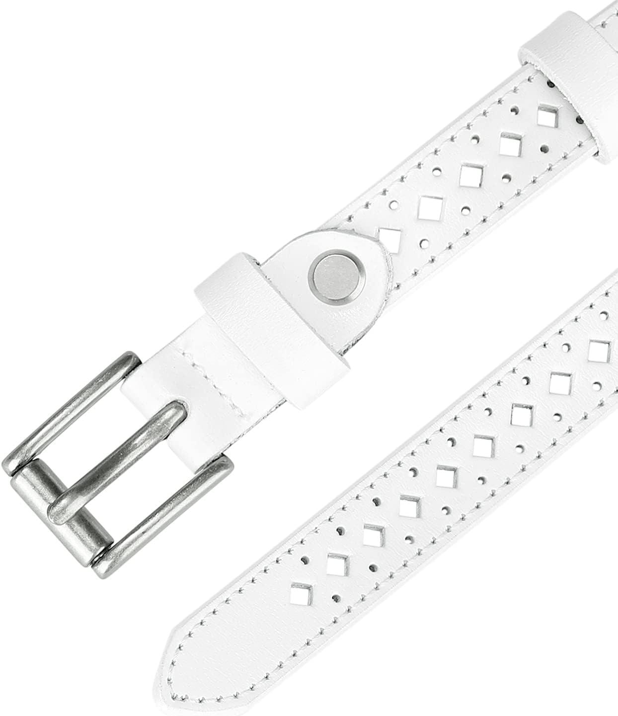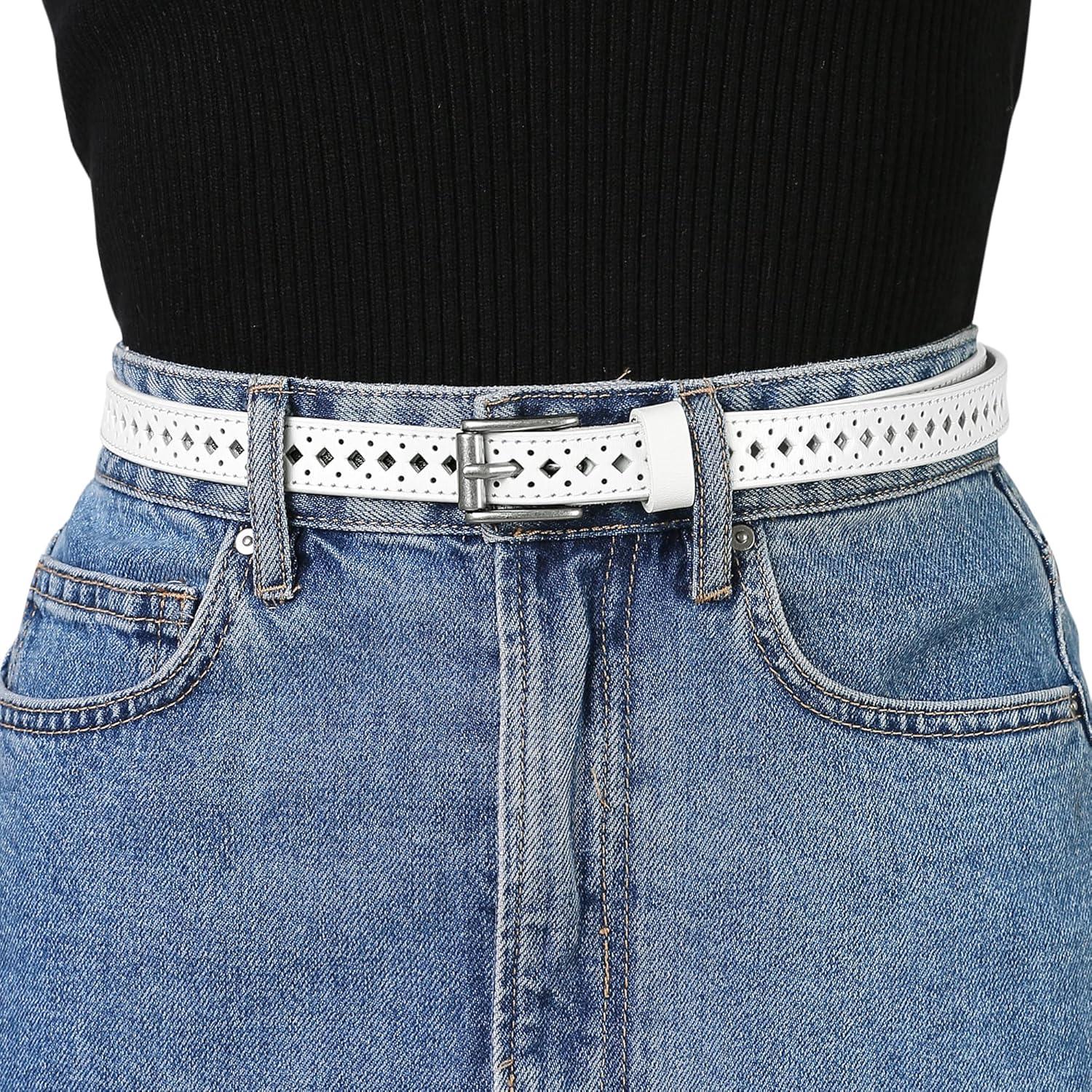 Allegra K Skinny Leather Belt for Women Hollow-out Thin Waist Belts for Jeans Dress 0.7 Inches Width(White)
