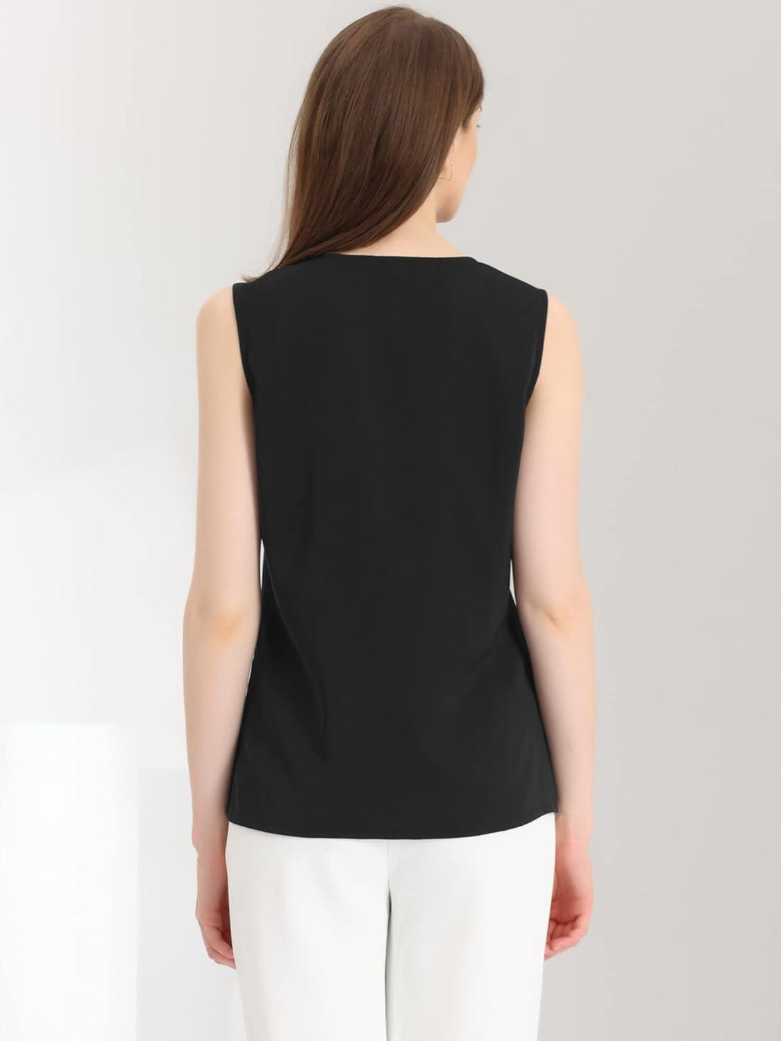 Allegra K Sleeveless Work Top for Women’s Elegant Pleated V Neck Blouse Shirt Tank Top(Black)