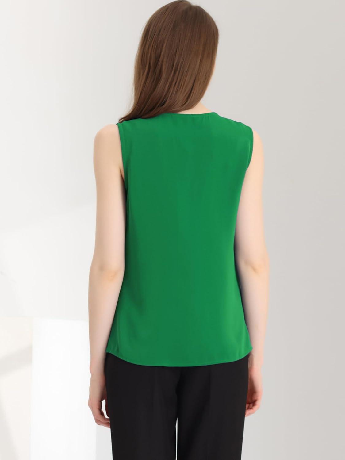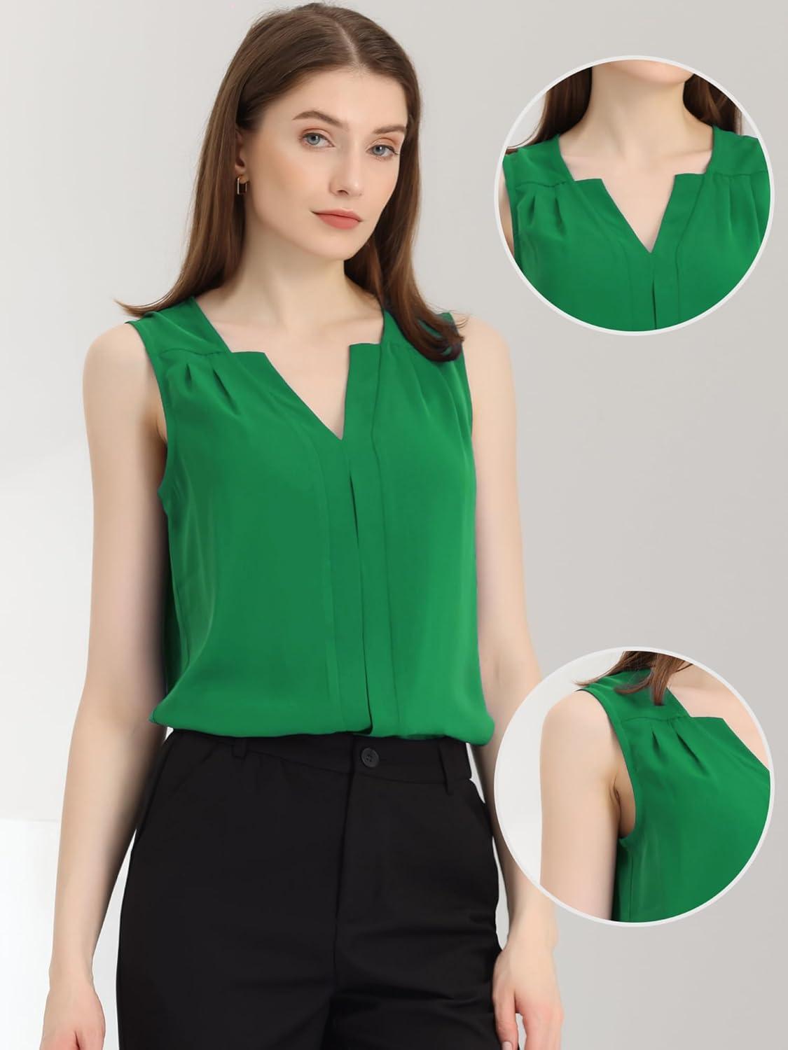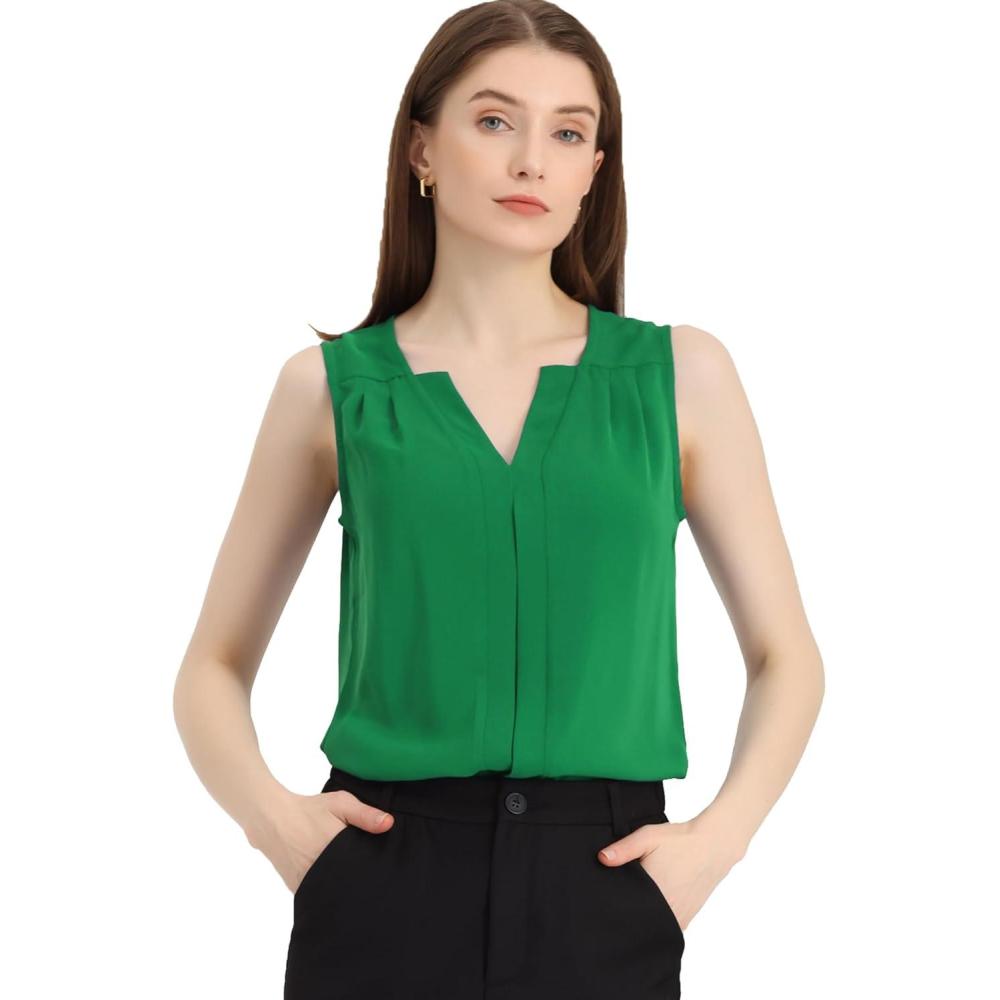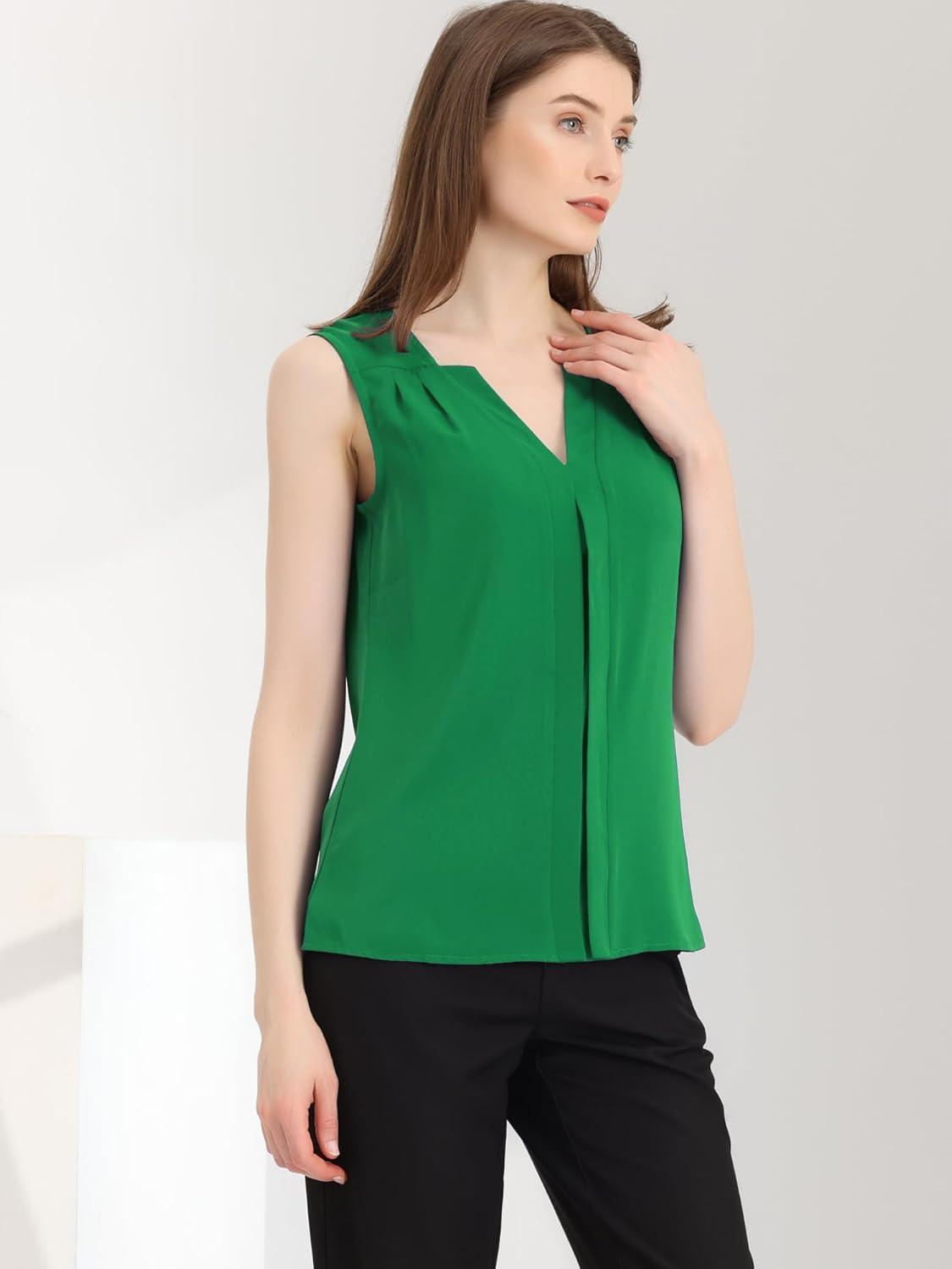 imageAllegra K Sleeveless Work Top for Womens Elegant Pleated V Neck Blouse Shirt Tank TopGreen