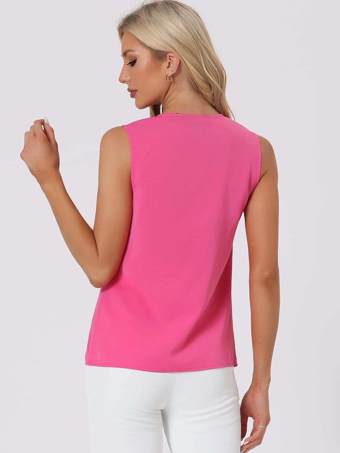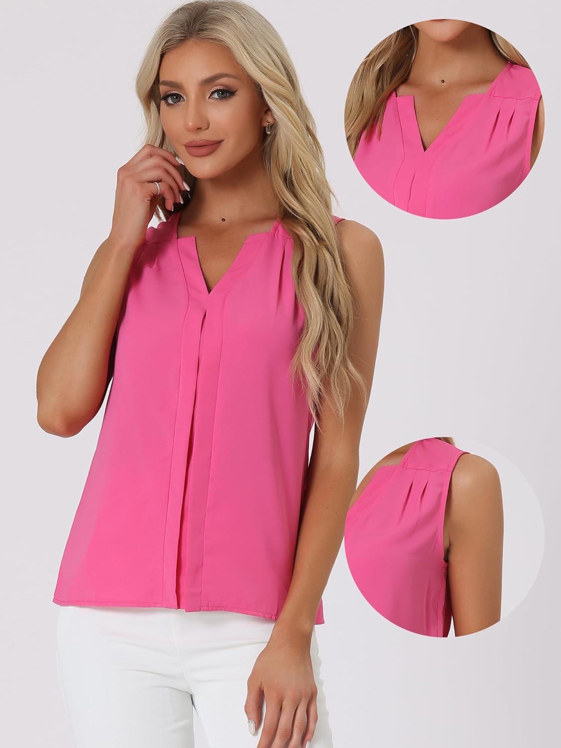 imageAllegra K Sleeveless Work Top for Womens Elegant Pleated V Neck Blouse Shirt Tank TopHot Pink