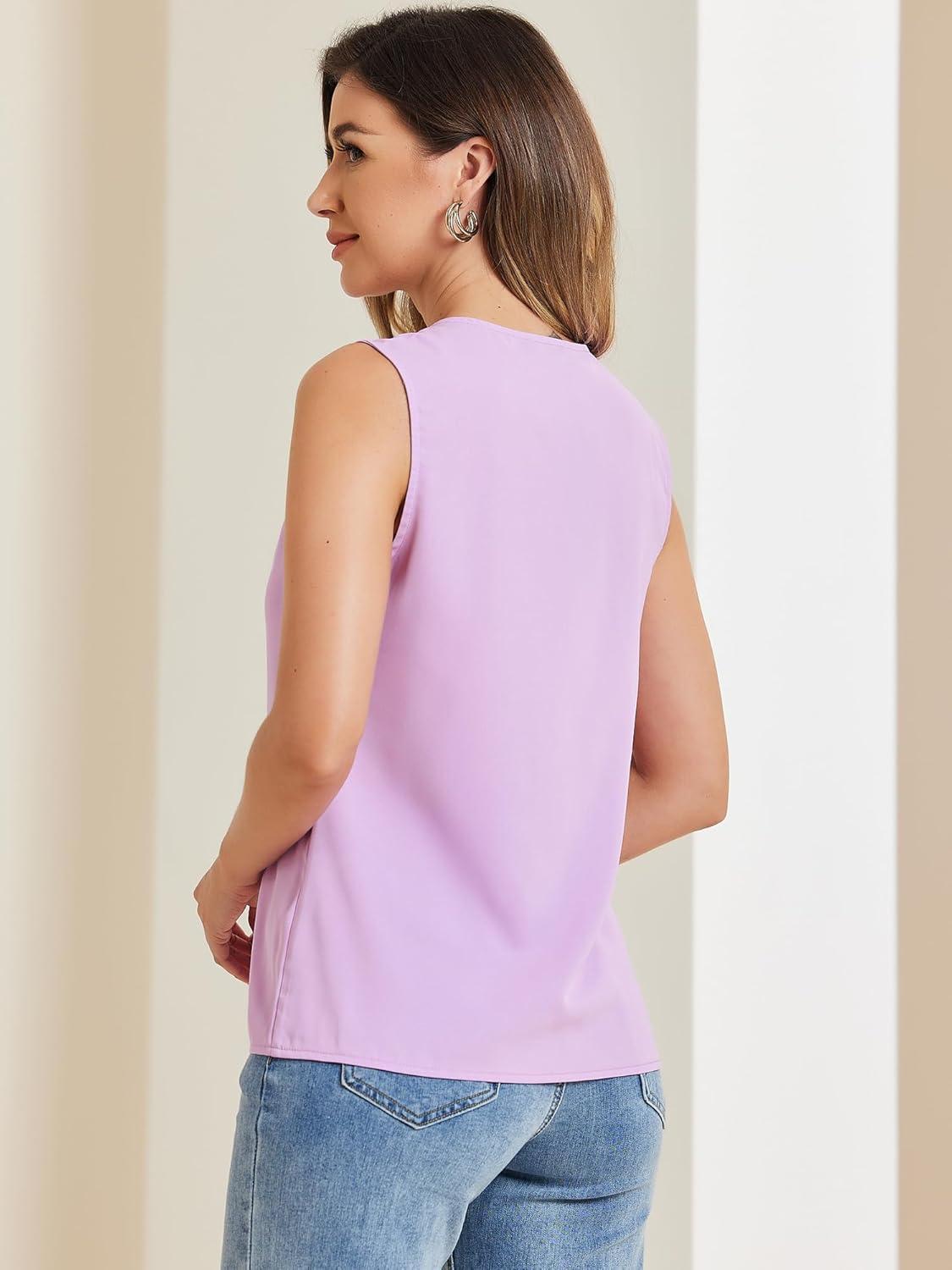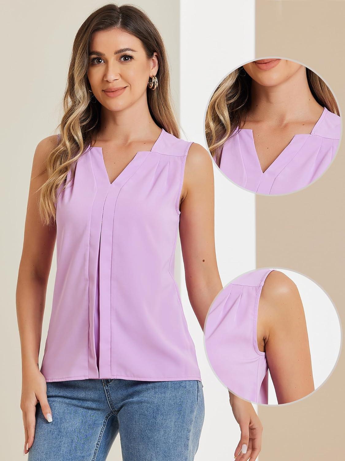 Allegra K Sleeveless Work Top for Women’s Elegant Pleated V Neck Blouse Shirt Tank Top(Lilac)