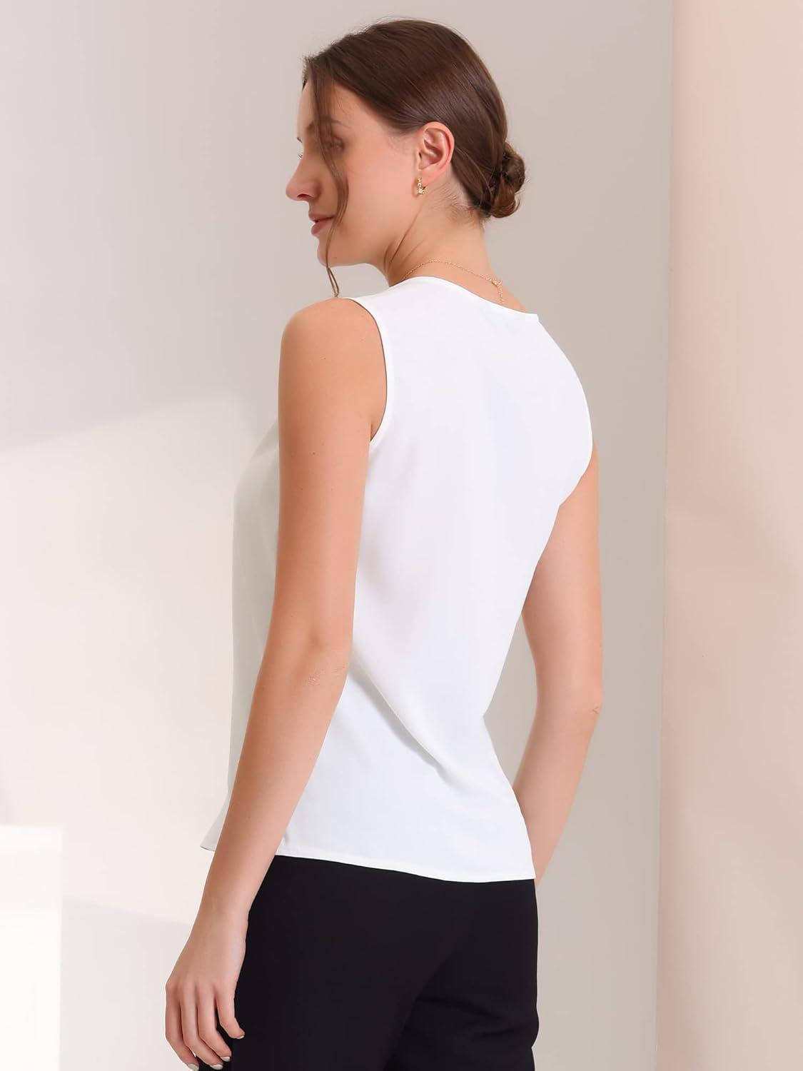 imageAllegra K Sleeveless Work Top for Womens Elegant Pleated V Neck Blouse Shirt Tank TopWhite