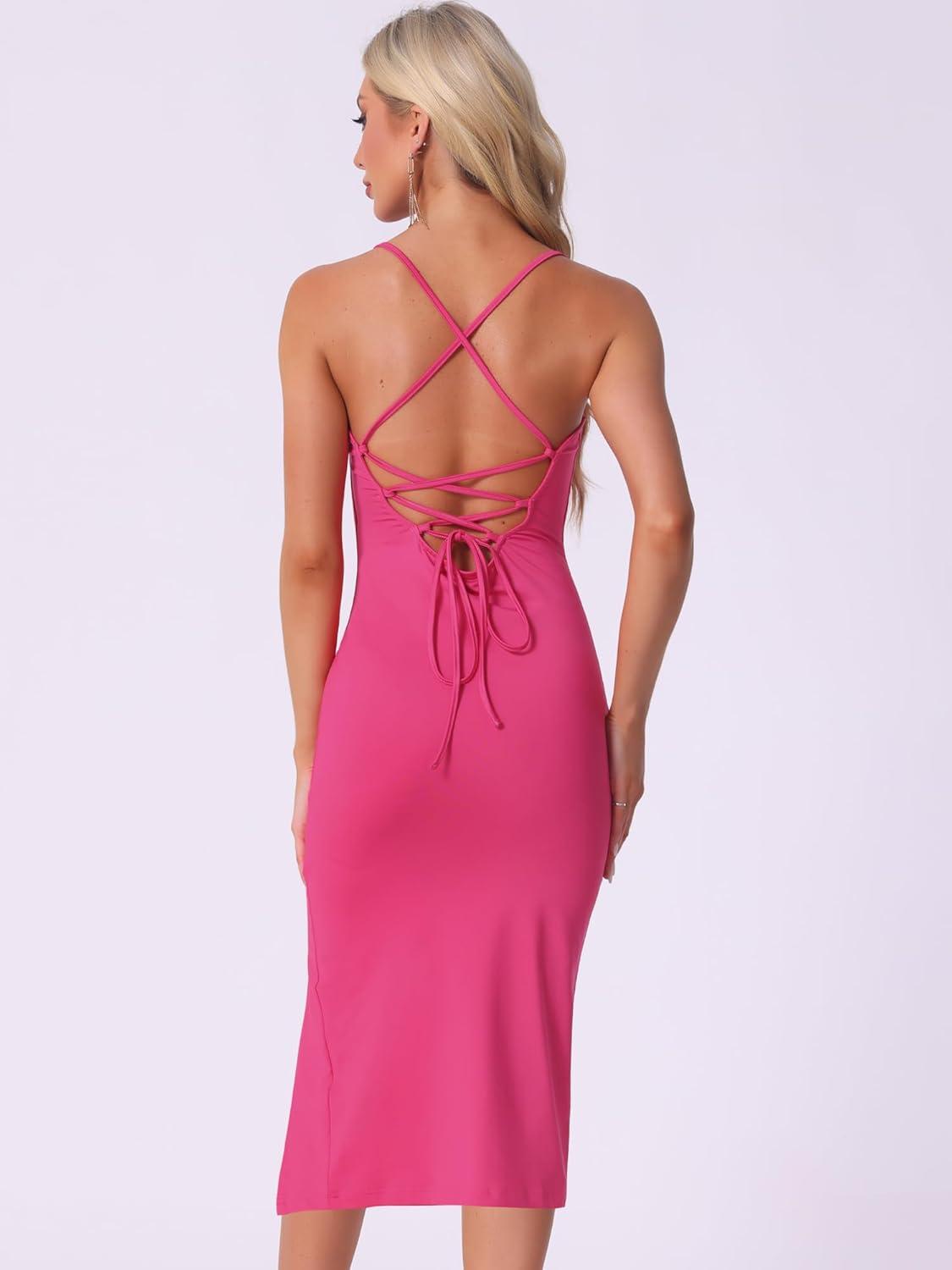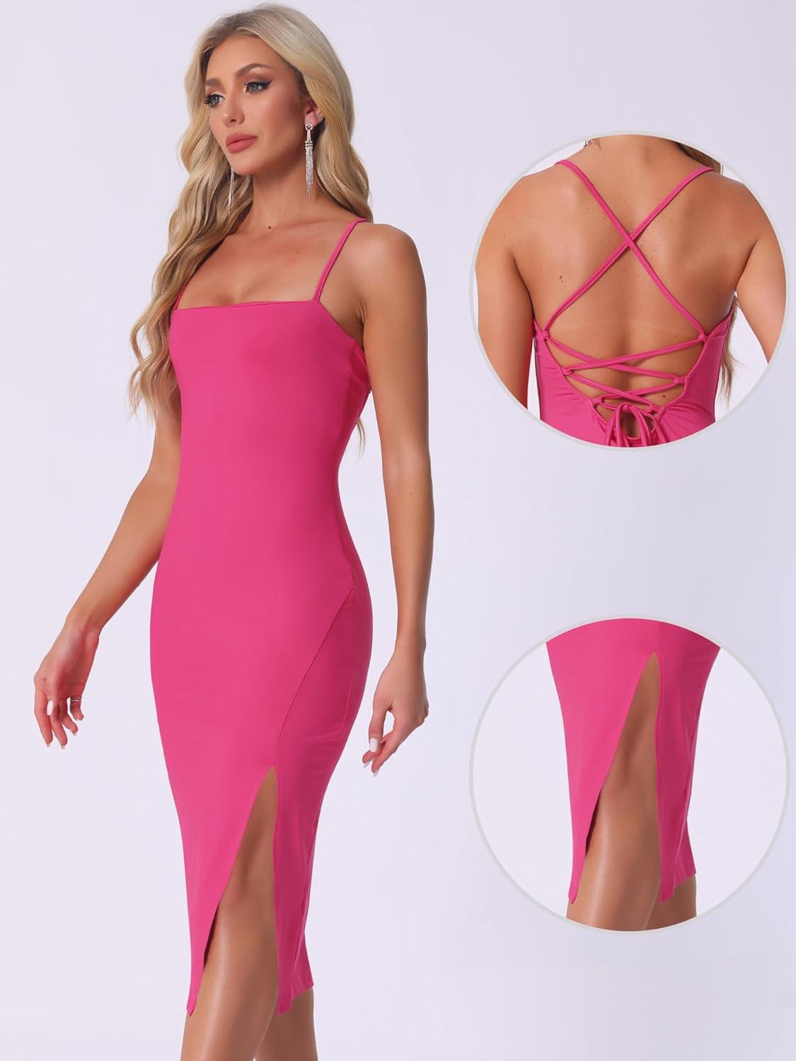 Allegra K Spaghetti Strap Dress for Women's Slim Fit Sleeveless Split Bodycon Cocktail Party Dress(Hot Pink)