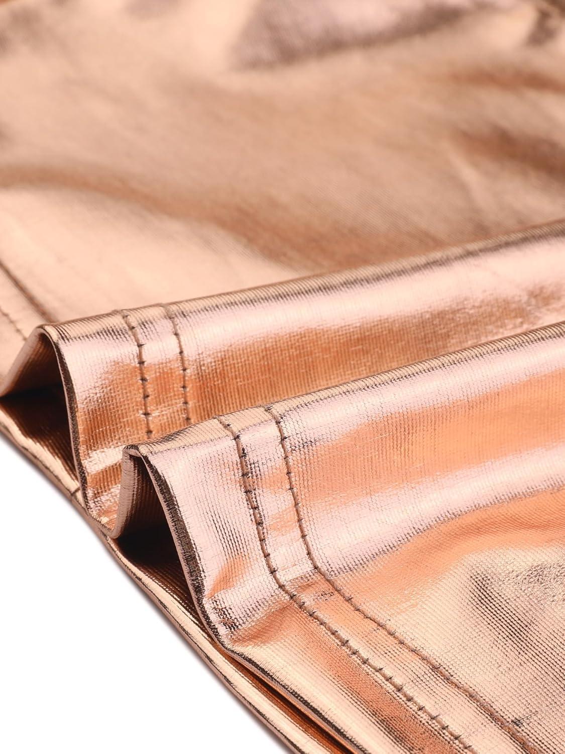 Allegra K Sparkle Tops for Women’s Halloween Short Sleeve Mock Neck Party Metallic Crop Top(Champagne)