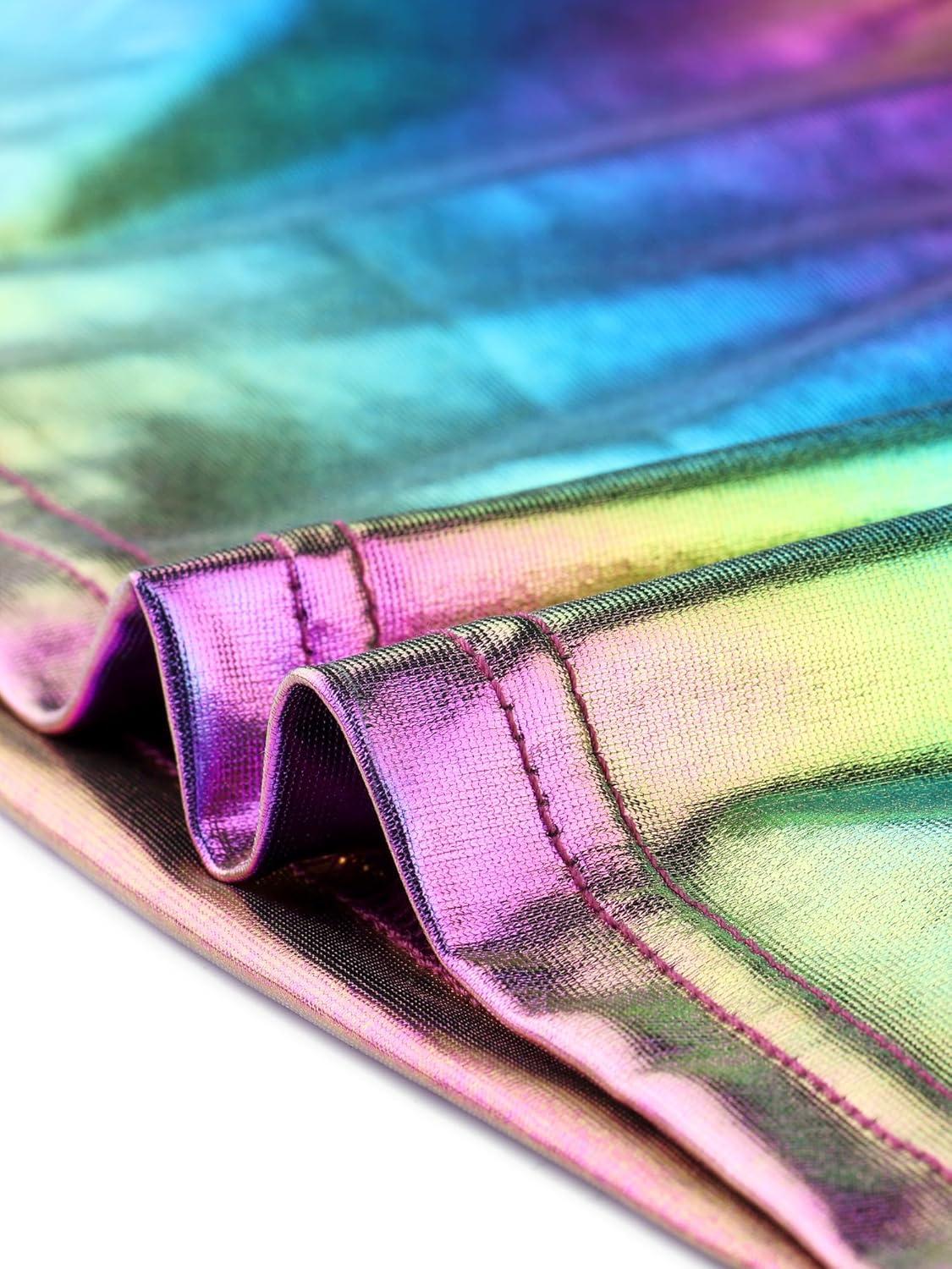 Allegra K Sparkle Tops for Women's Halloween Short Sleeve Mock Neck Party Metallic Crop Top(Multicolor)