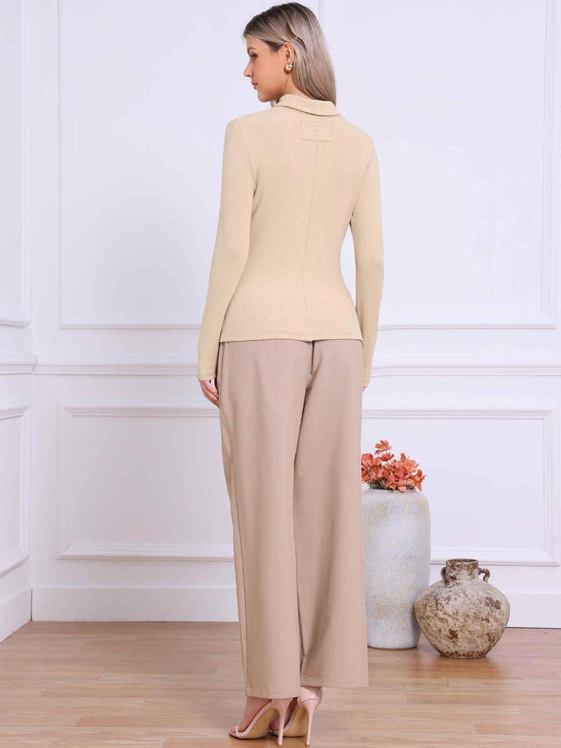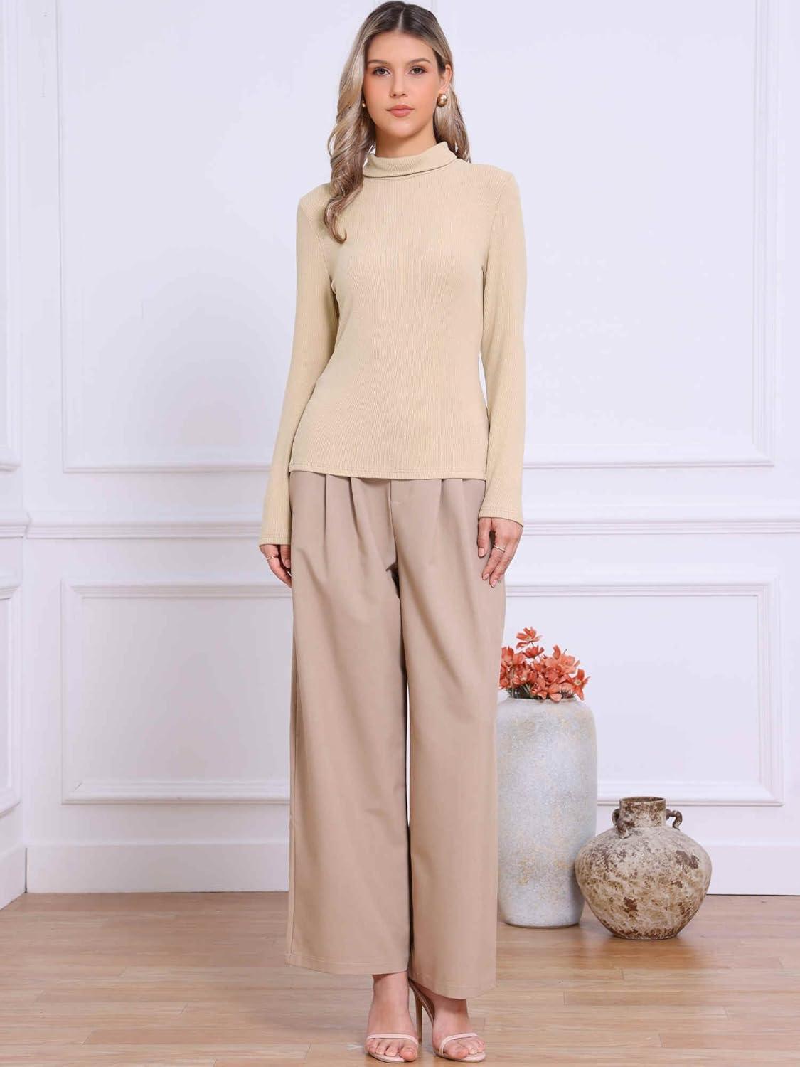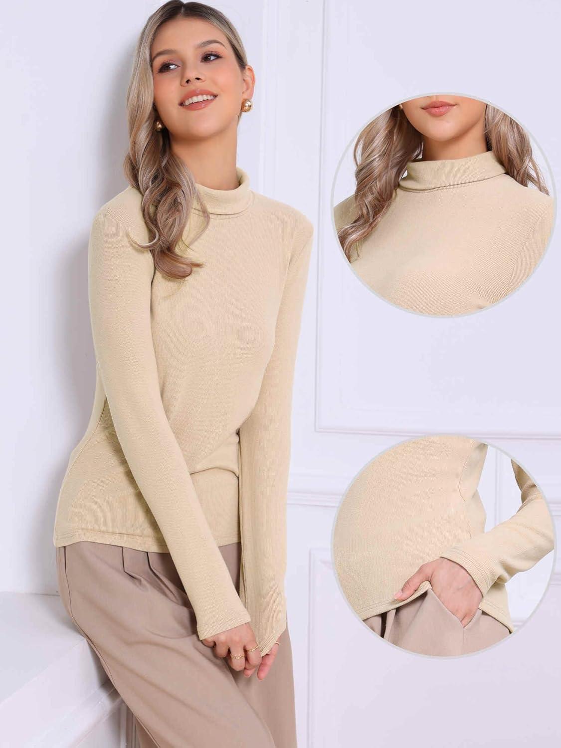 imageAllegra K Sweaters for Women Mock Turtleneck Long Sleeve Fitted Tee Casual Pullover Tops Fashion Clothes 2025 Fall OutfitsKhaki